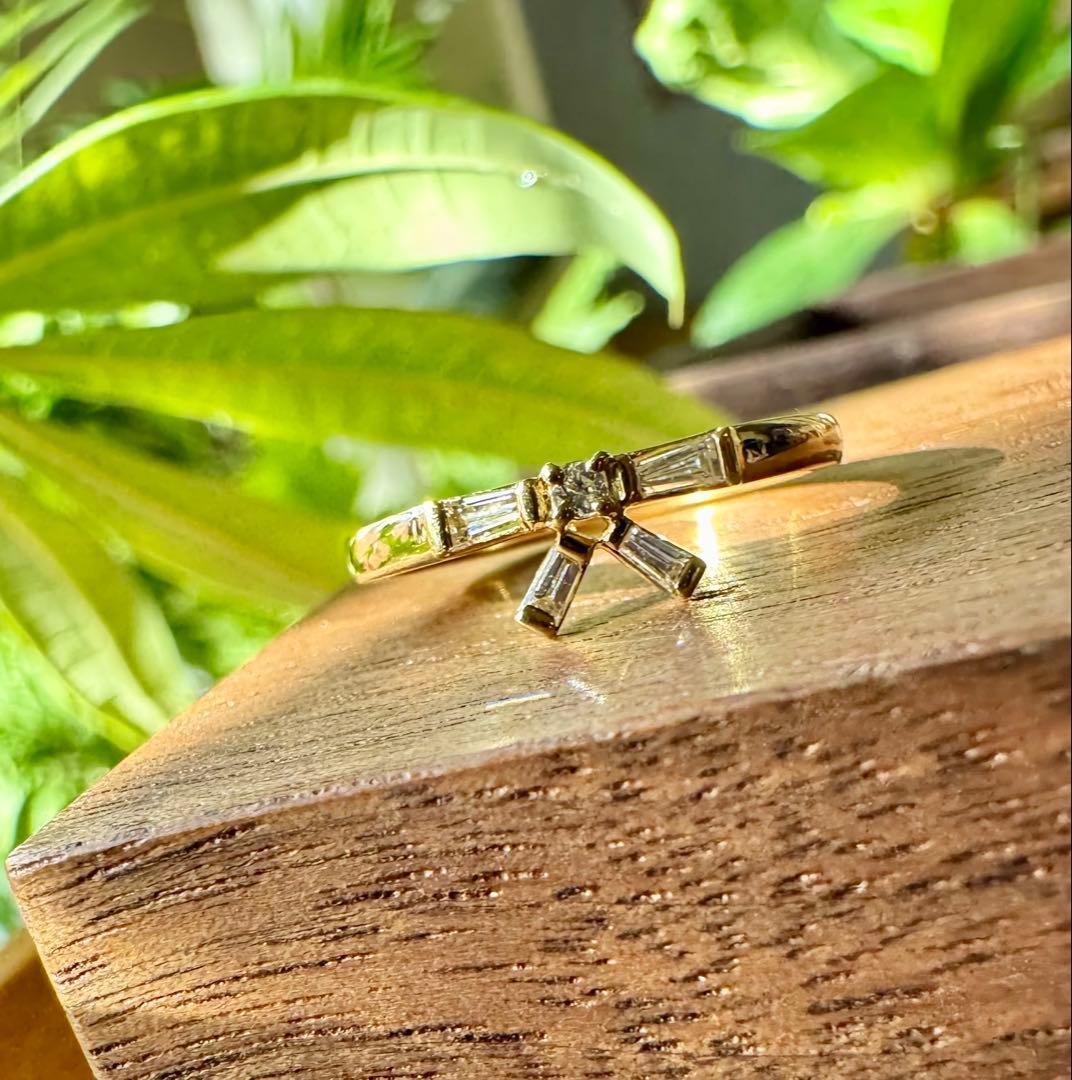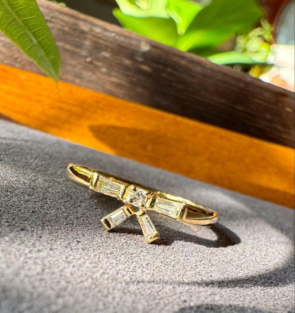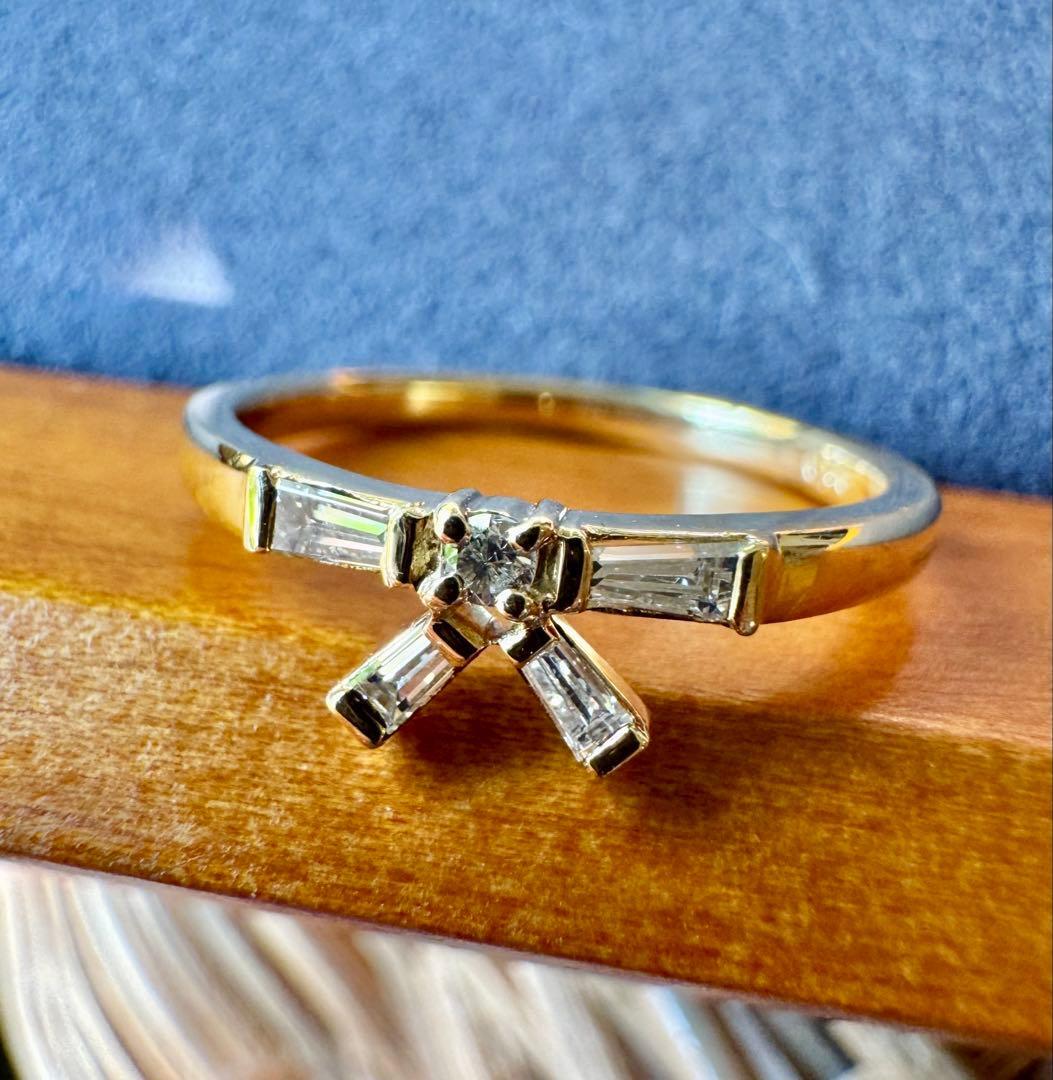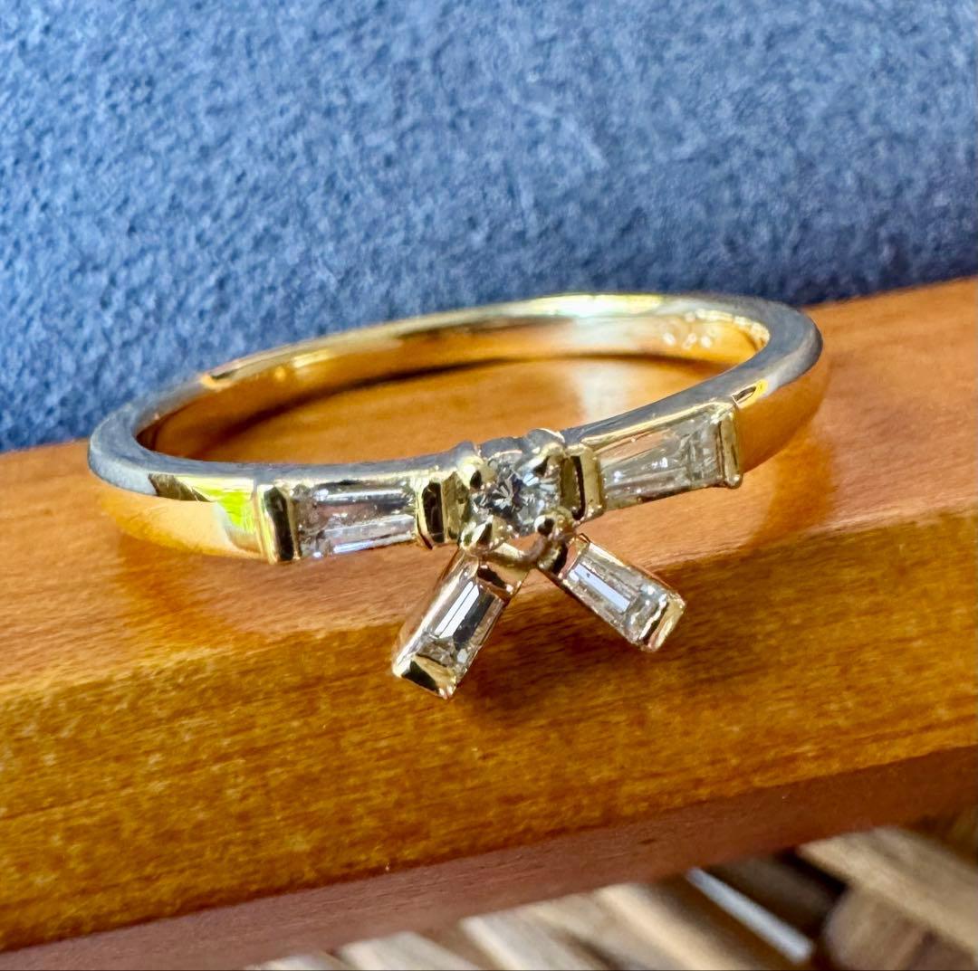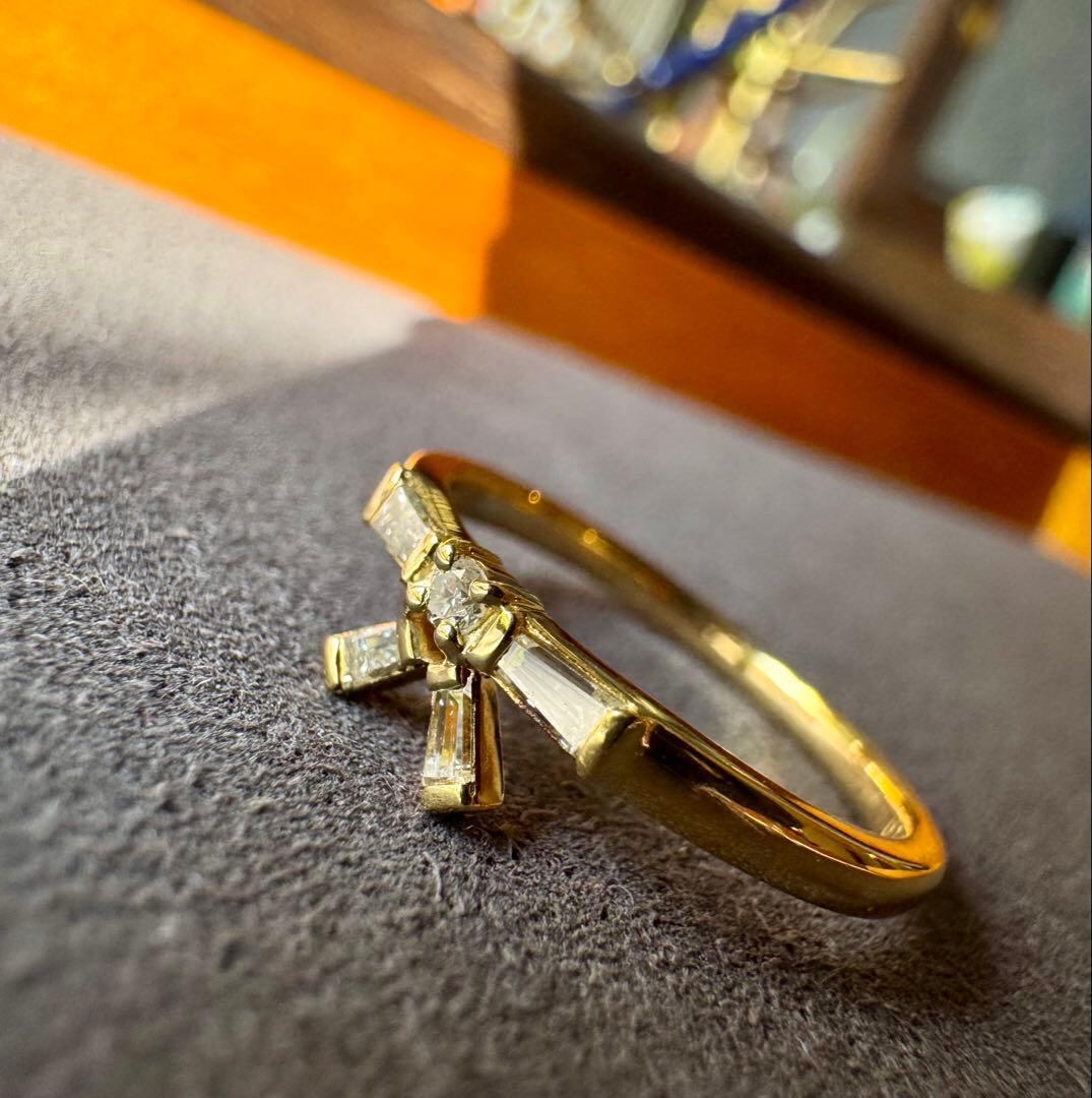 K18YGのリボンモチーフ・テーパーカットダイヤモンドリング✦