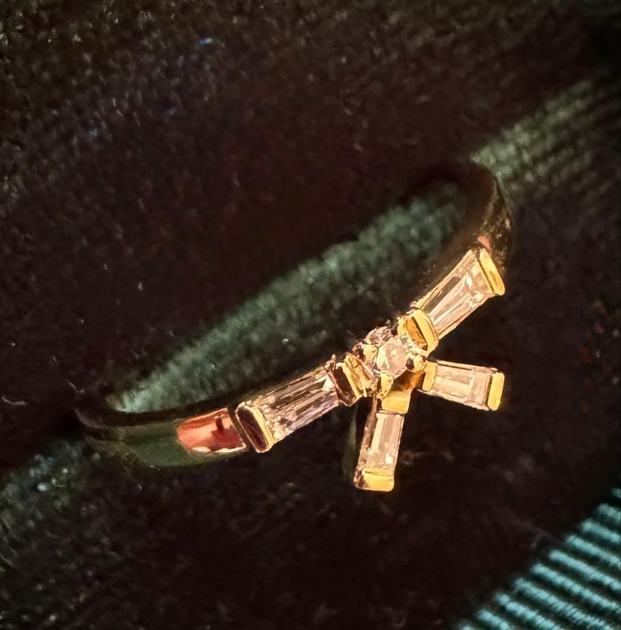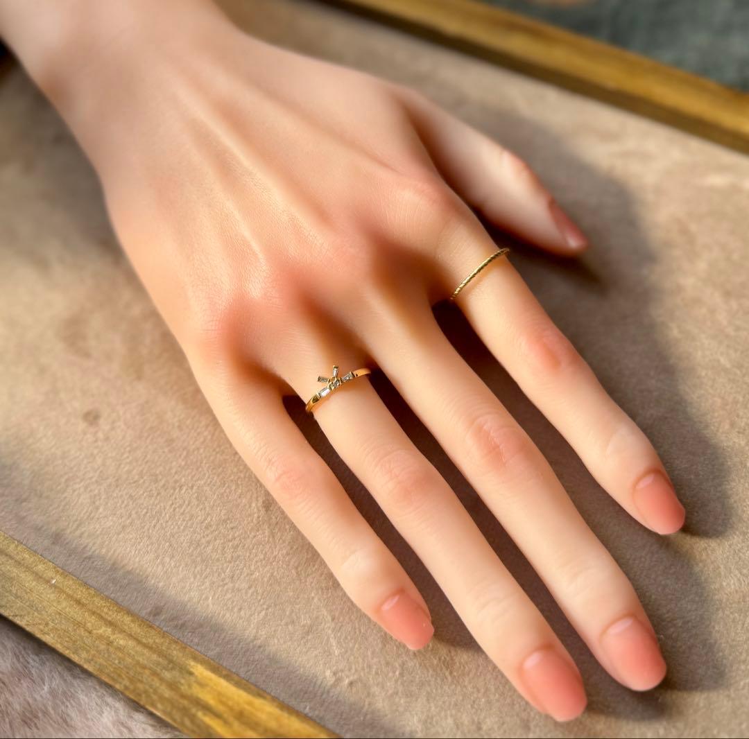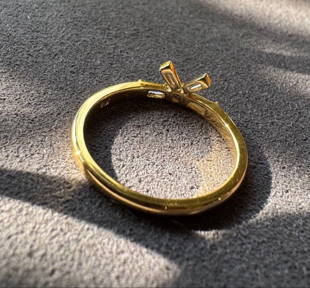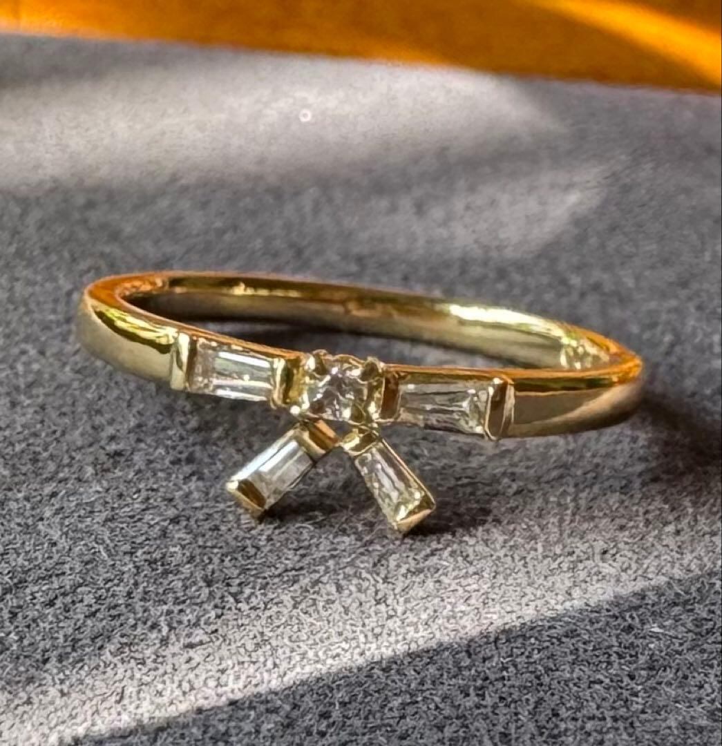 K18YGのリボンモチーフ・テーパーカットダイヤモンドリング✦