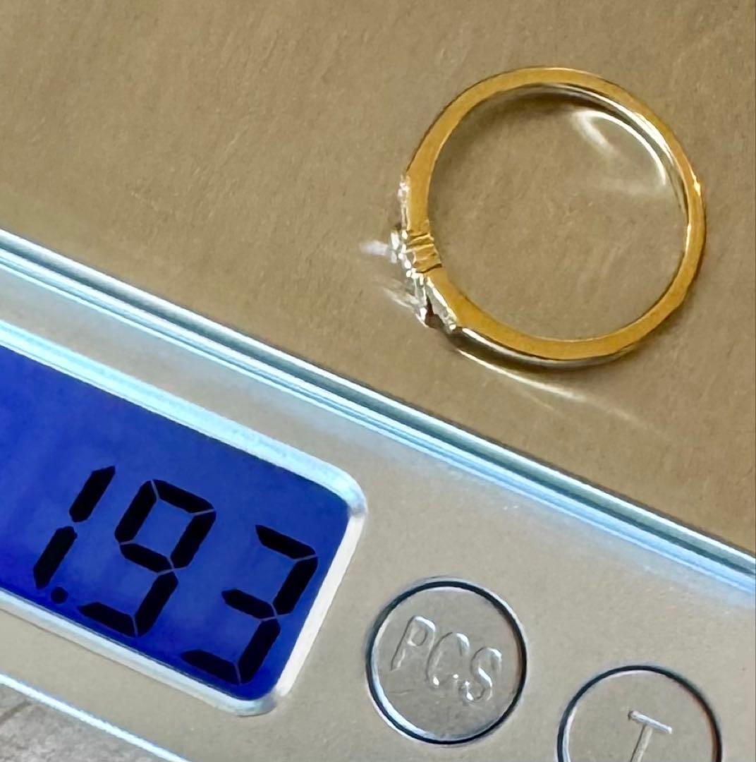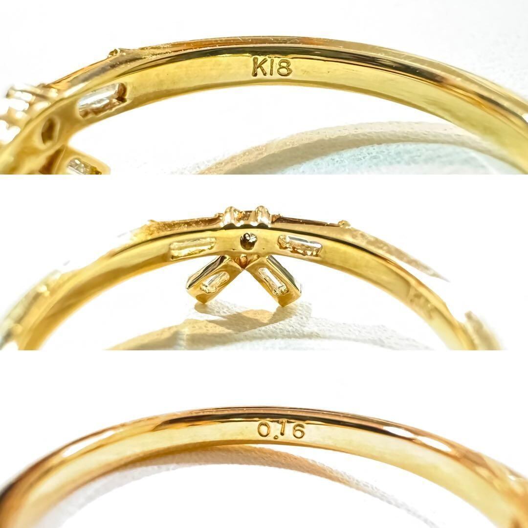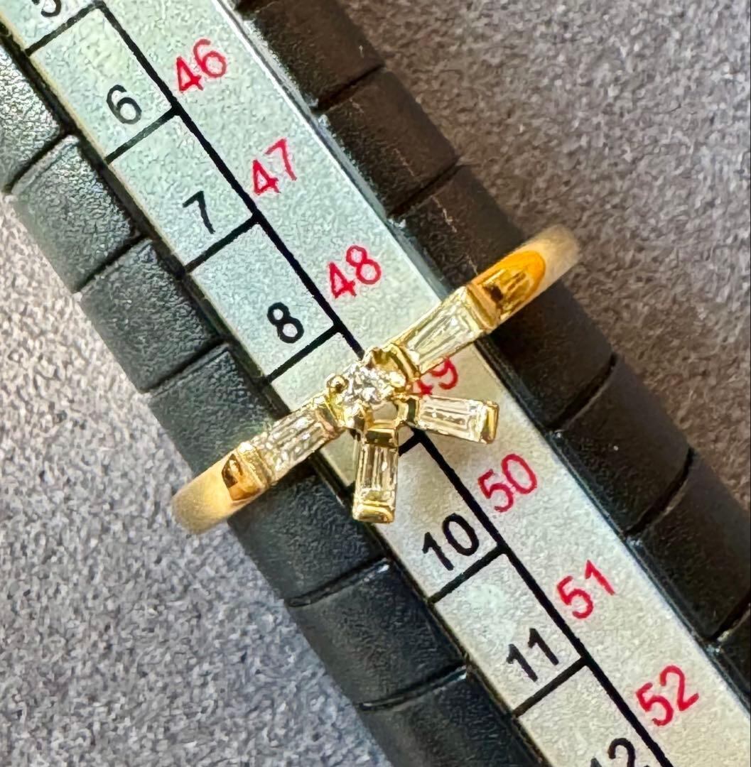 K18YG*9号*テーパーカットダイヤモンドリング*リボン*指輪