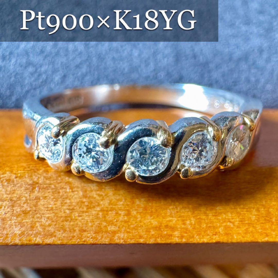 Pt900/K18*14号*ダイヤモンドコンビリング*プラチナ*指輪