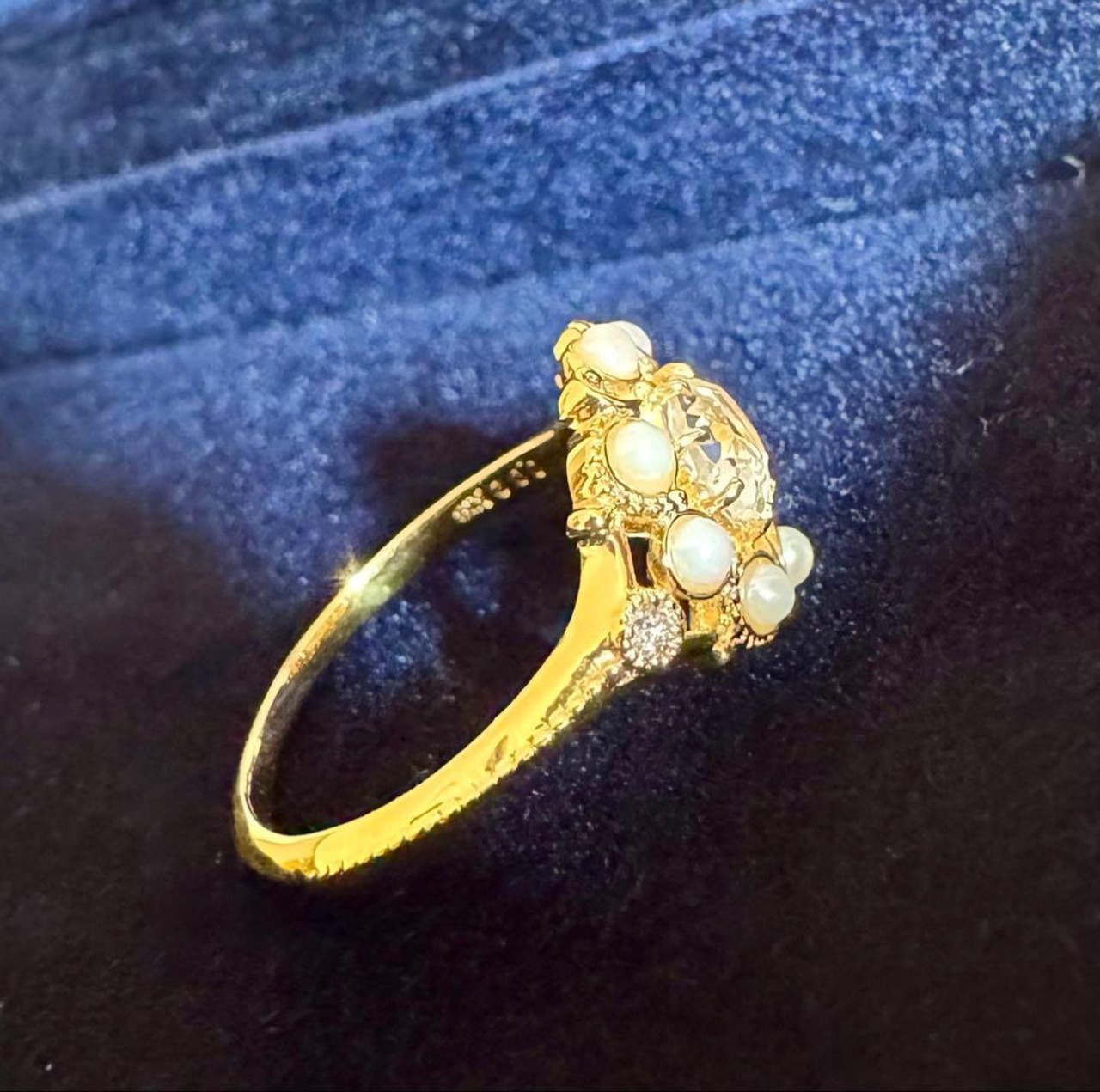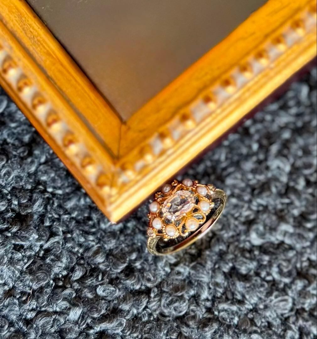 そのトップの両サイドにはダイヤモンドがセットされたクラシック調のデザインリングです✦