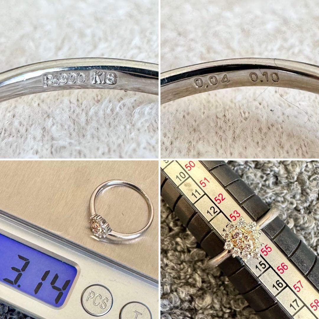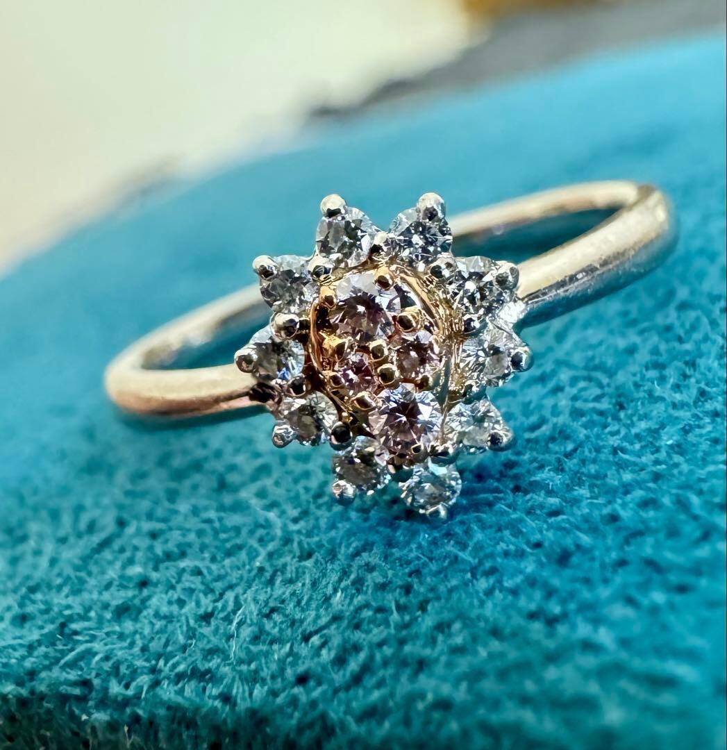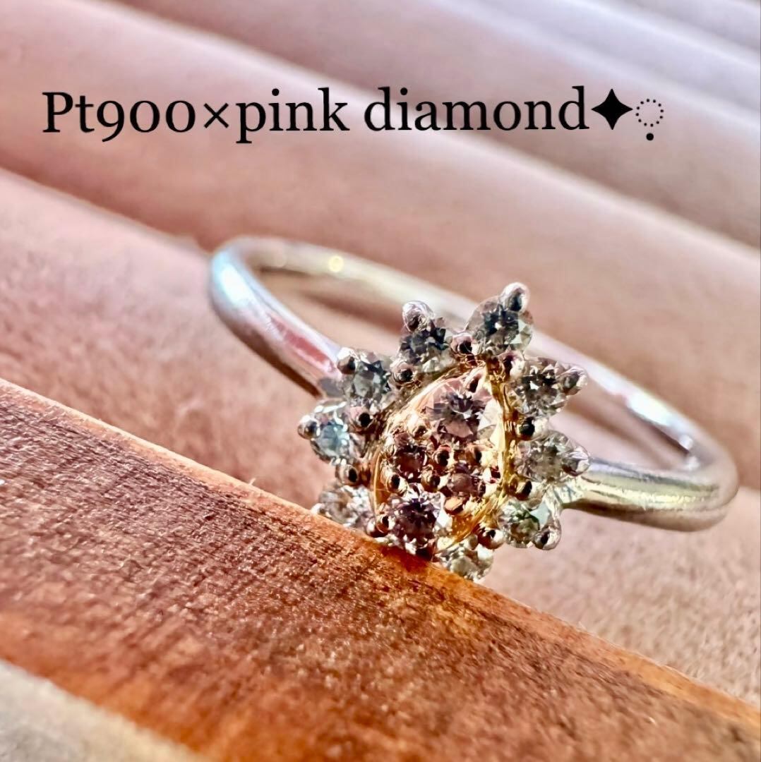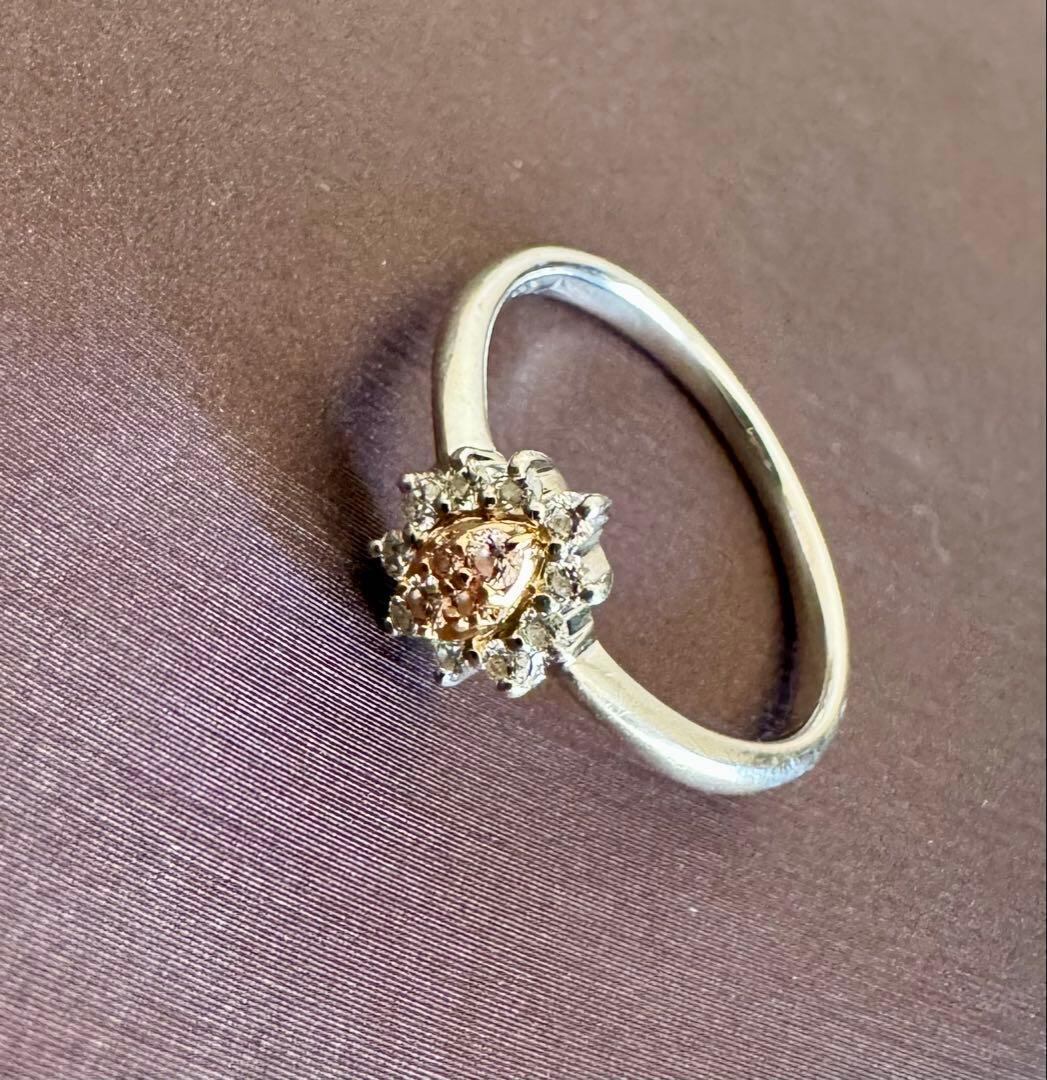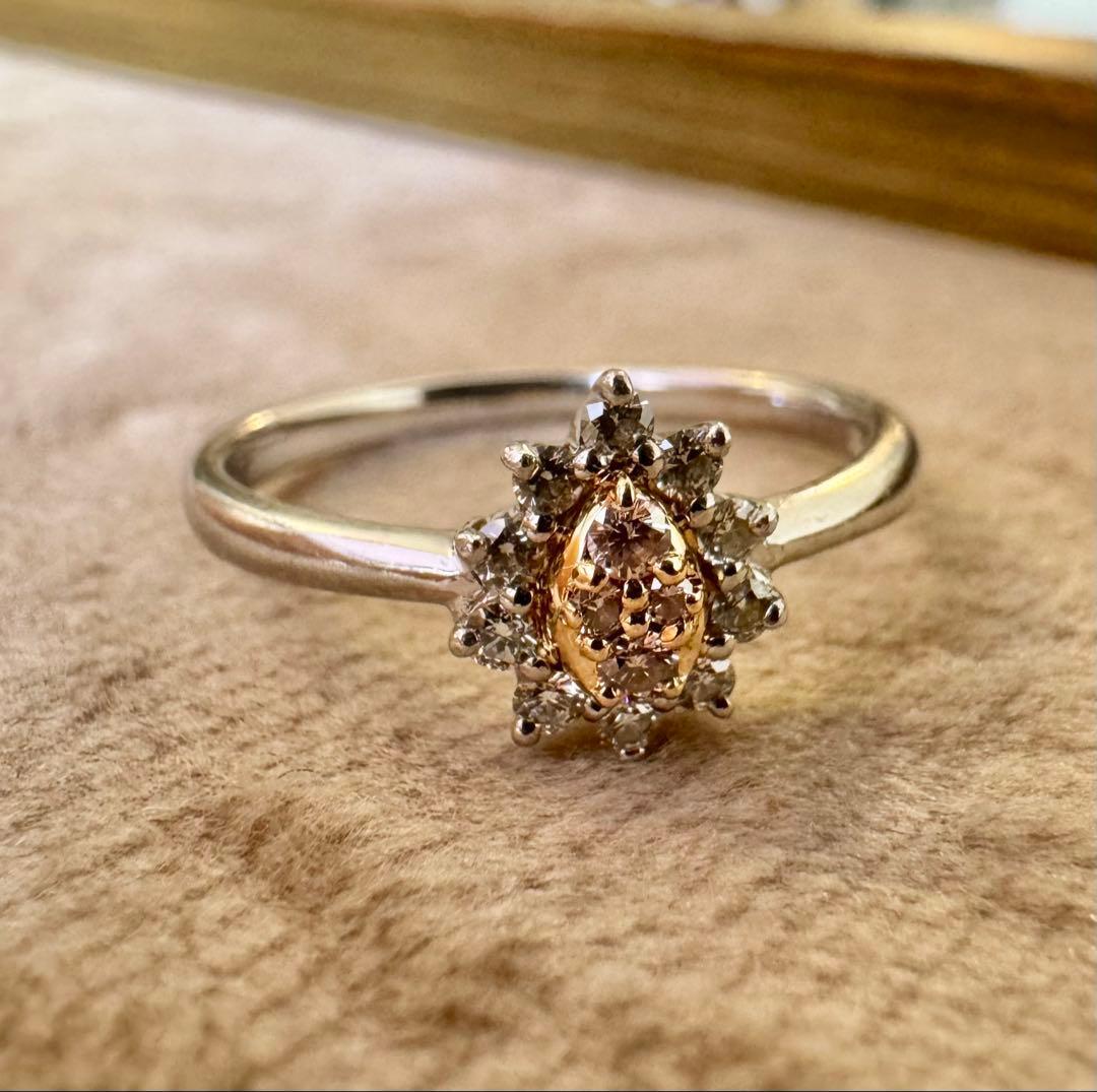 Pt900/K18*14号*ピンクダイヤモンドリング*プラチナコンビ