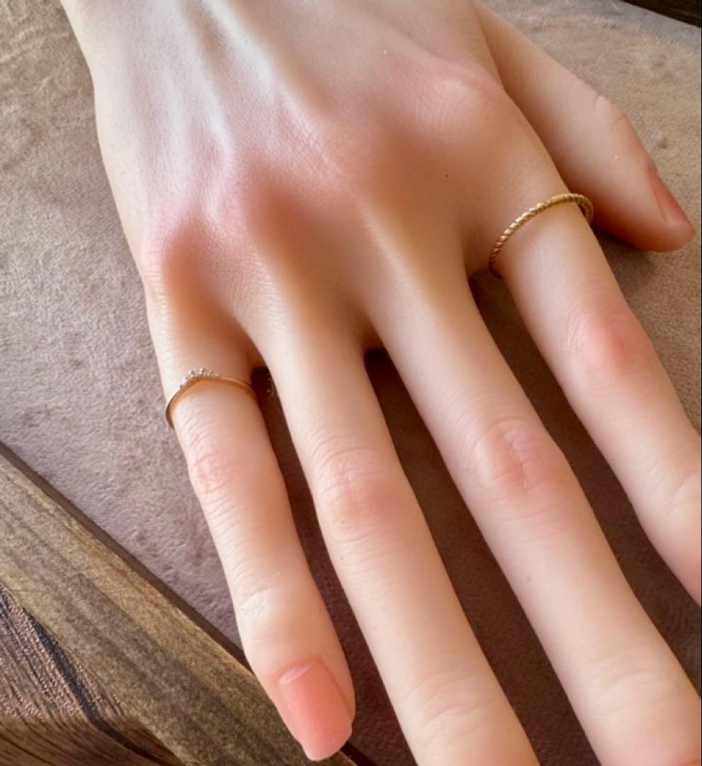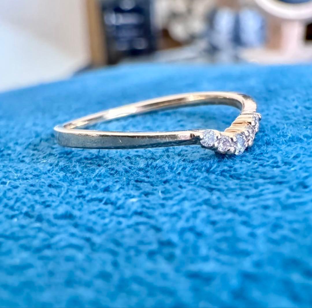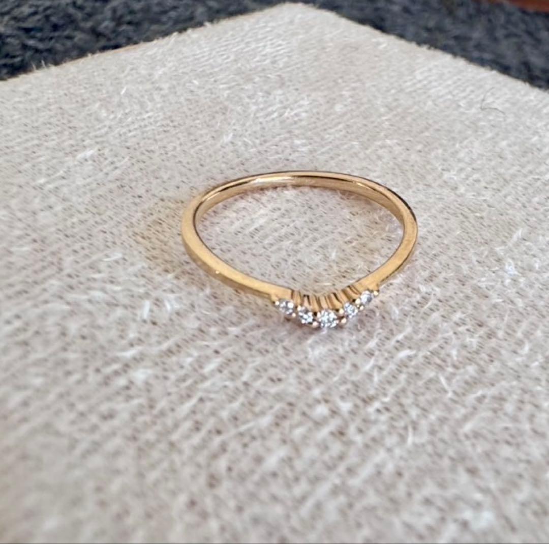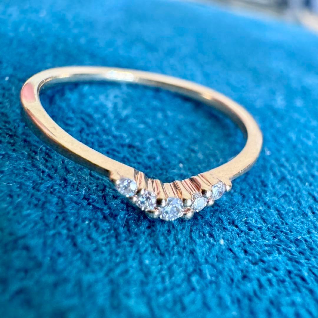 ete◆K10*5号*ゆるやかV字ダイヤモンドピンキーリング*指輪