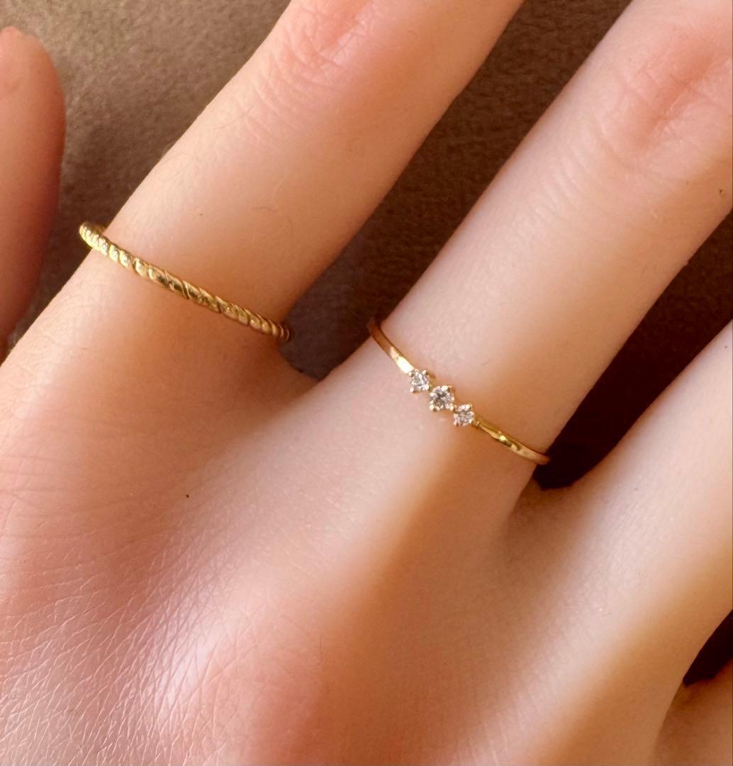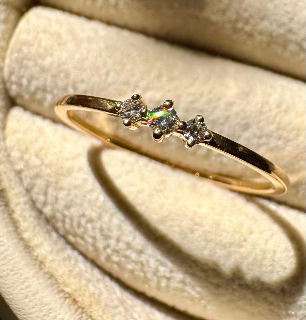 eteのK18ゴールド製・3粒ダイヤモンドリング♡0.05ctのダイヤモンドが美しく控えめに輝きます✦