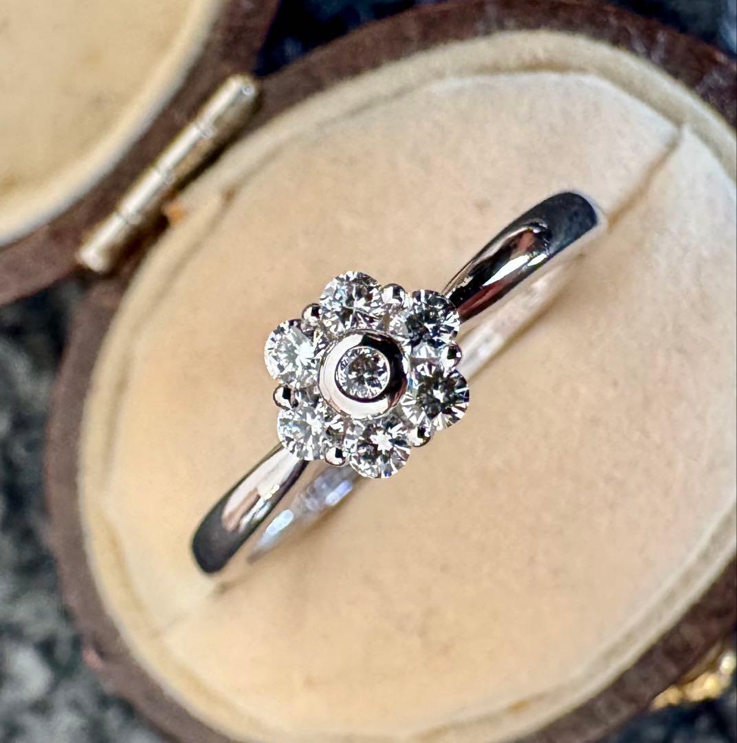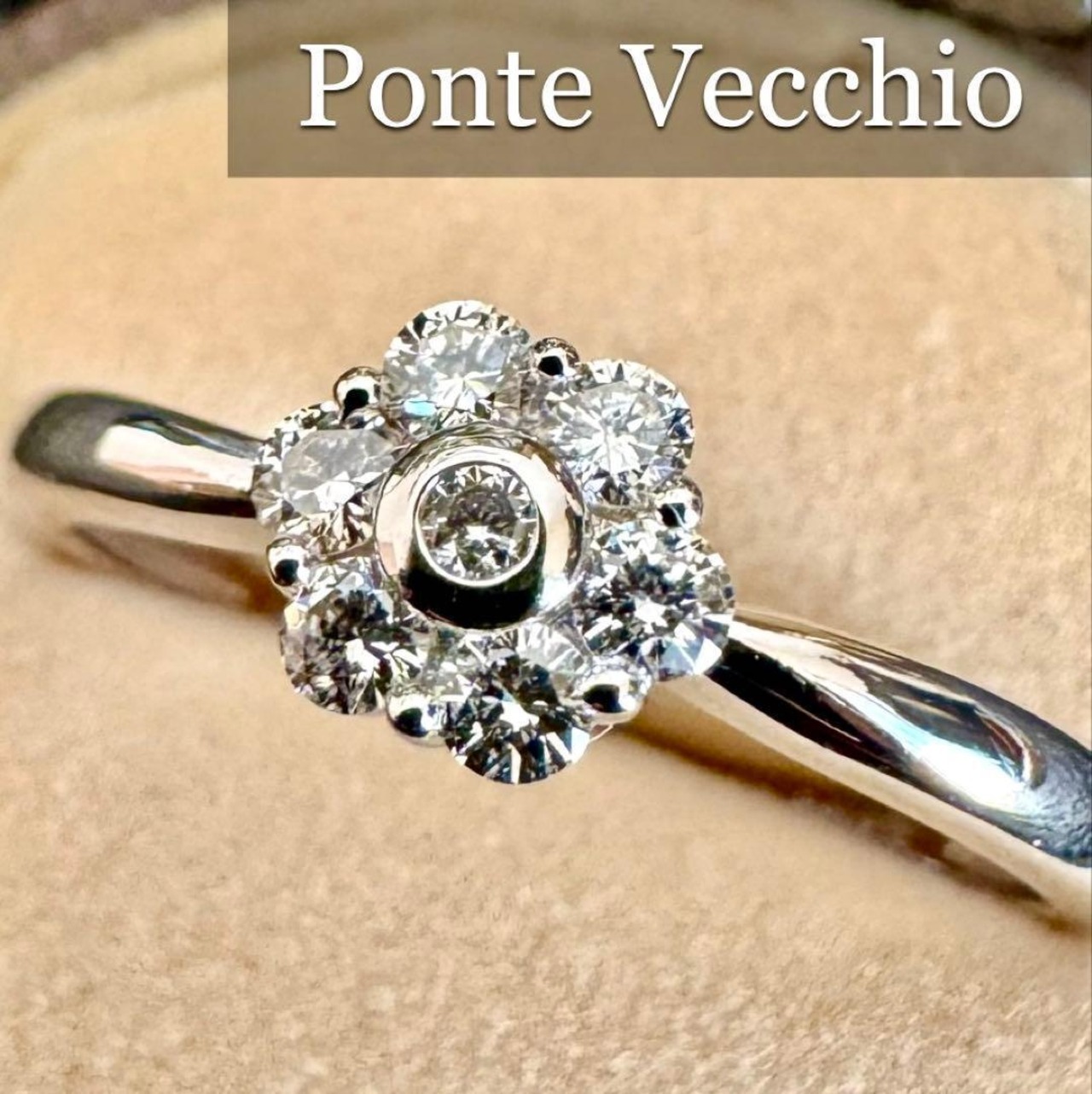 ポンテヴェキオ◆K18WG*9号*フラワーモチーフダイヤモンドリング