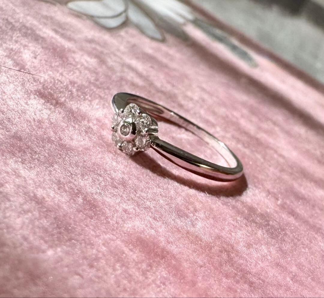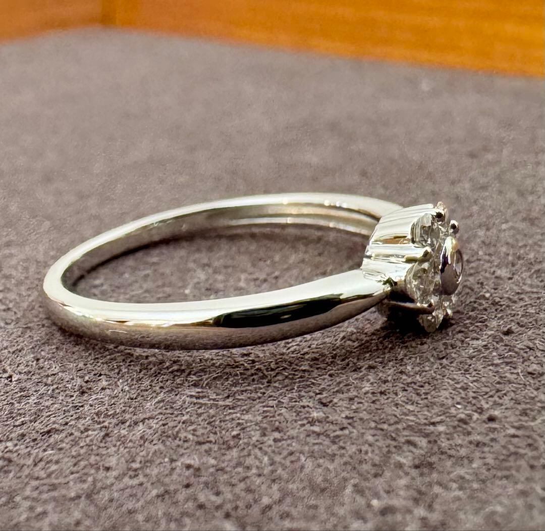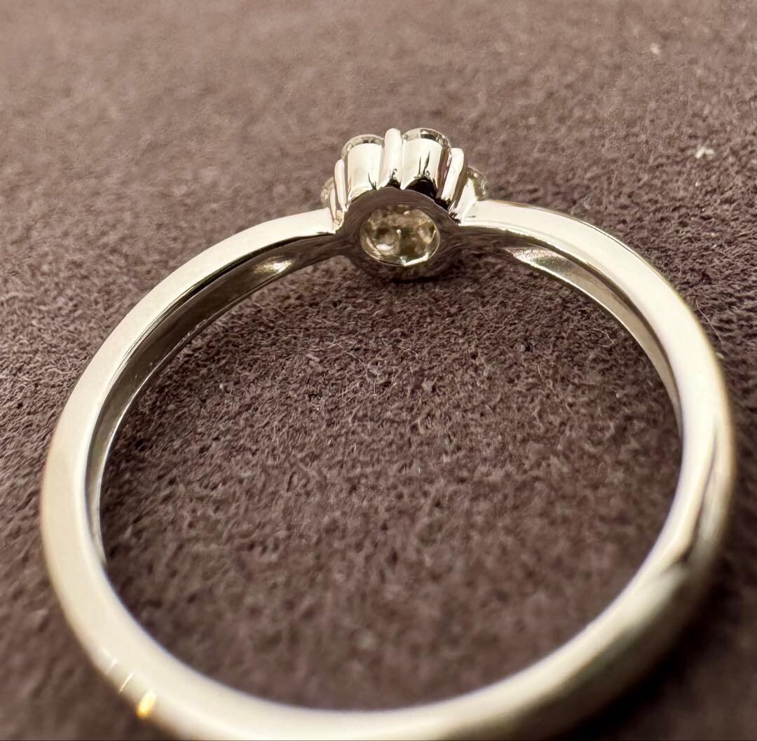 無色に近いダイヤモンドの輝きも素晴らしく、シンプルなラインでありながら可愛らしさもあるデザイン♪お手元に輝きを✦