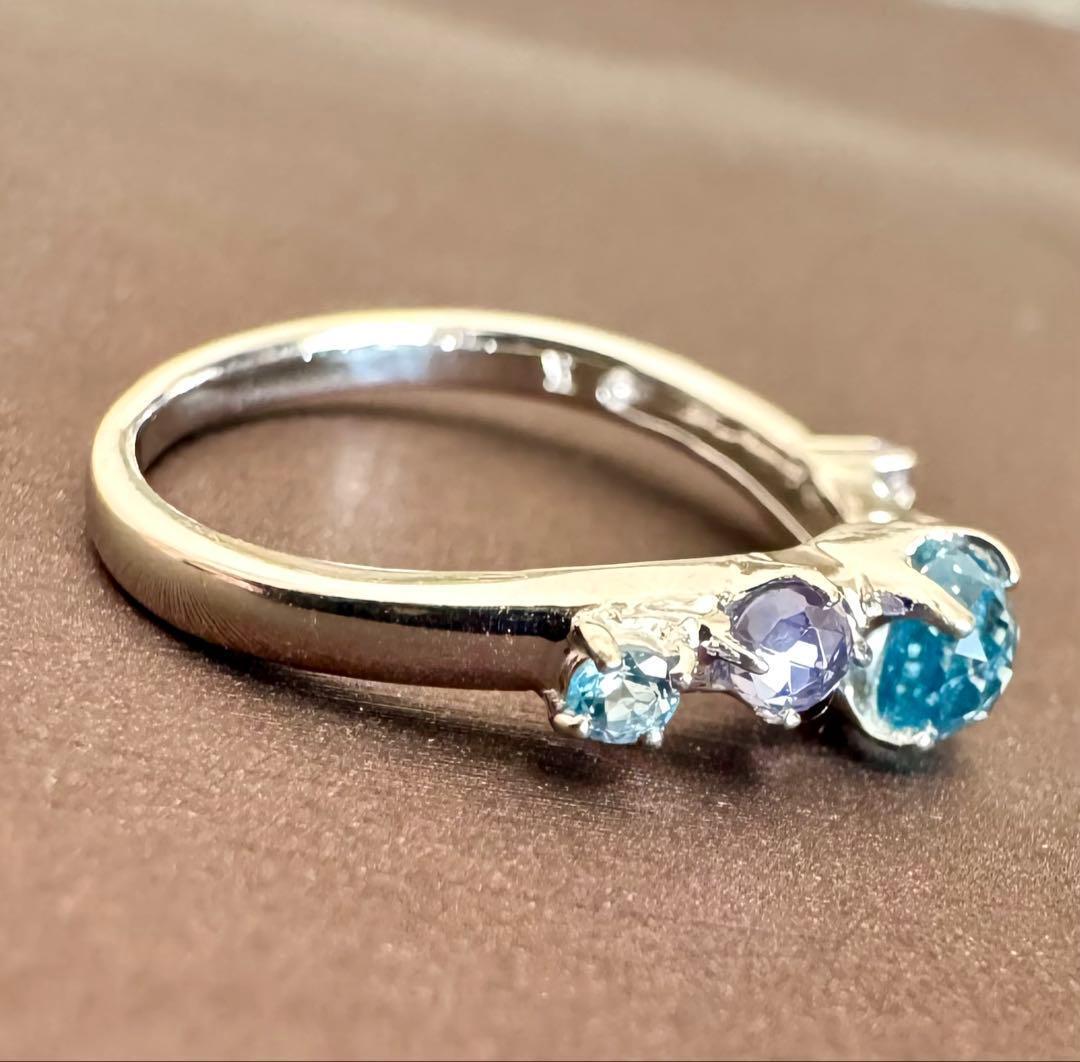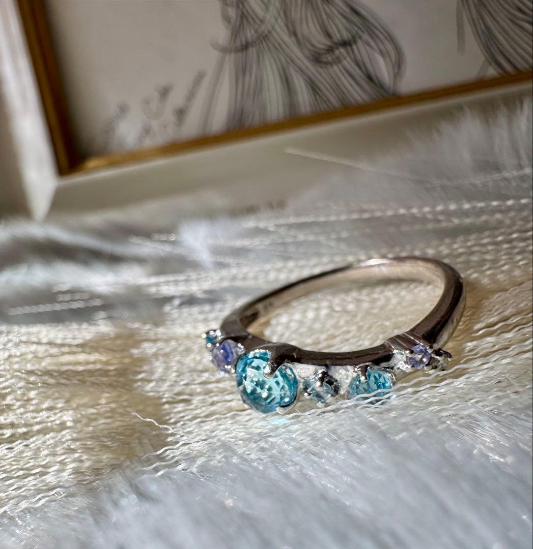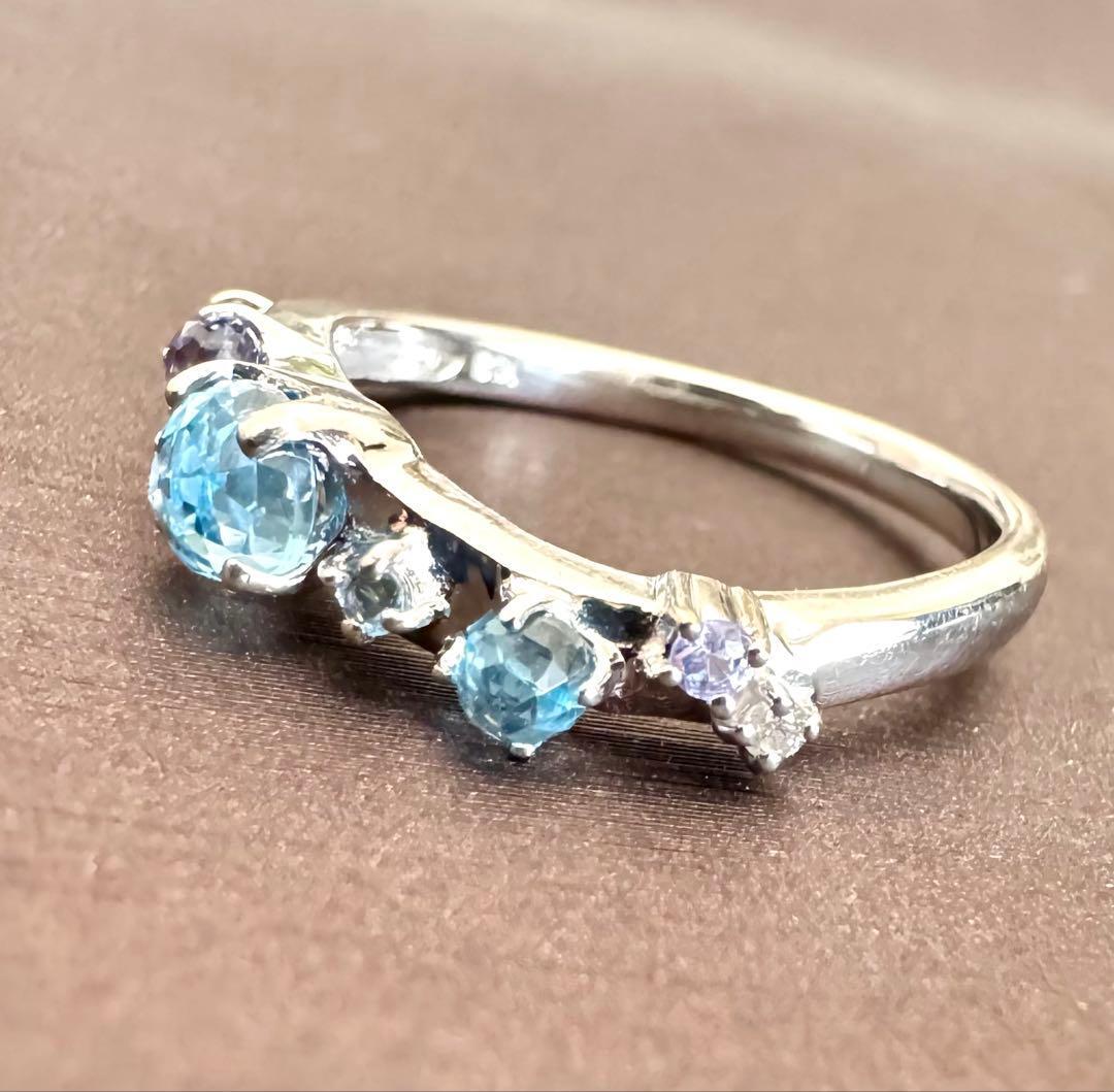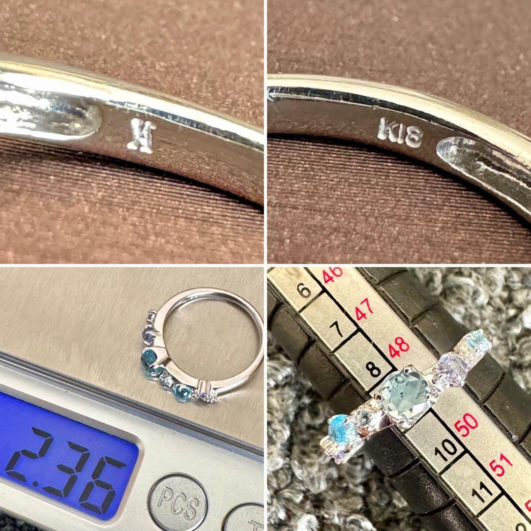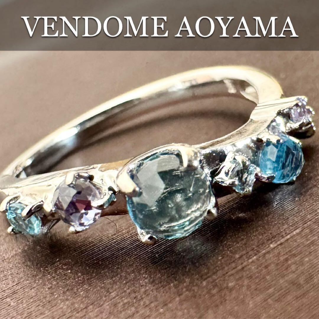 ヴァンドーム青山◆K18WG*9号*マルチカラーストーンリング*色石*水色