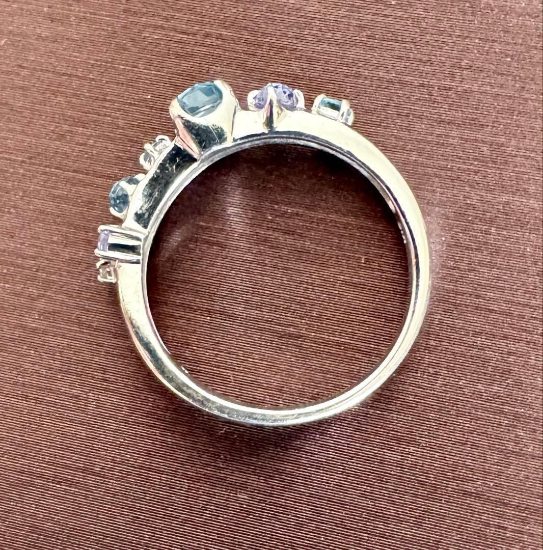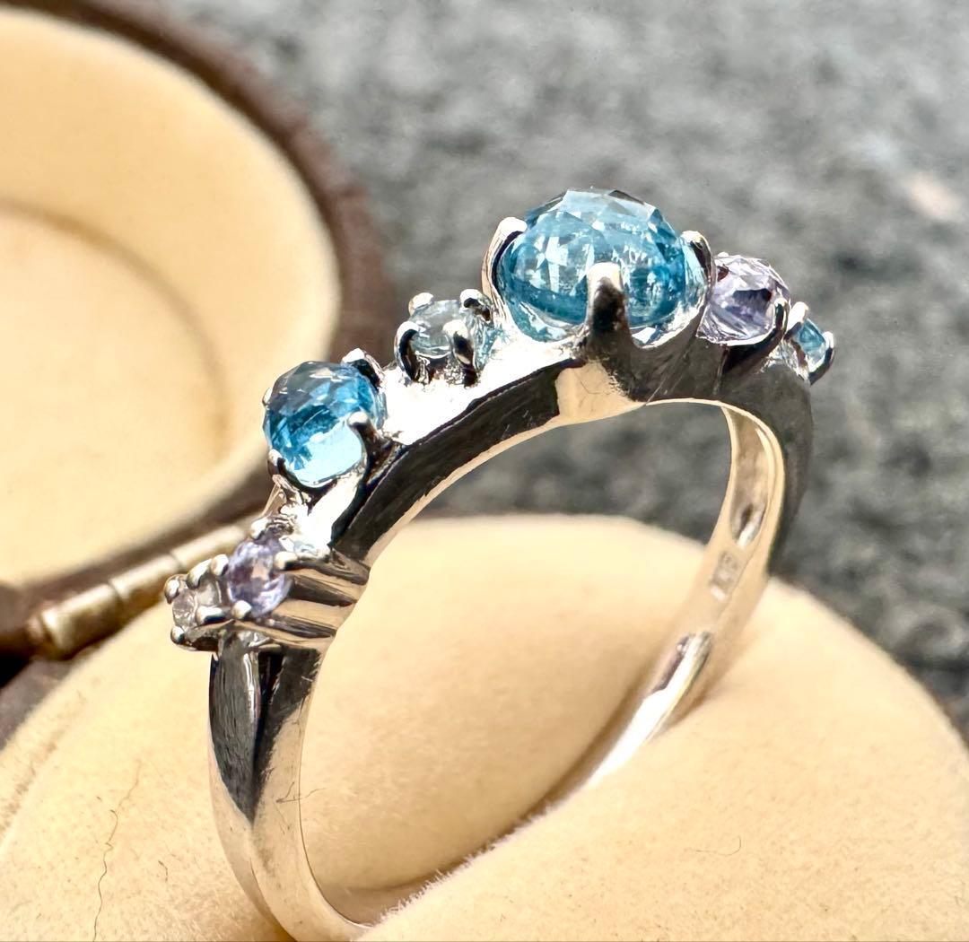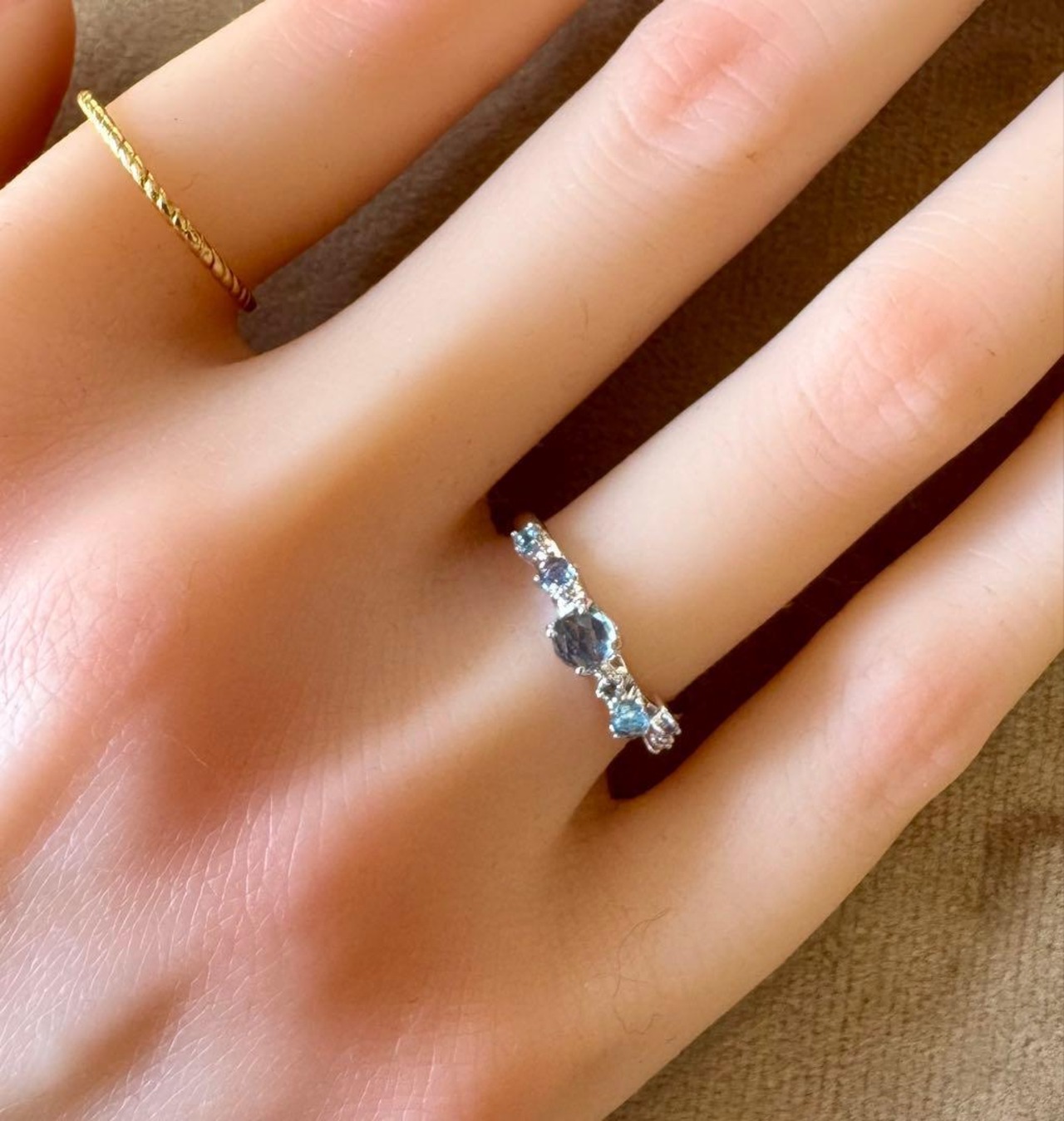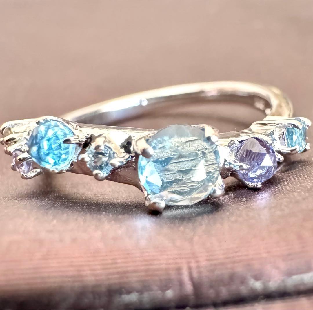 ヴァンドーム青山◆K18WG*9号*マルチカラーストーンリング*色石*水色