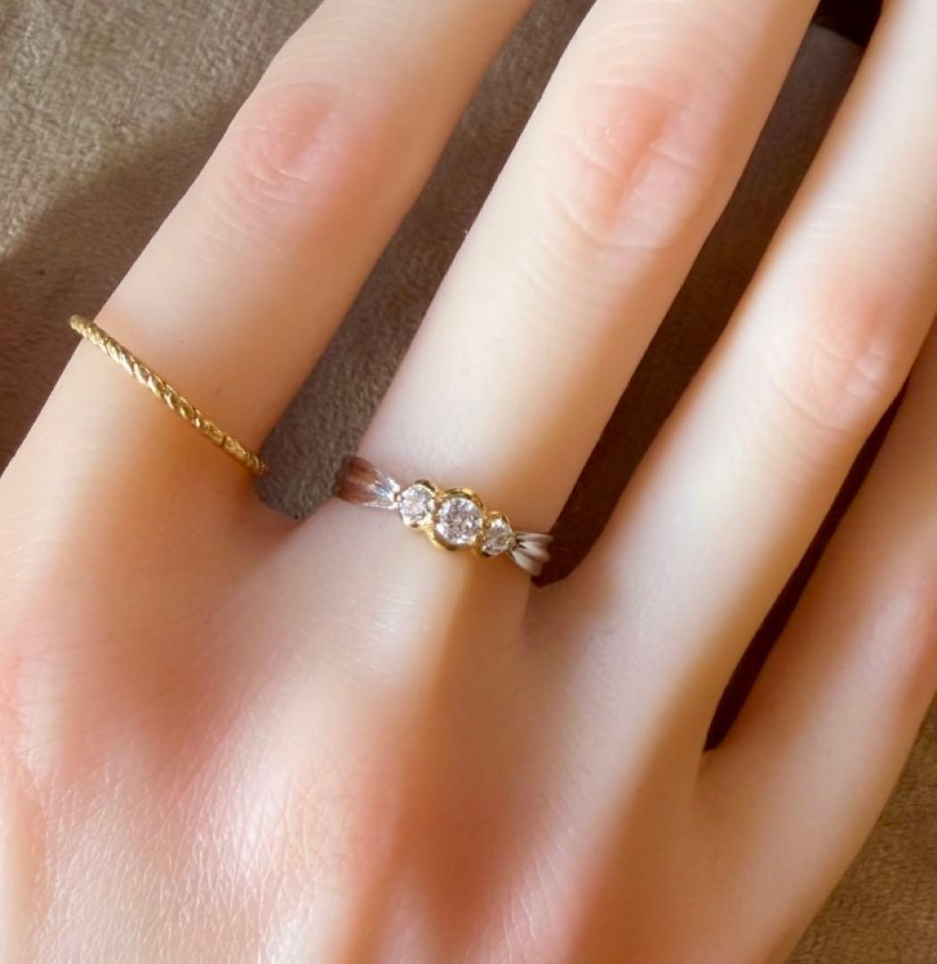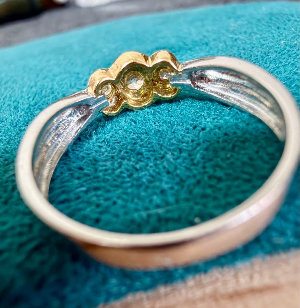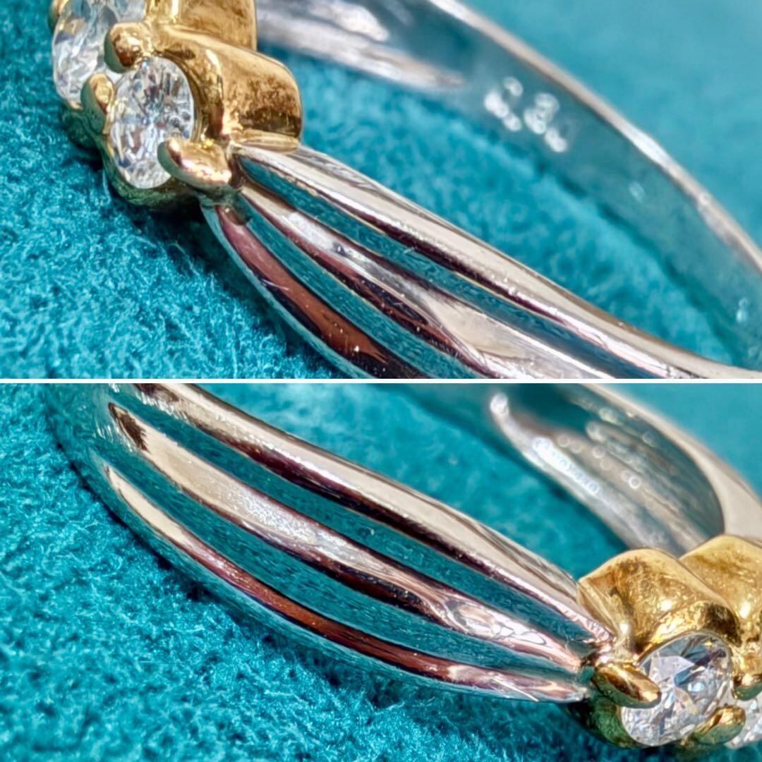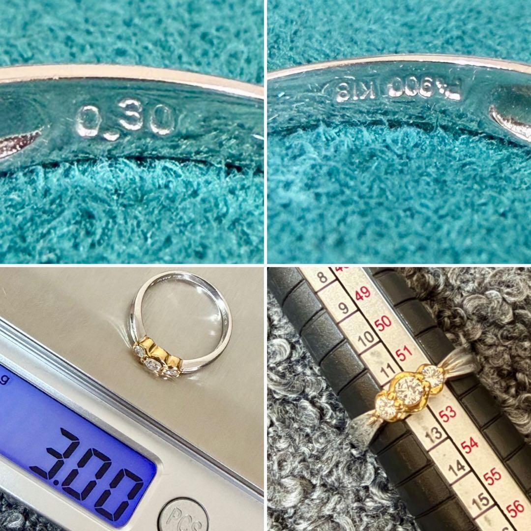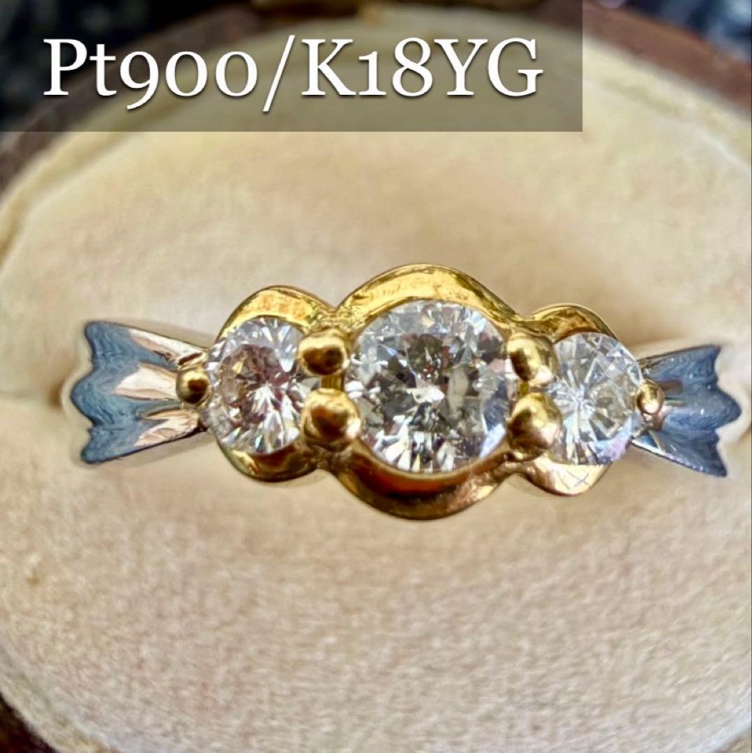 Pt900×K18*12号*0.3ct*3粒ダイヤモンドコンビリング*指輪