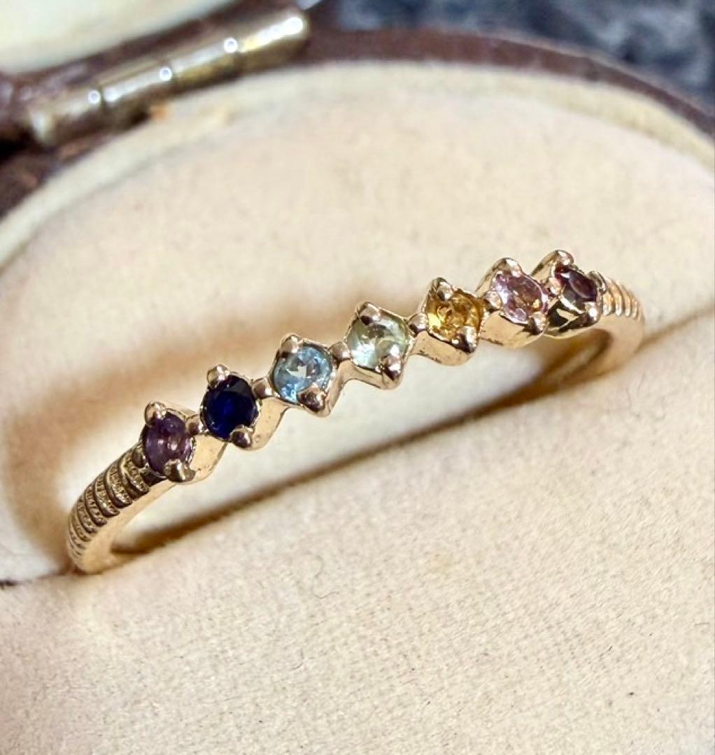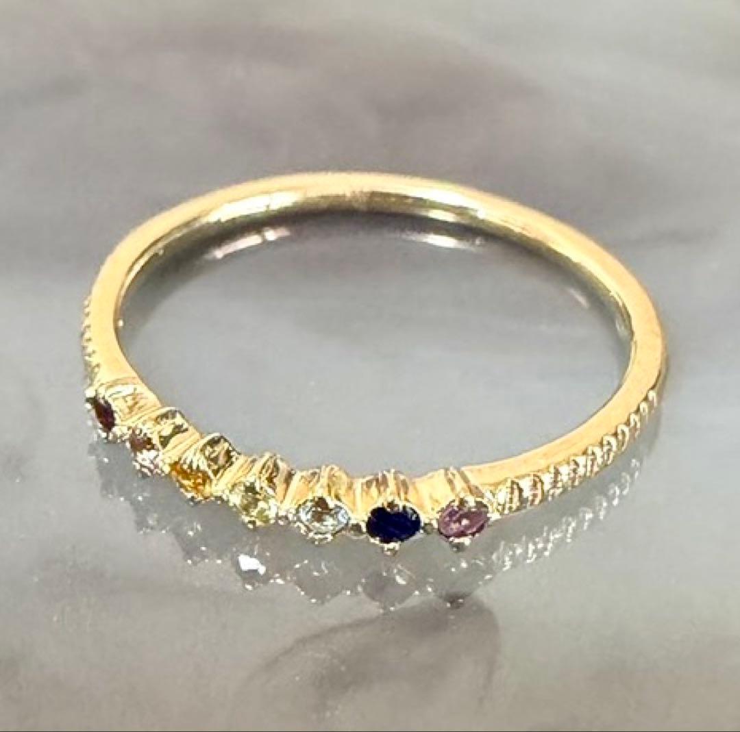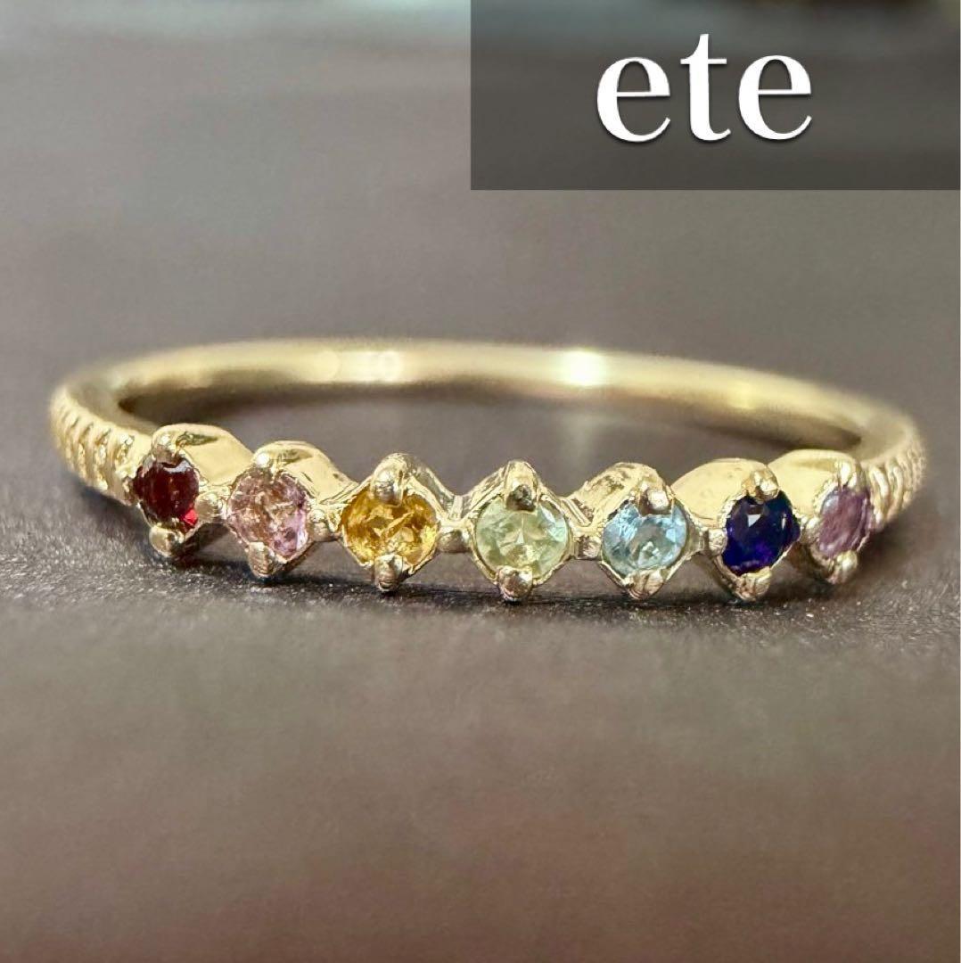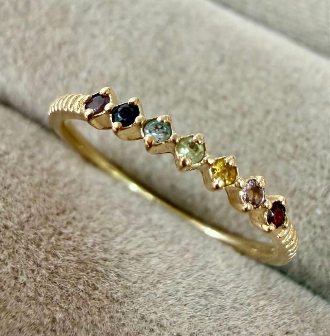 エテ◆K10YG*7.5号*マルチカラーストーンリング*アミュレット*色石ete