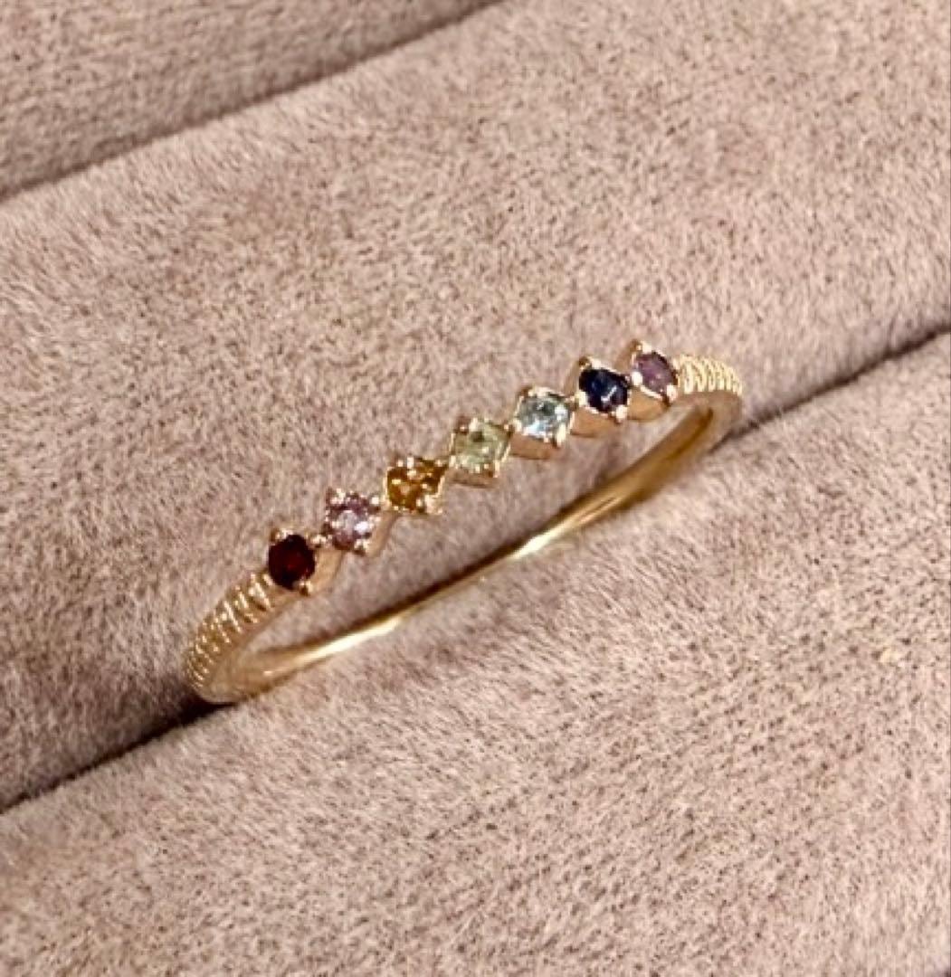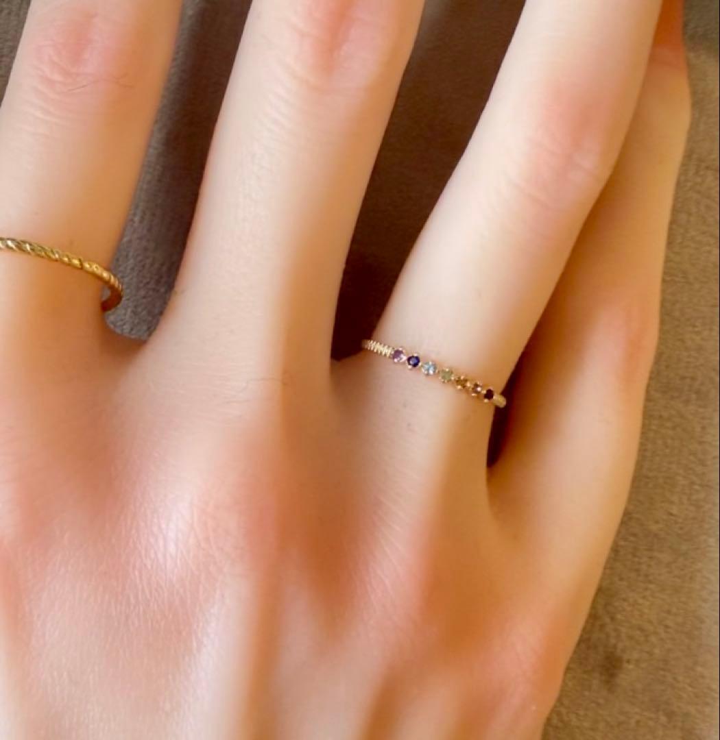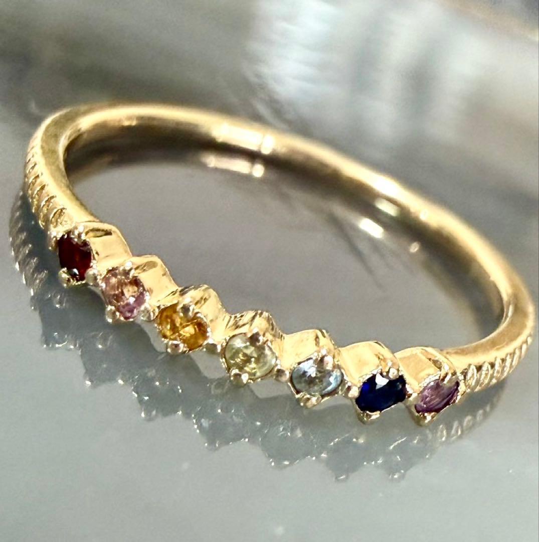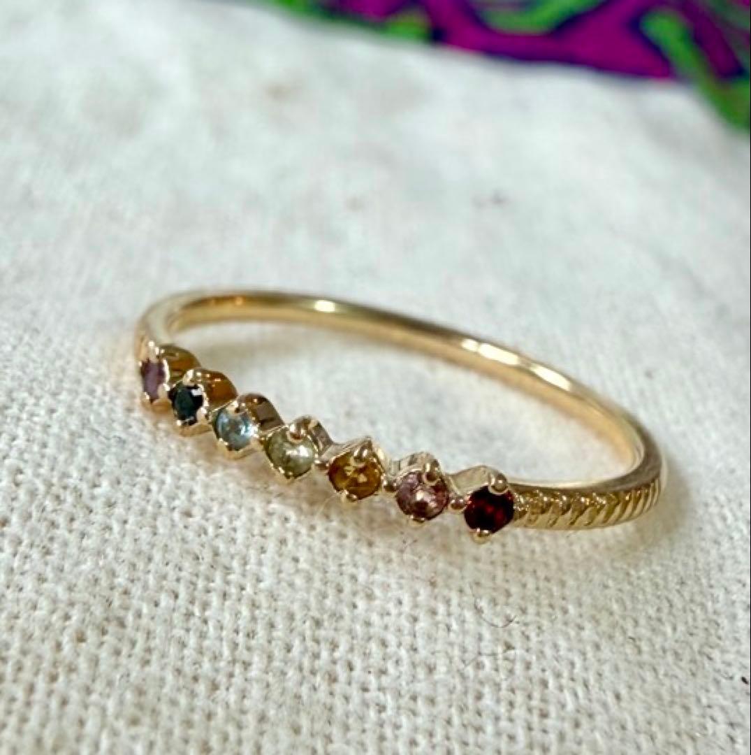 エテ◆K10YG*7.5号*マルチカラーストーンリング*アミュレット*色石ete