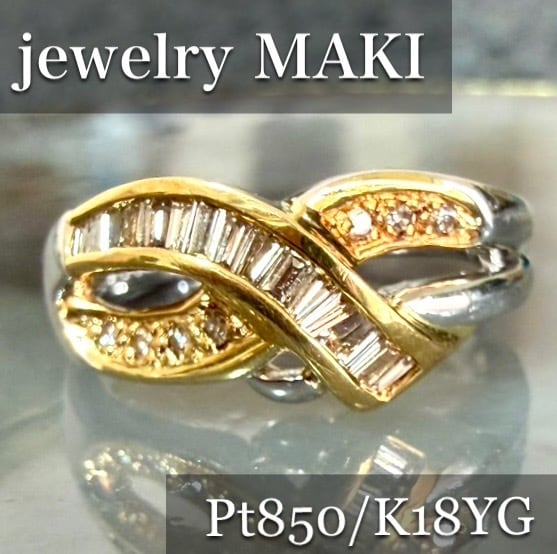 ジュエリーマキ◆Pt850/K18*11.5号*テーパーカットダイヤコンビリング
