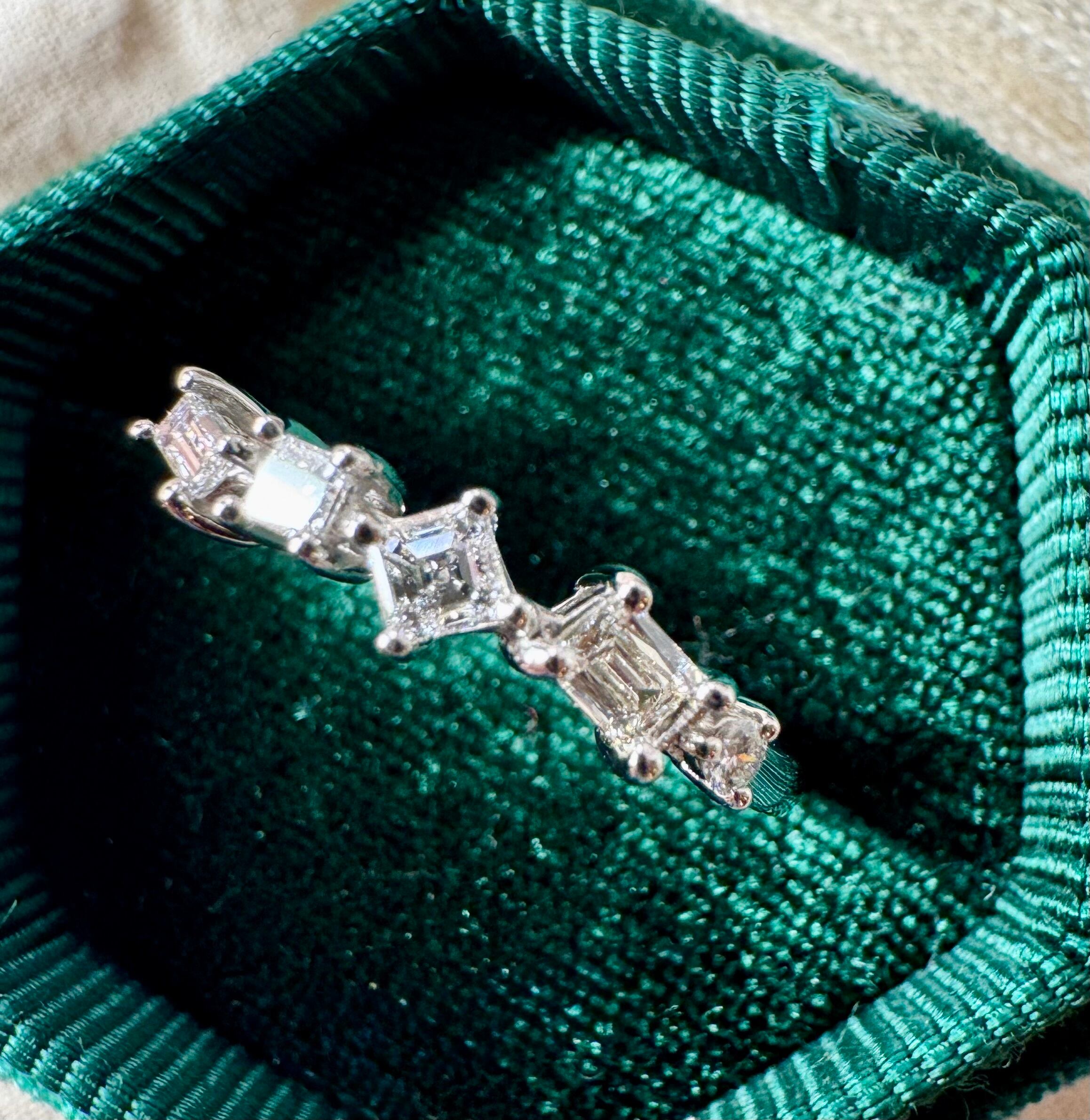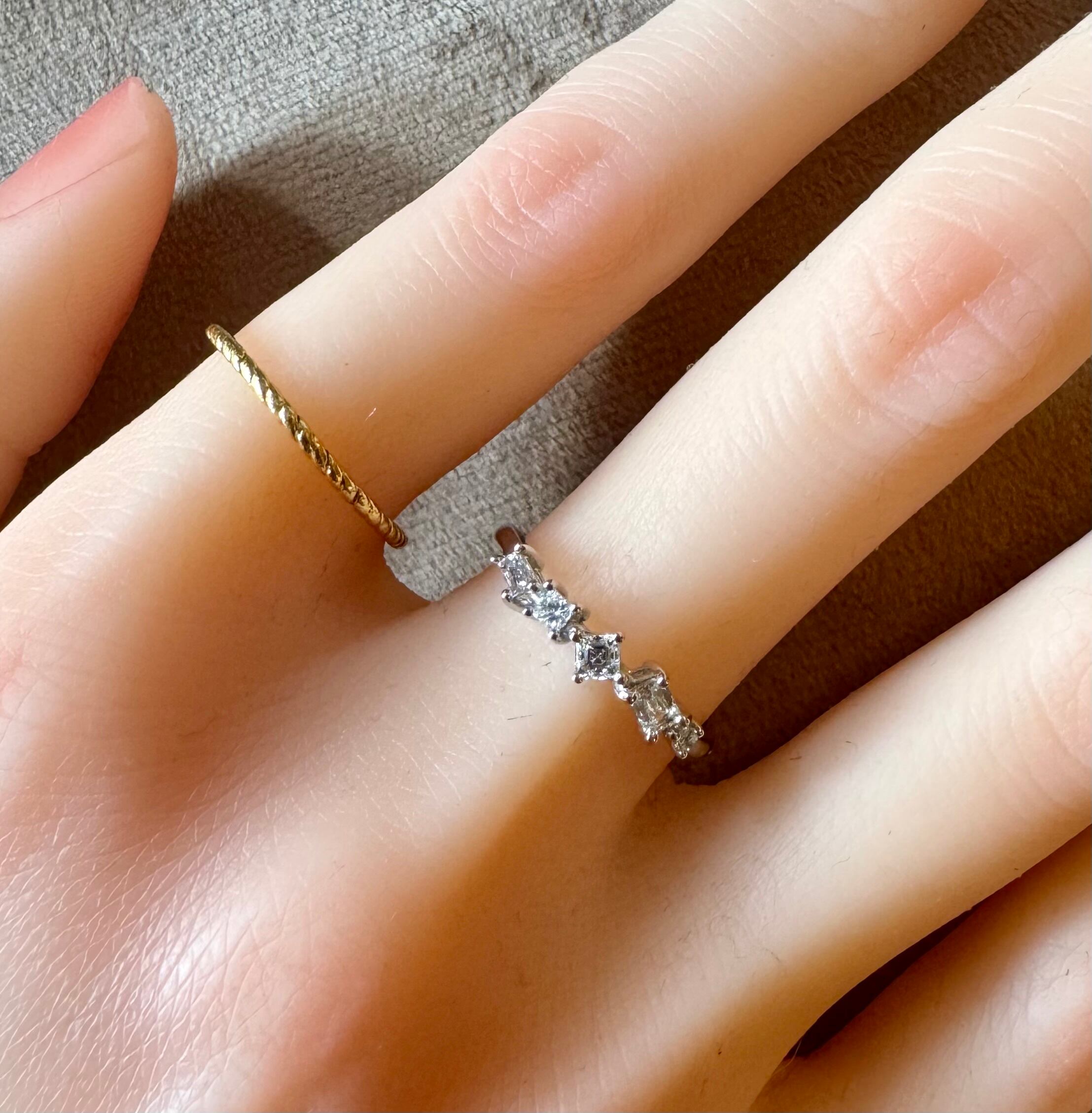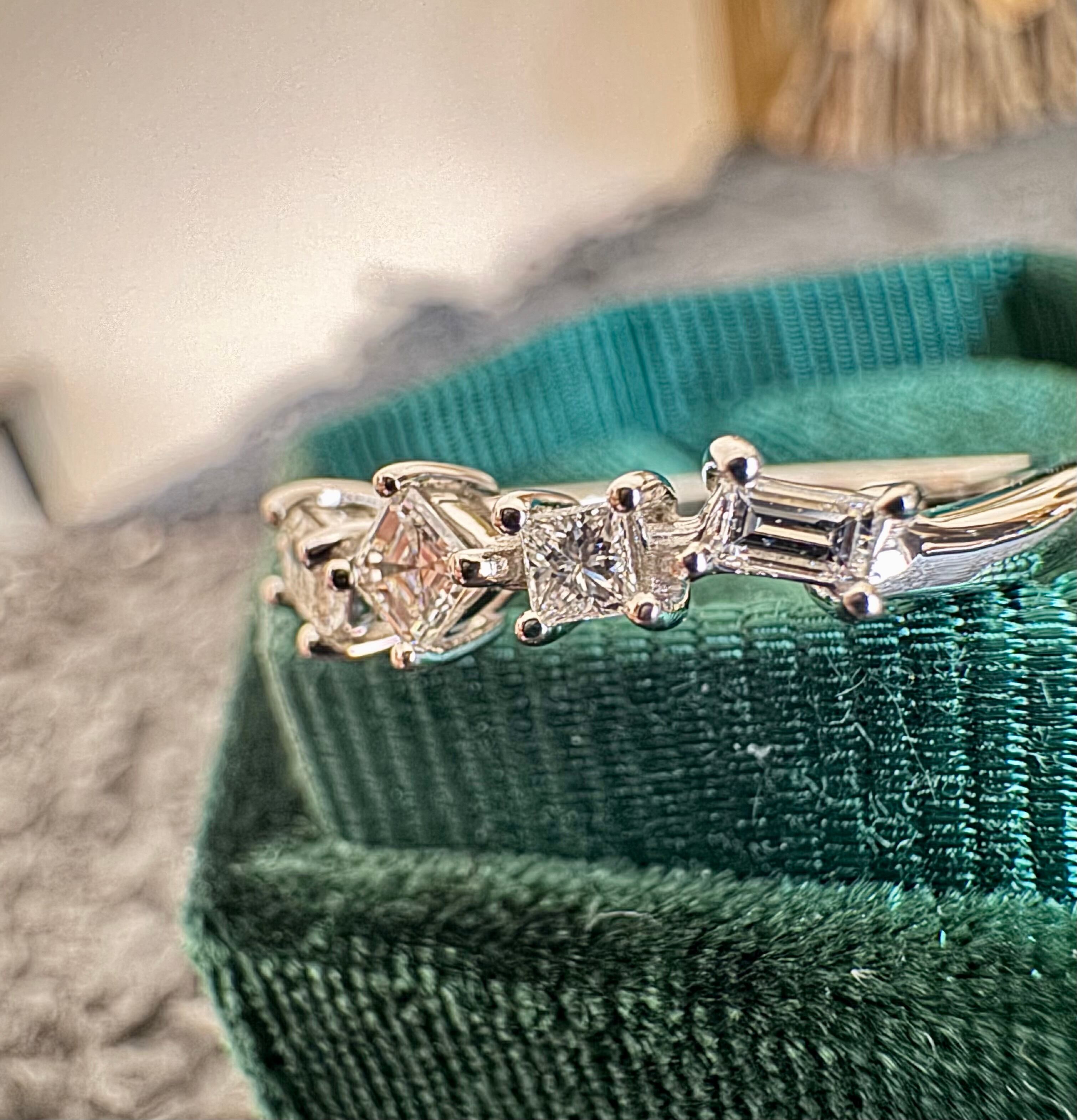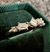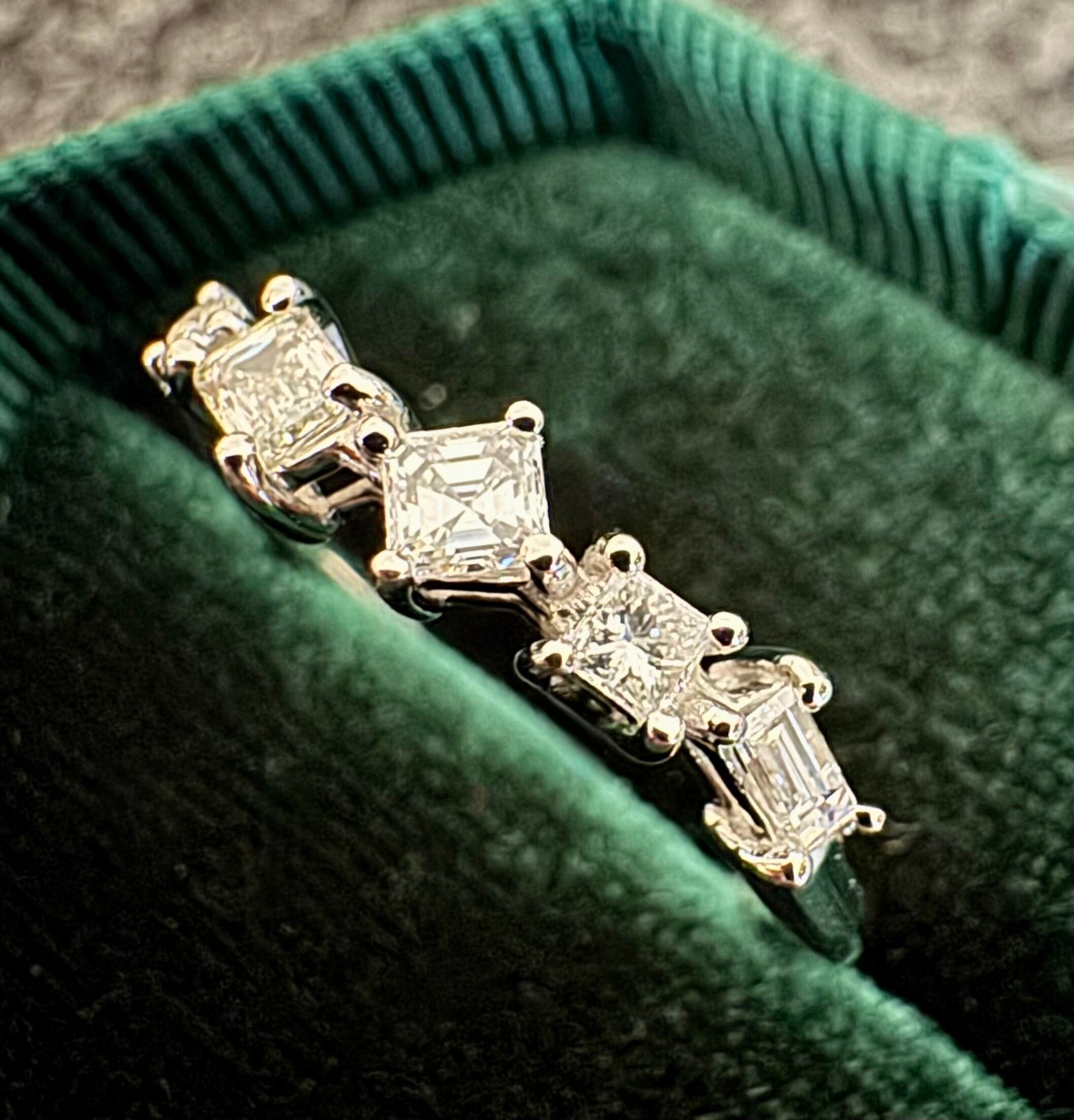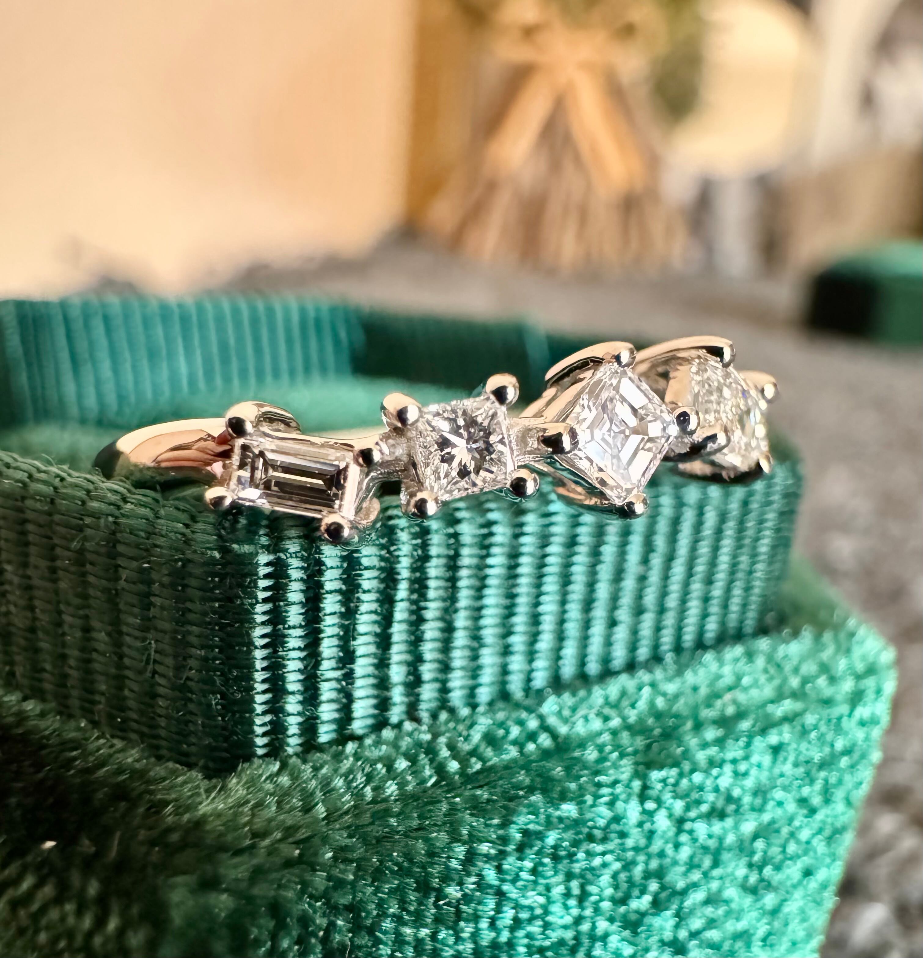 バケットカット・プリンセスカット・エメラルドカット・ラウンドブリリアントカットの4種ダイヤモンドがセットされています。