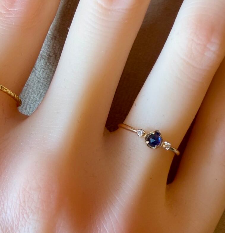 サファイア・ダイヤモンド、どちらも控えめに煌めきとても可愛らしい一品です。