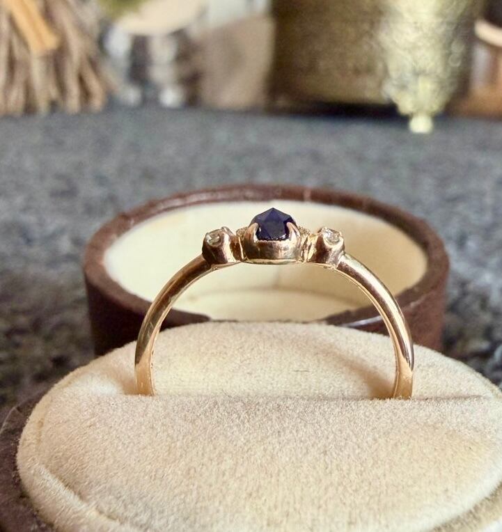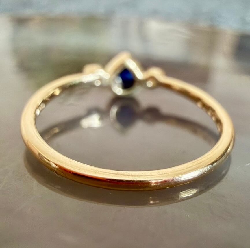 agete◆K10YG*9号*サファイア*ドロップ型リング*アガット