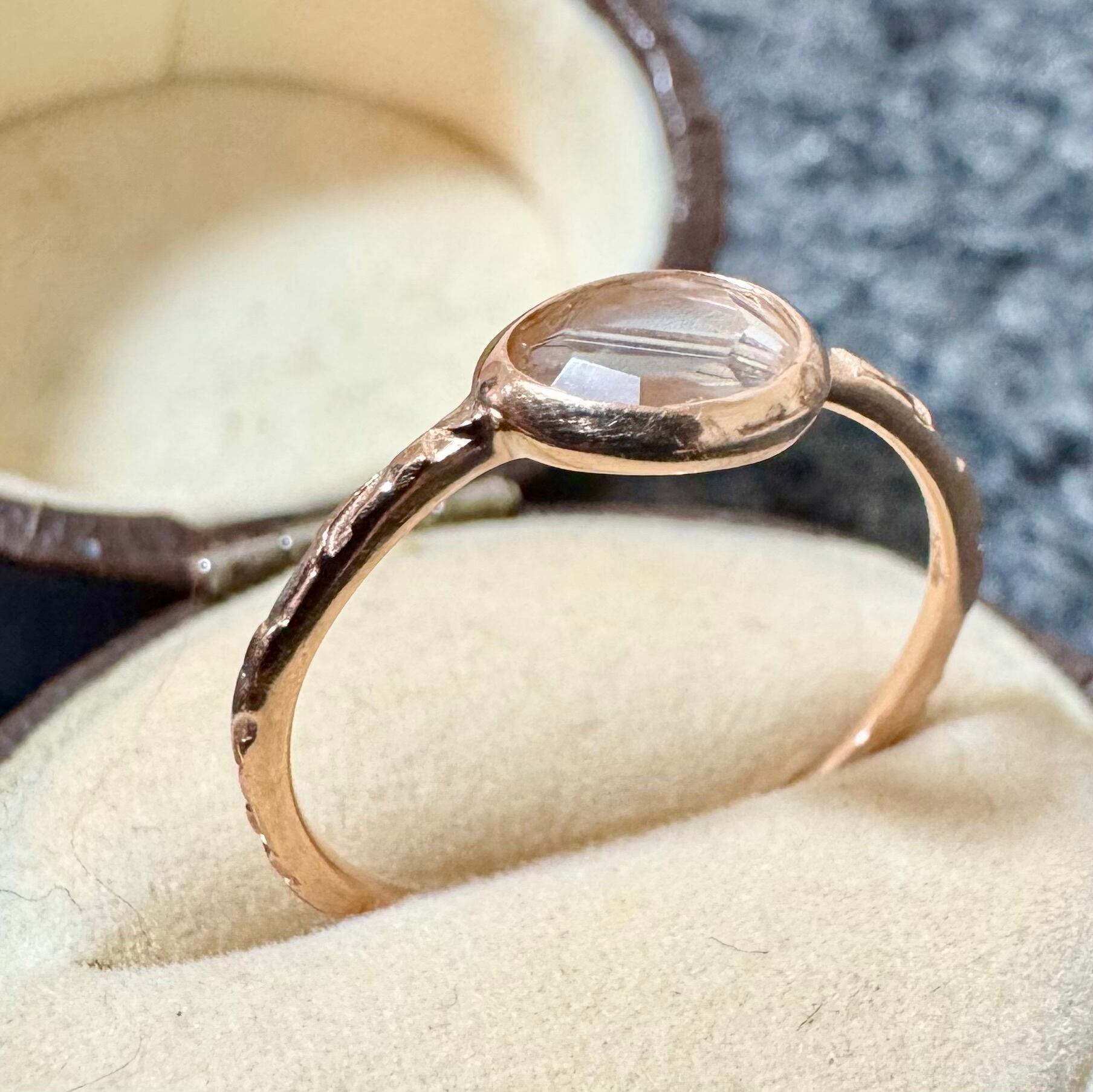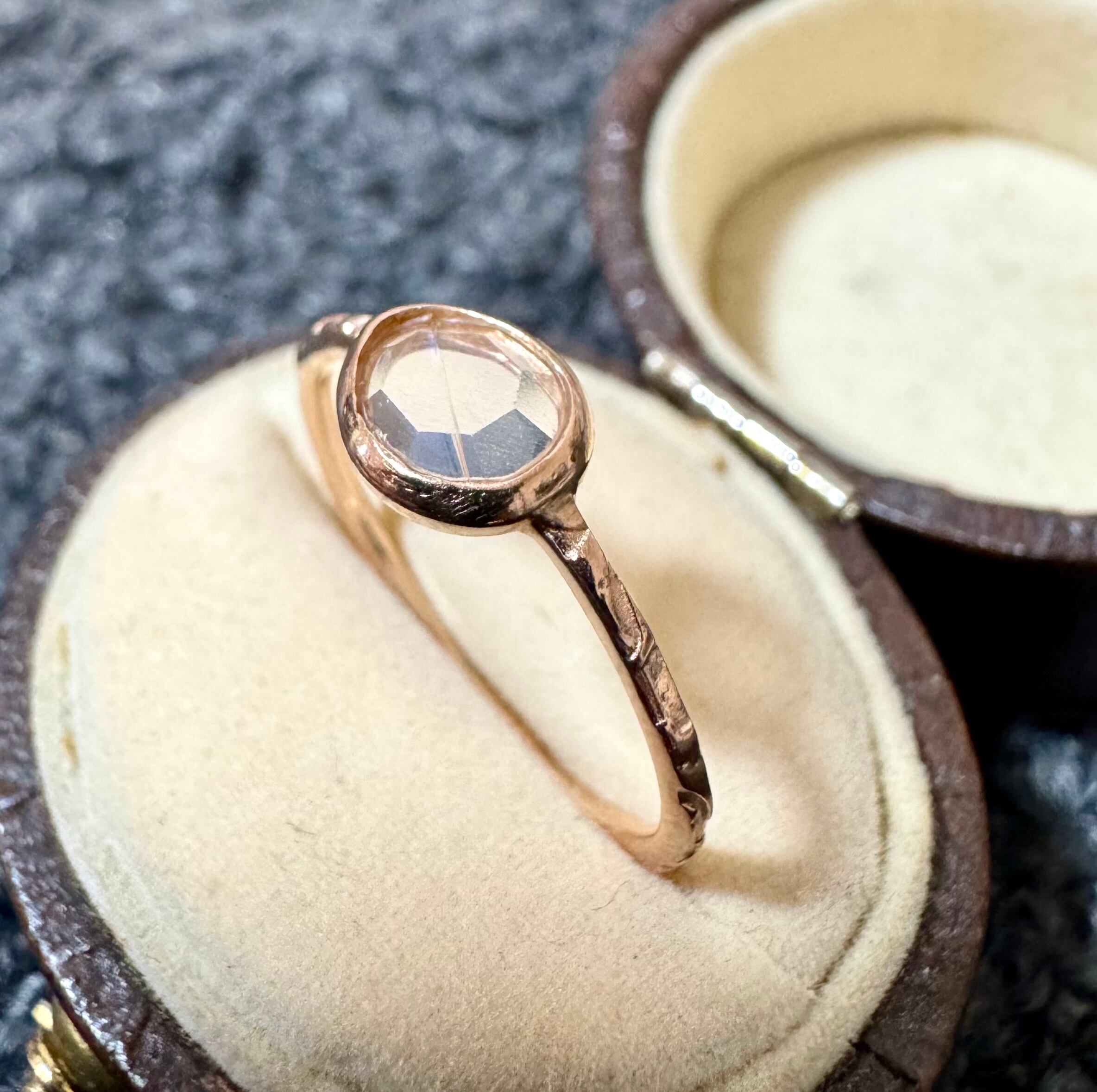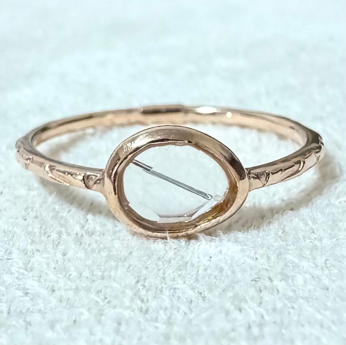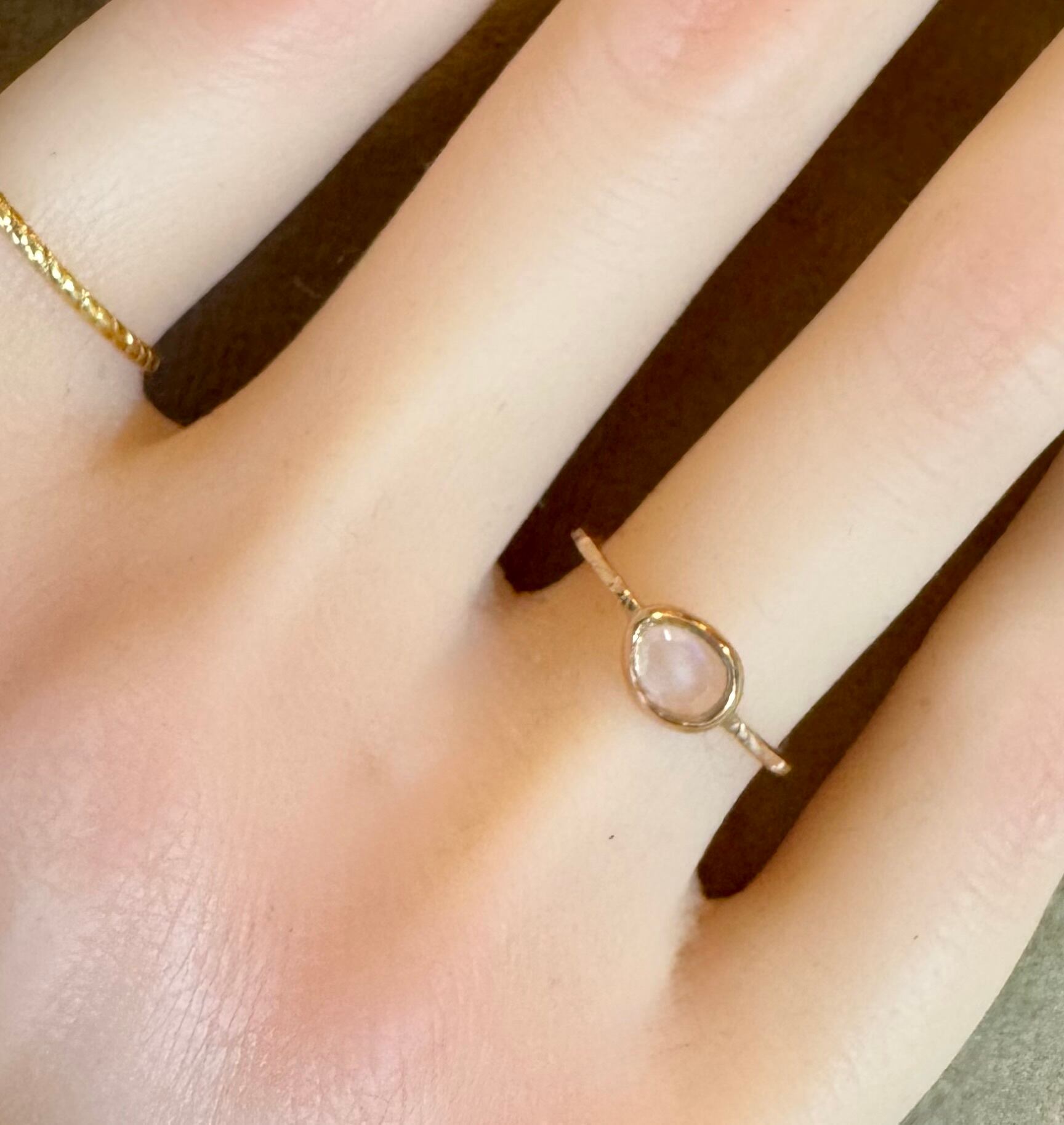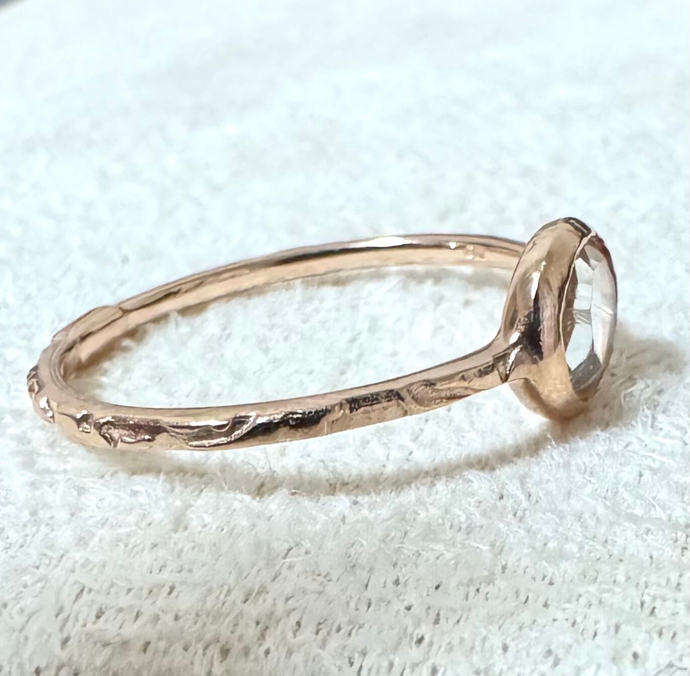 覆輪留めのようにセットされた透明石が重ね付けもしやすく、可愛らしい一品です✦