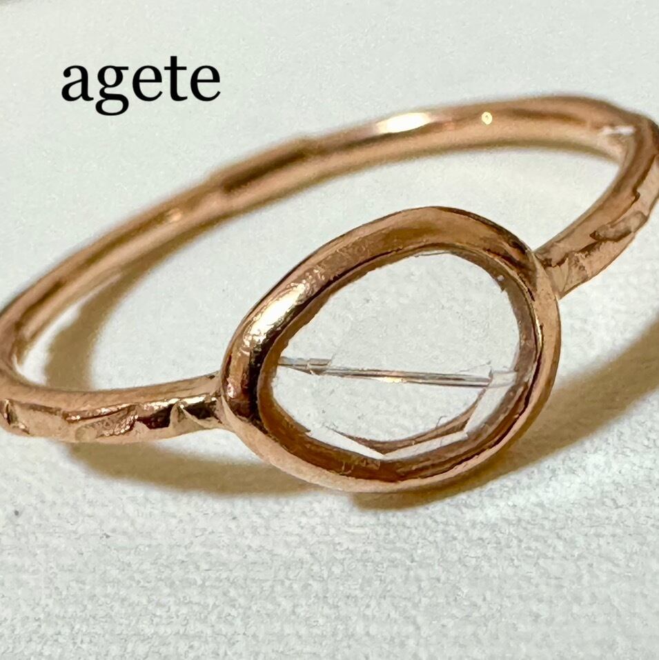 訳あり◆agete◆K10PG*11号*透明石スキニーリング*アガット