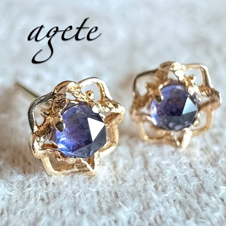 青紫色の深みのある色彩美しい色石とアンティーク調の透かしデザインが耳元を華やかな印象にしてくれます✦