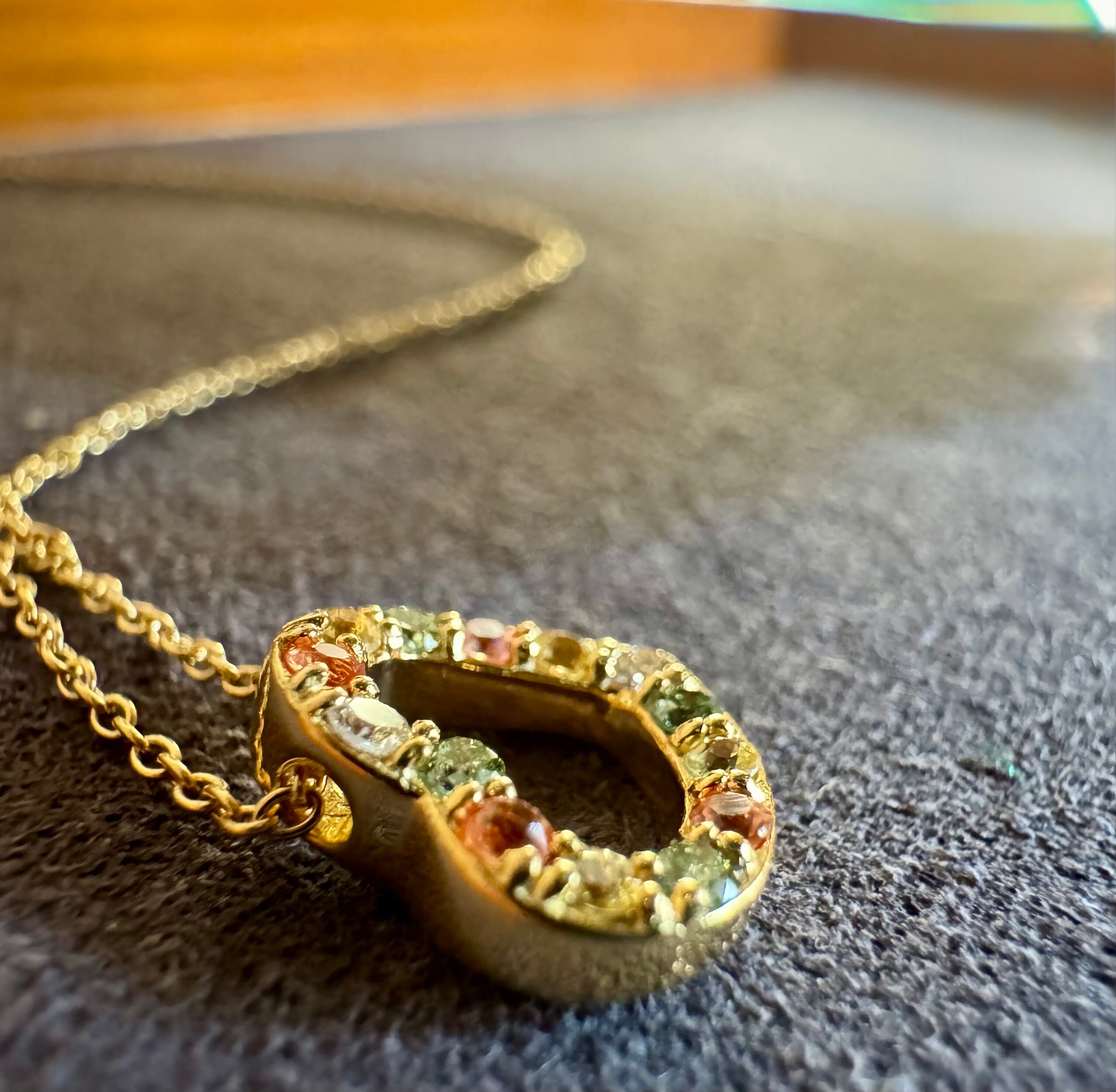 美しいダイヤモンド・グリーンダイヤモンド(トリート)・サファイアで象られたハート。温かみのある色彩により更に可愛さアップ♡