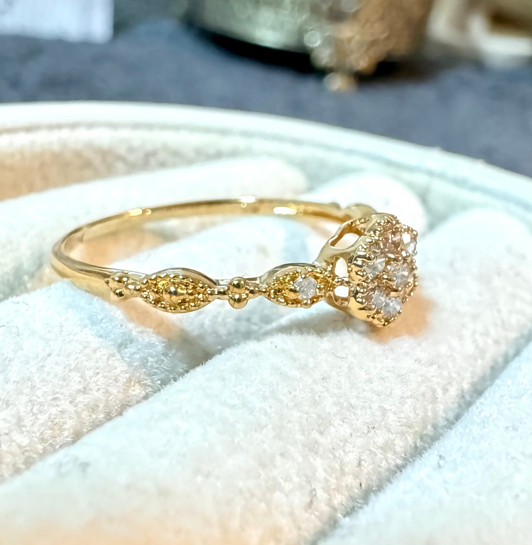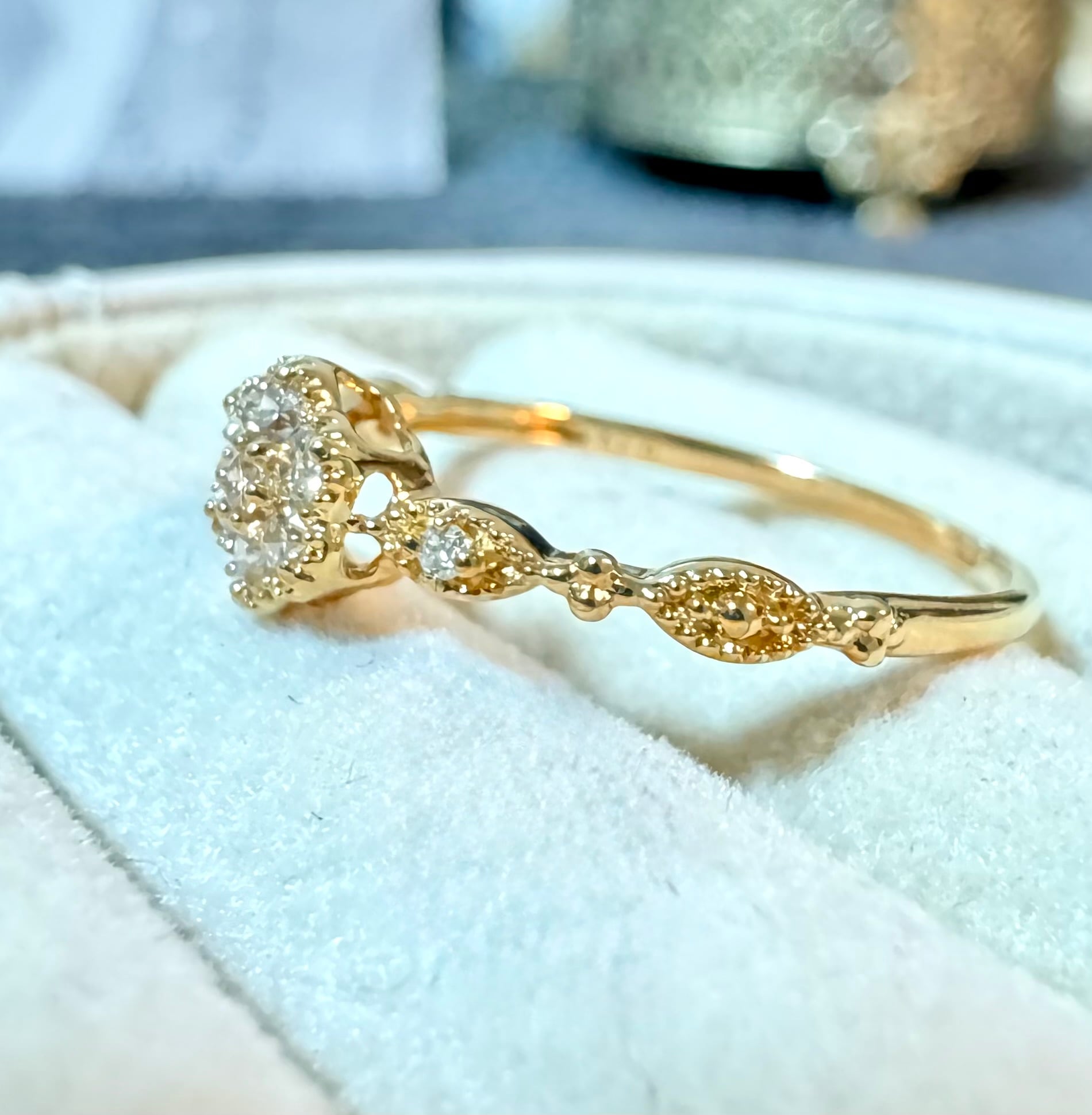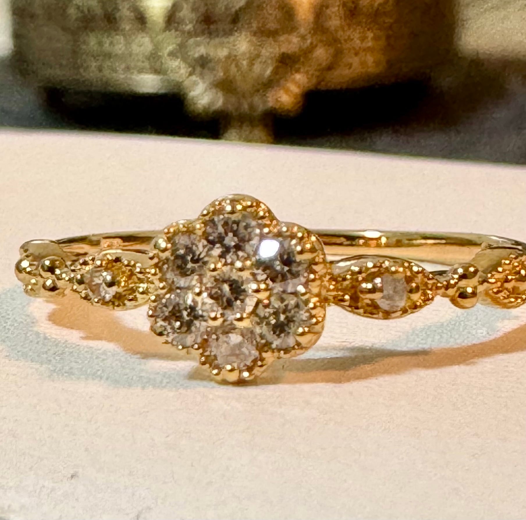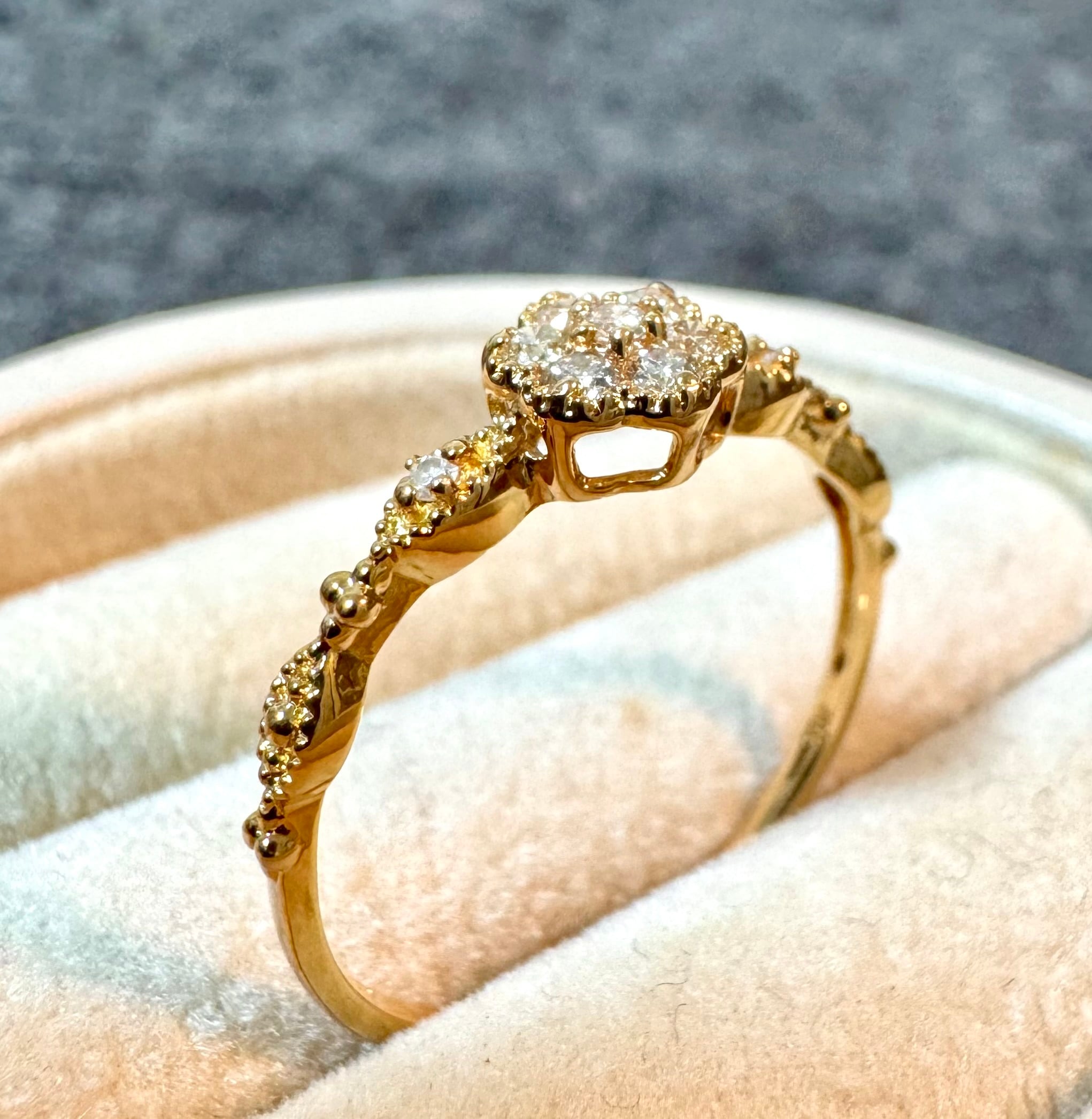 K18YG製、フラワーモチーフ・ダイヤモンドリング♪