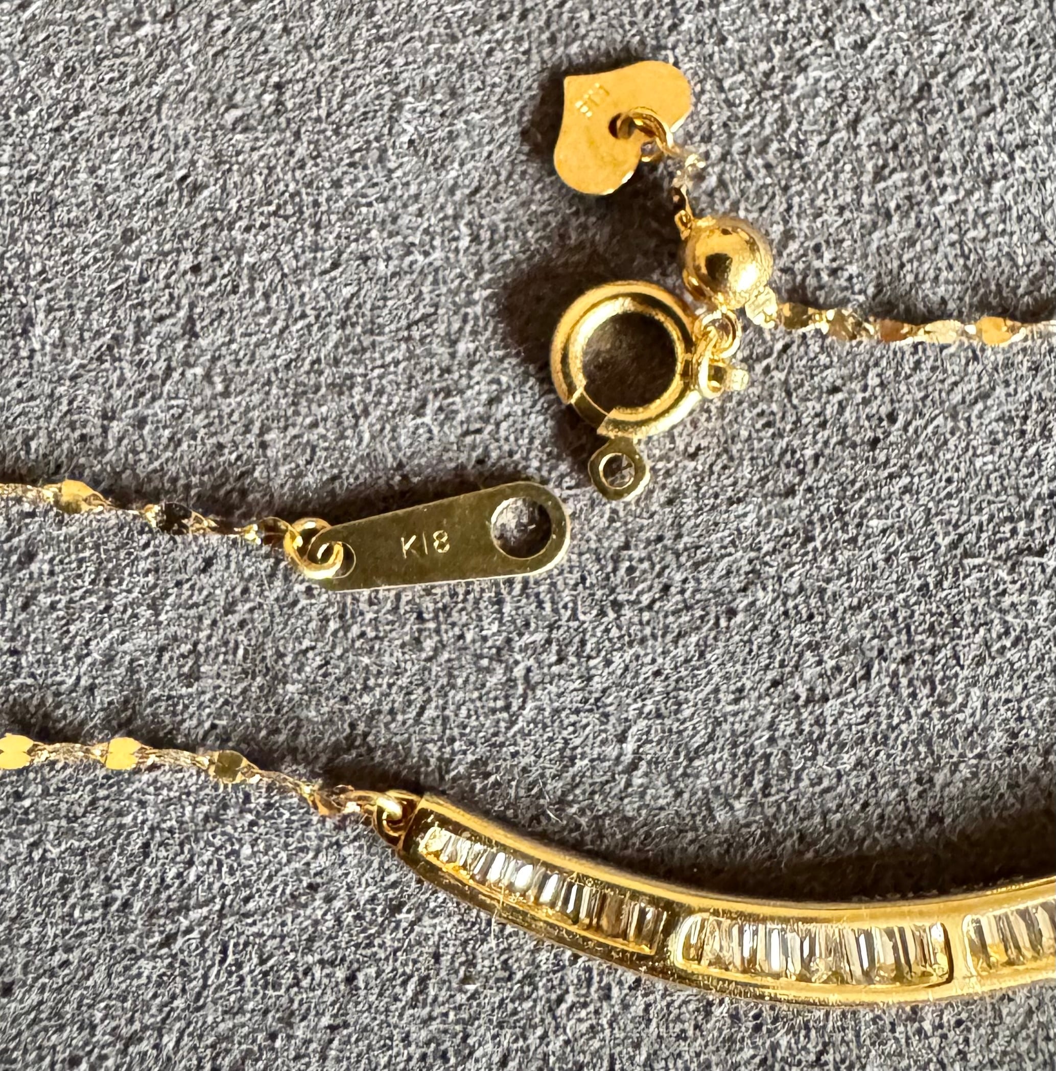 K18YG*テーパーカットダイヤモンドネックレス*スマイル