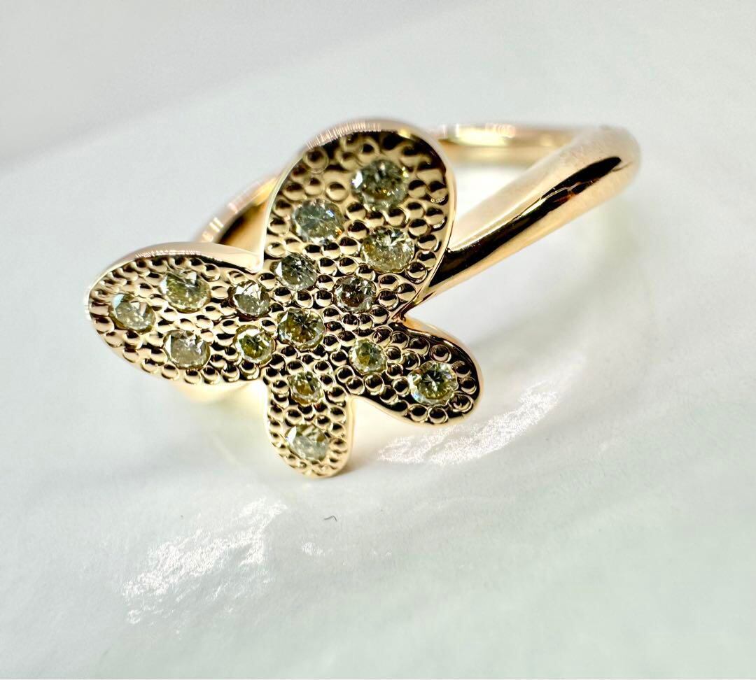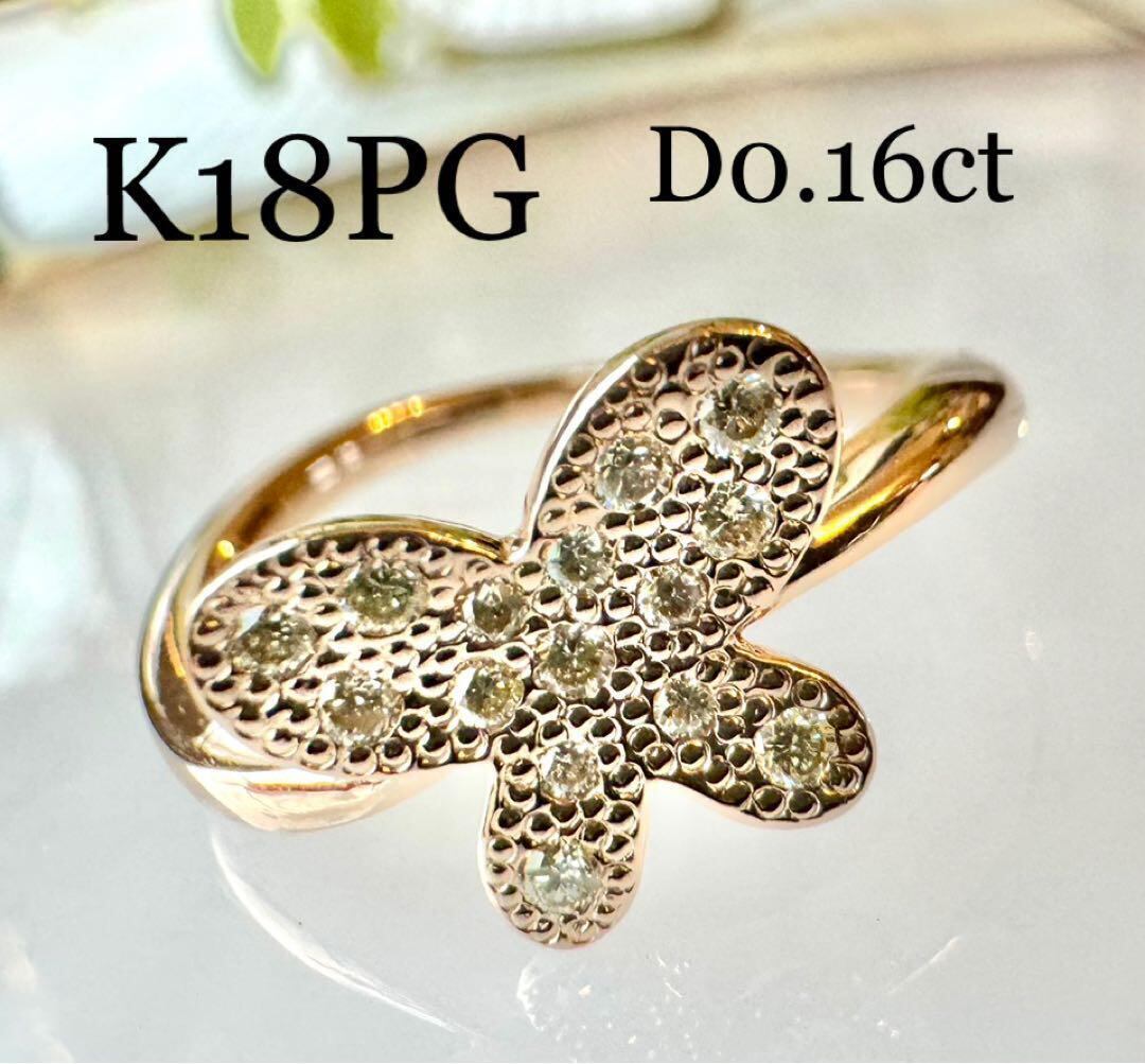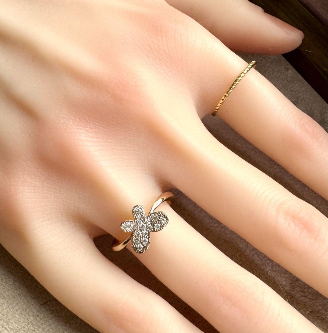 エステール◆K18PG*12号*バタフライダイヤモンドリング*指輪*蝶