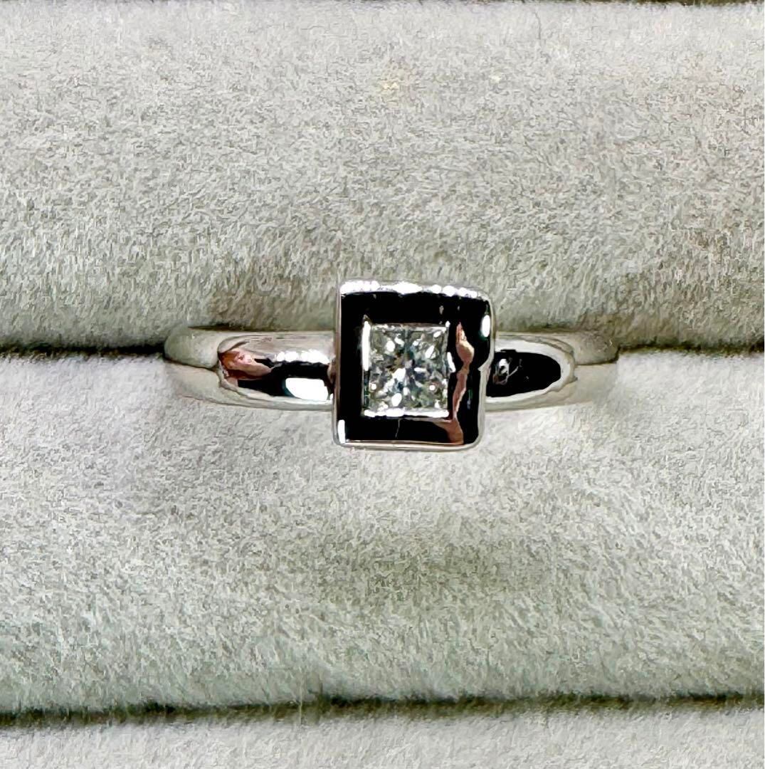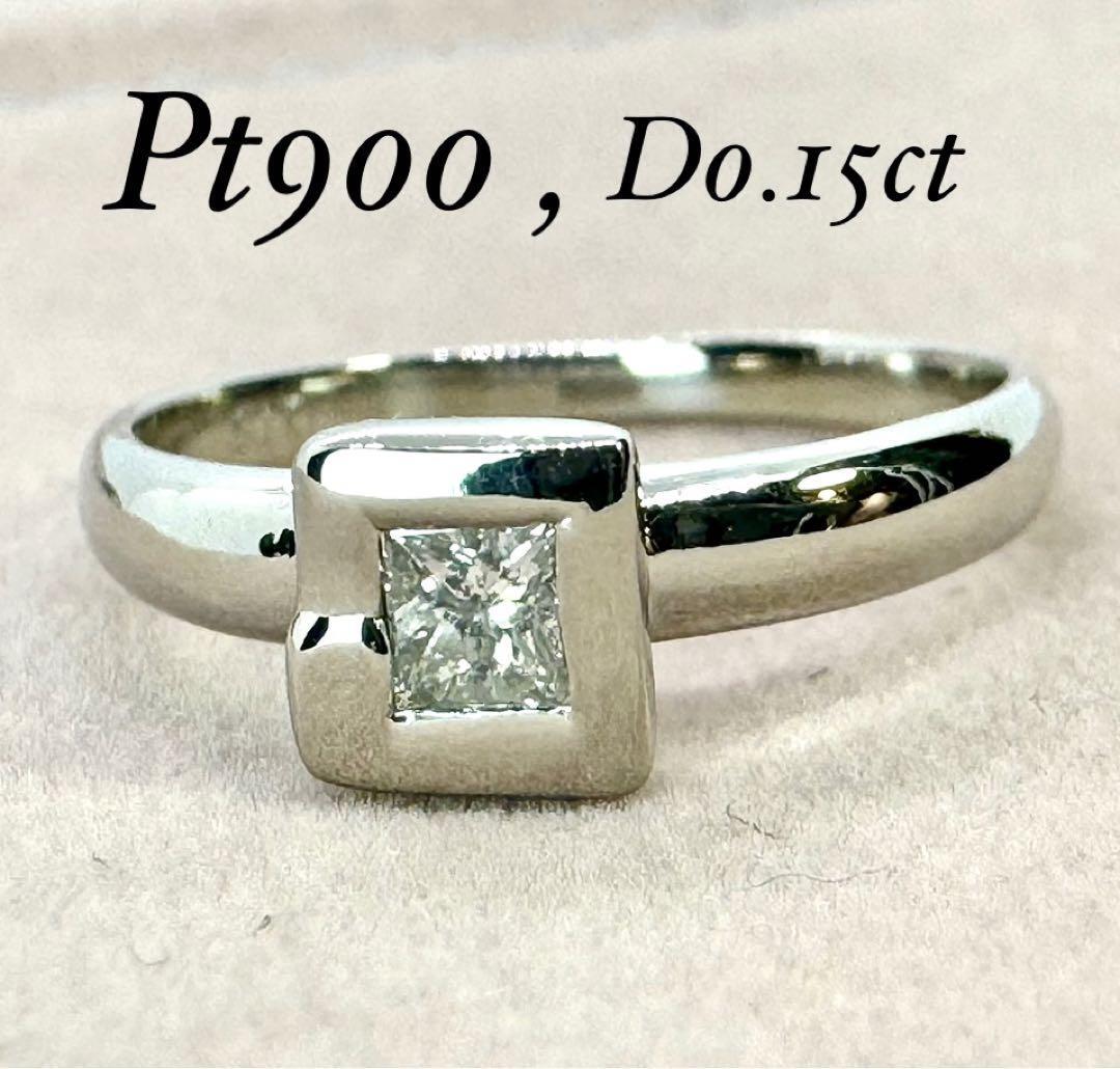 プラチナ900・一粒プリンセスカットダイヤモンドリングです♪