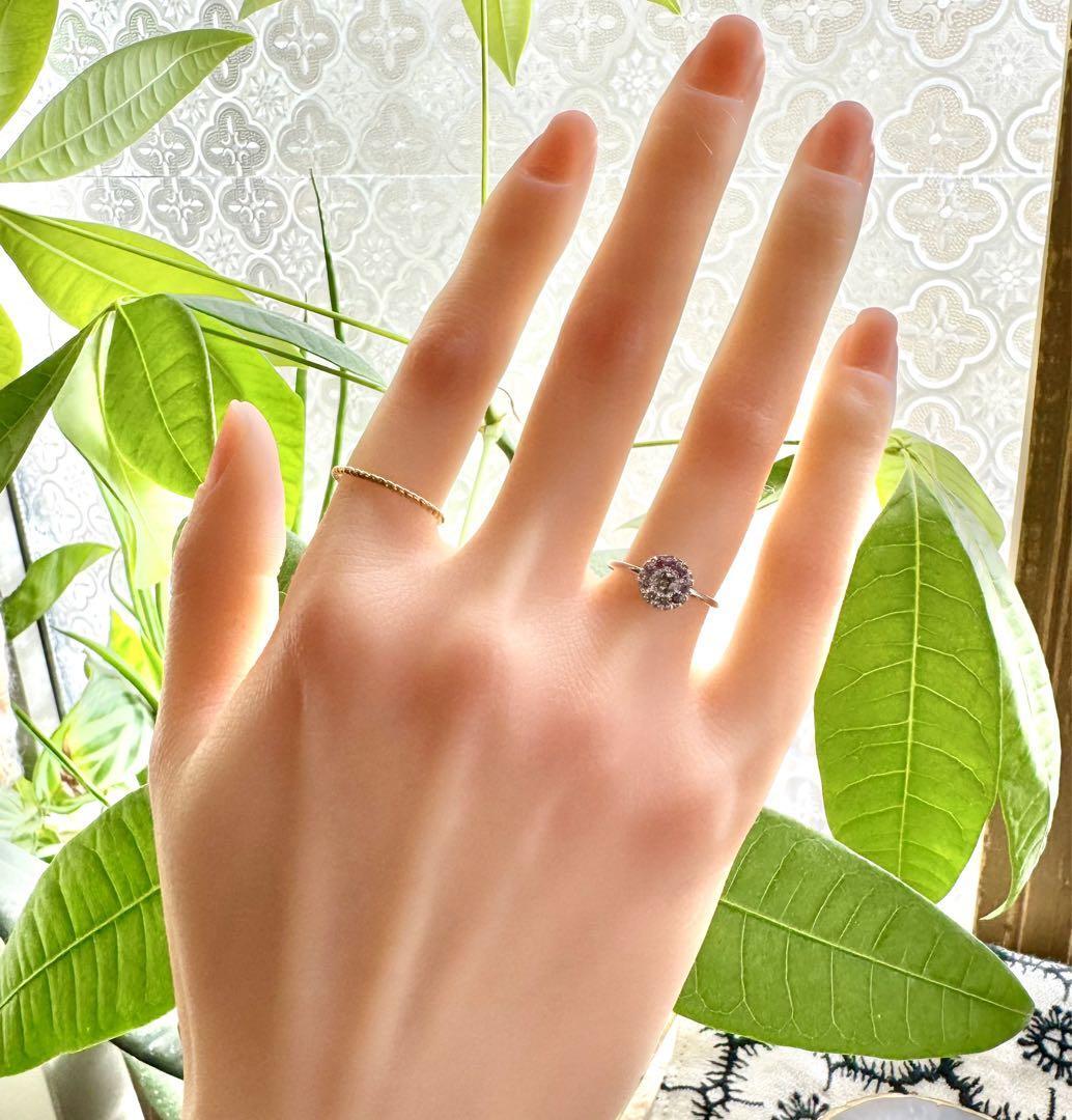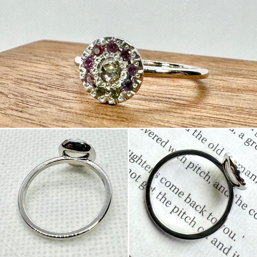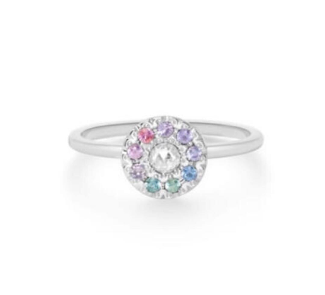 真ん中に0.05ctのローズカットダイヤモンド、その周りにはマルチカラーサファイアで囲った可愛いガーランドリングです♡