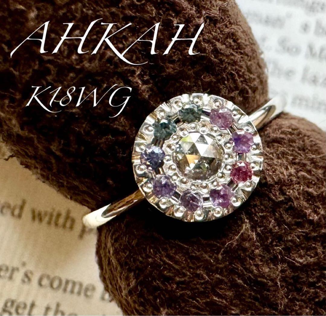 アーカー◆K18WG*9号*ガーランドリング*マルチカラー*ローズカットダイヤ