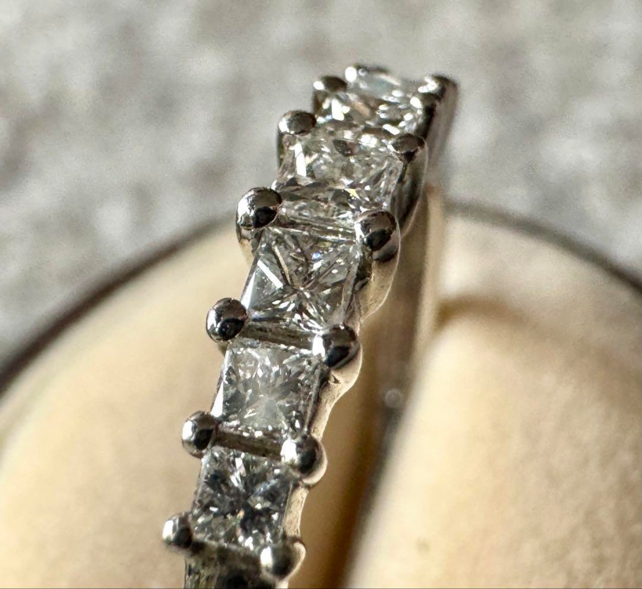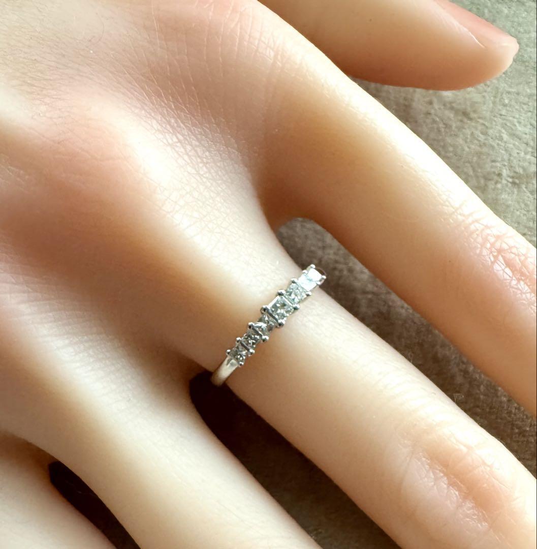 計7粒のプリンセスカットダイヤモンドが横一列に並んだハーフエタニティデザインです◡̈*