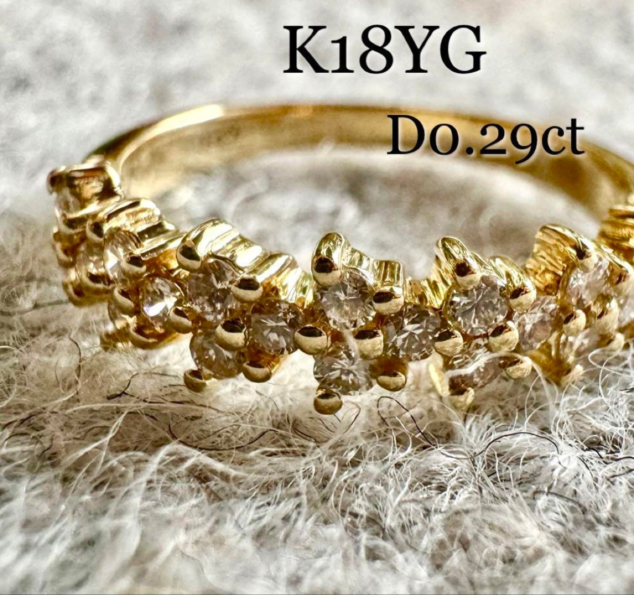 K18YG*2.68g*10号*ストレートダイヤモンドリング*指輪*0.29ct