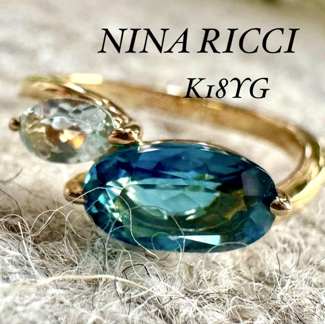 鑑別書付◆ニナリッチ◆K18YG*12号*カラーストーンリング*色石*ブルートパーズ*指輪