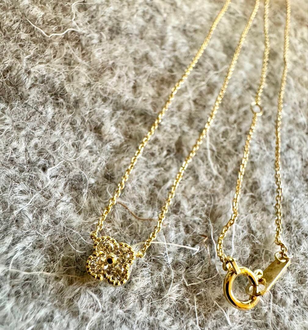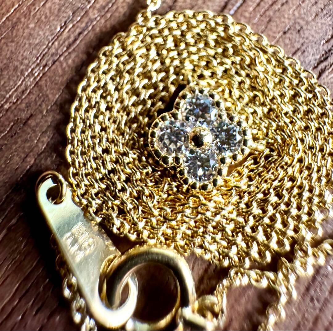 美しいダイヤモンド4粒と、それを囲むミルグレインがデコルテラインを可愛く美しく魅せてくれます✦
