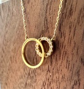 ダイヤモンドがセッティングされた輪の上に、ゴールドプレートの輪のモチーフをのせる事で、曲線が美しく引き立ち、すっきりとスタイリッシュな印象に仕上がりました。