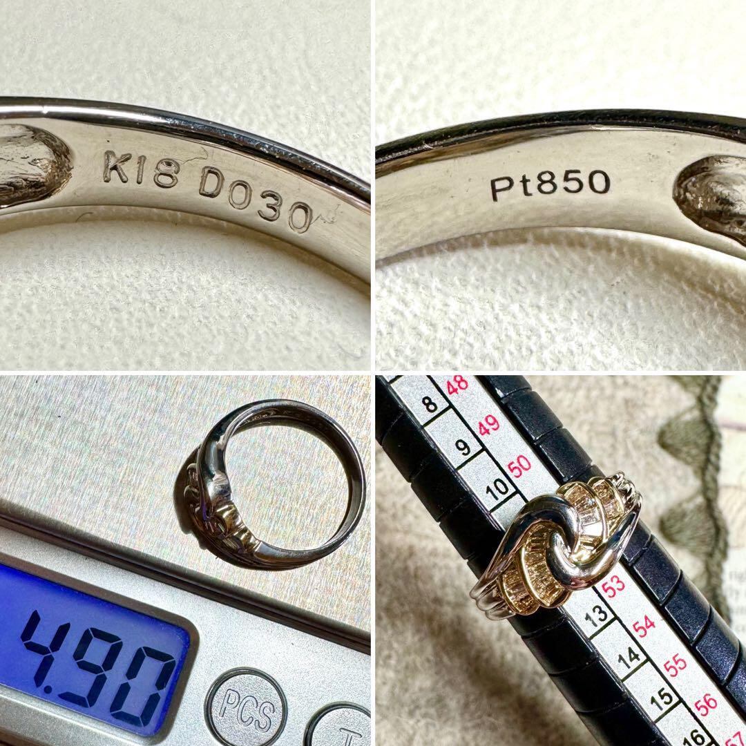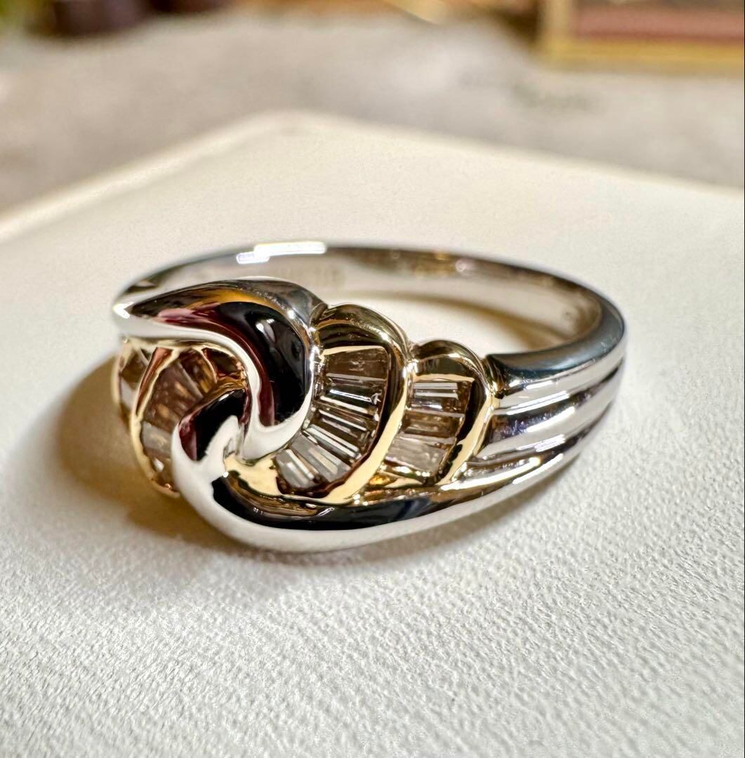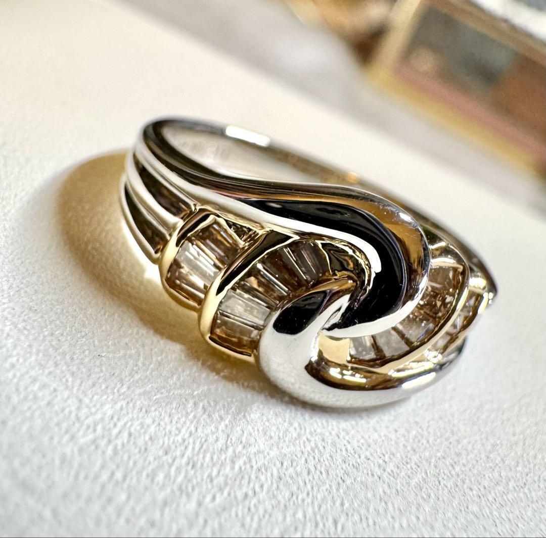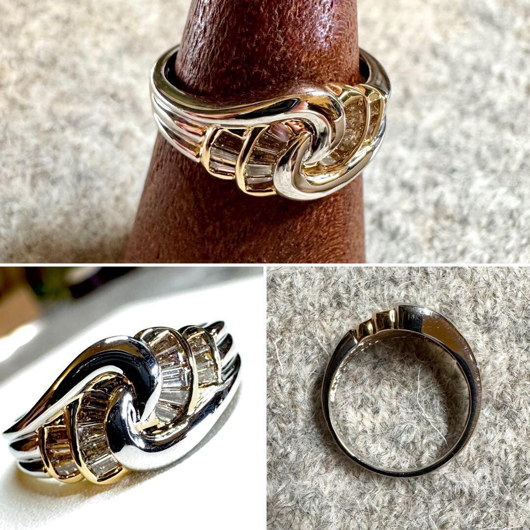 Pt850/K18YG*12号*テーパーカットダイヤモンドコンビリング*指輪