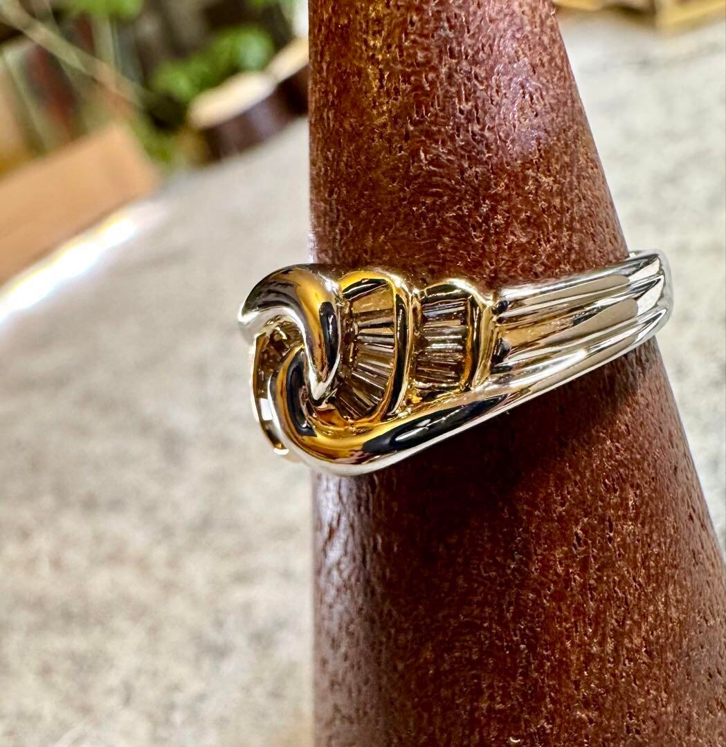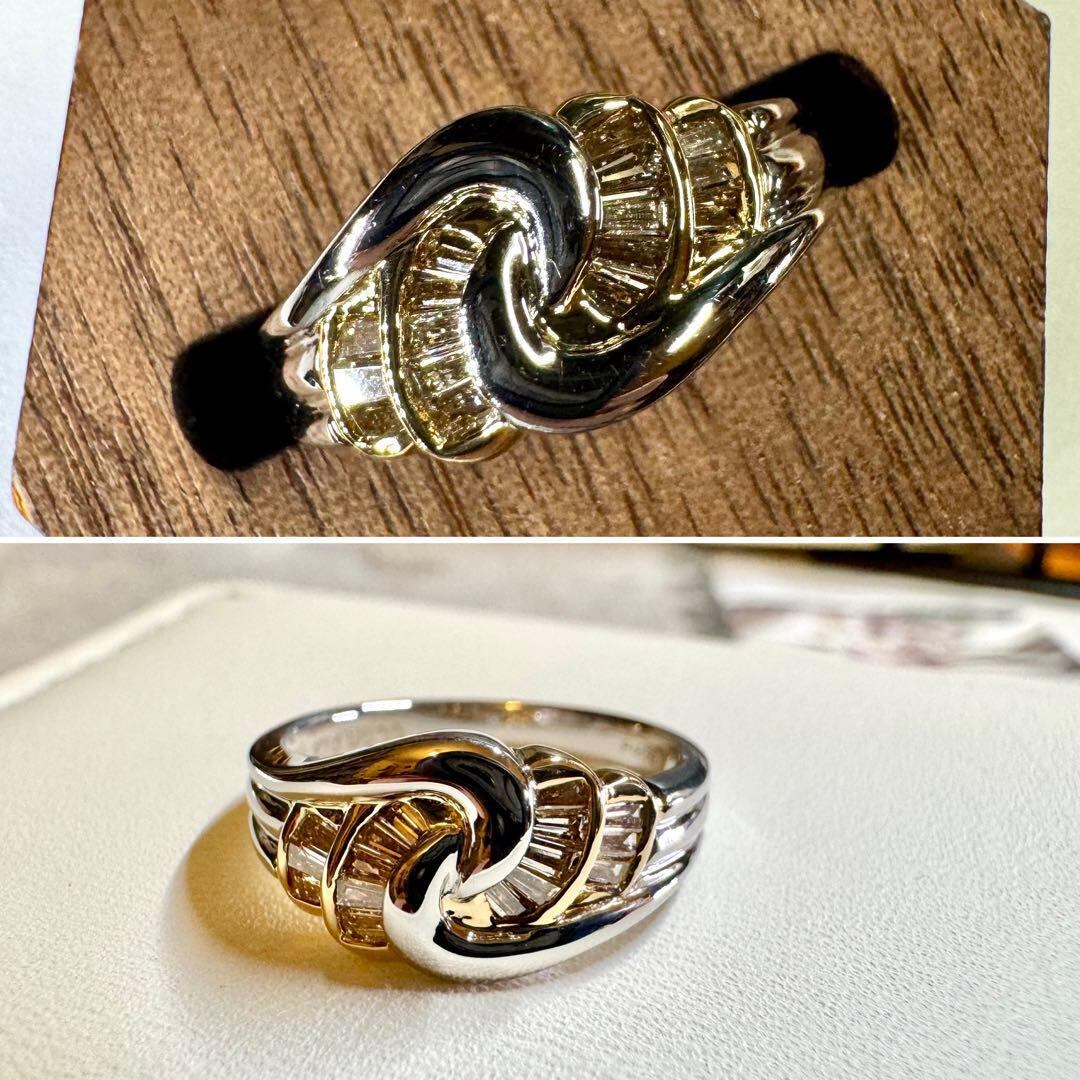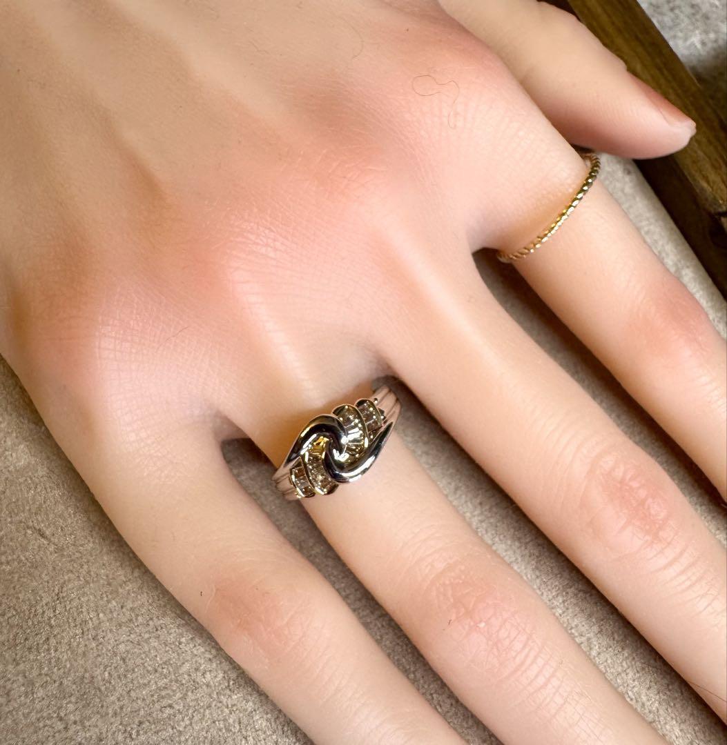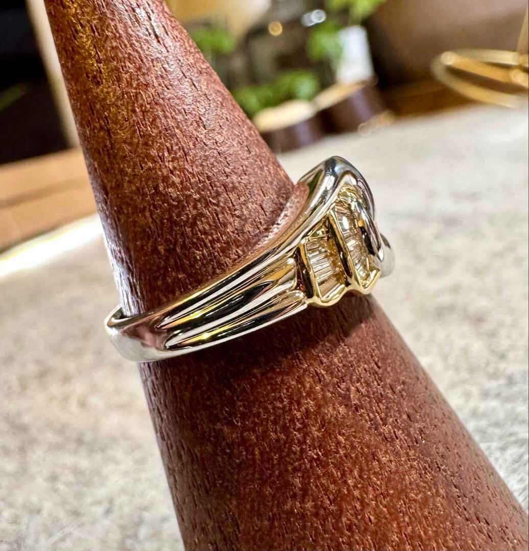 Pt850/K18YG*12号*テーパーカットダイヤモンドコンビリング*指輪