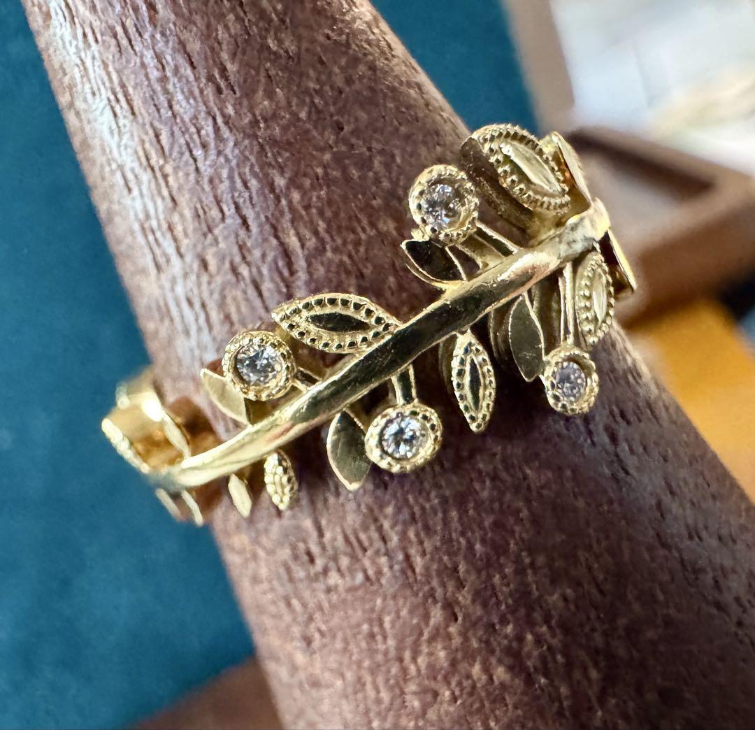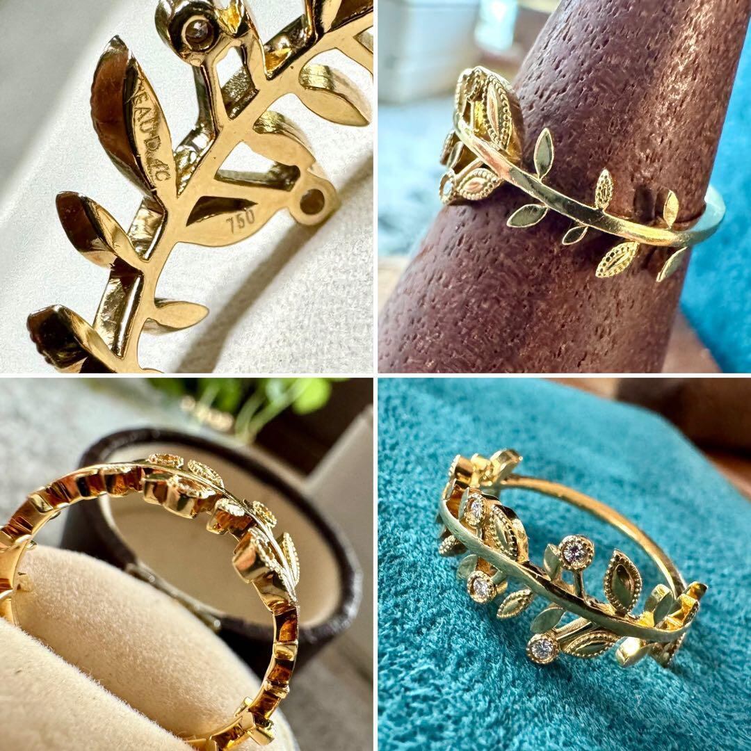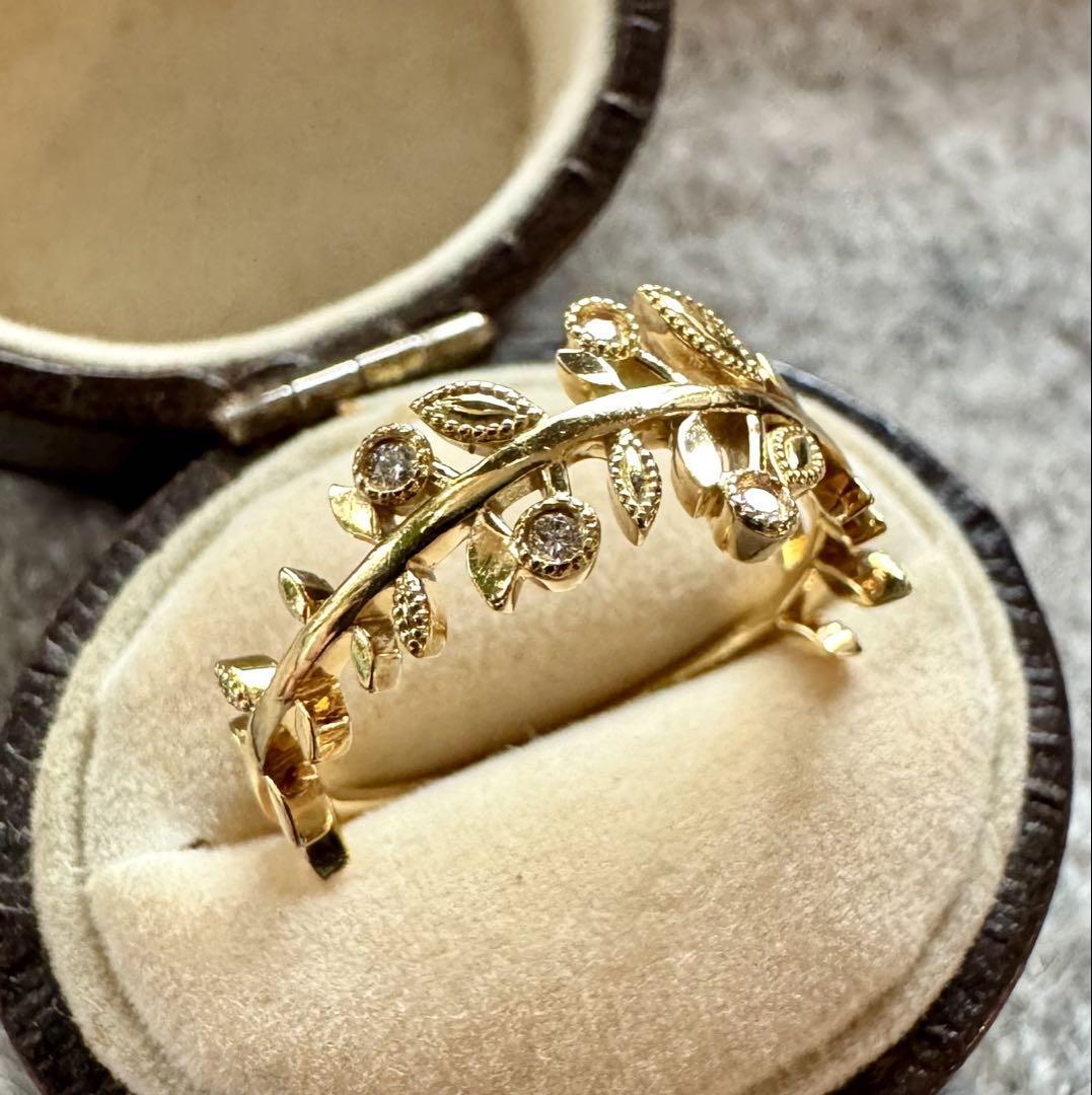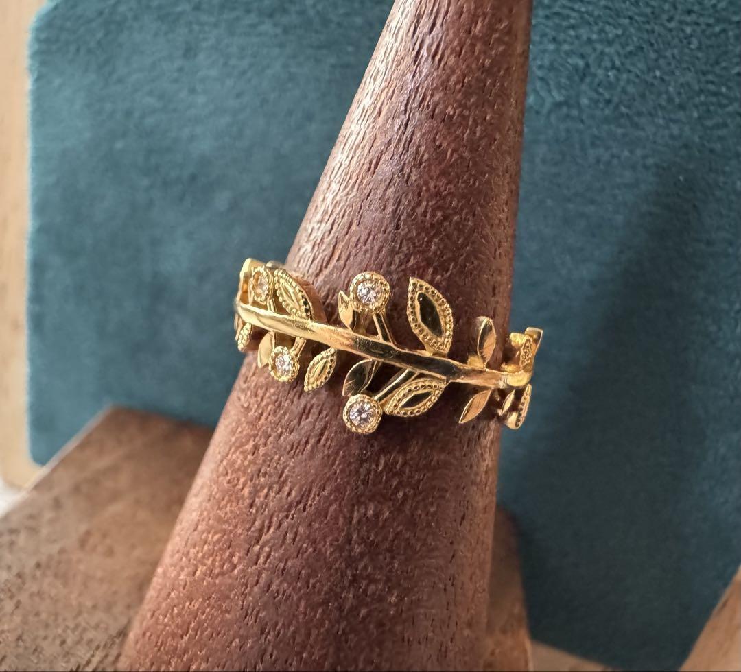 オデュース4°C◆K18YG*11号*リーフダイヤモンドリング*指輪*