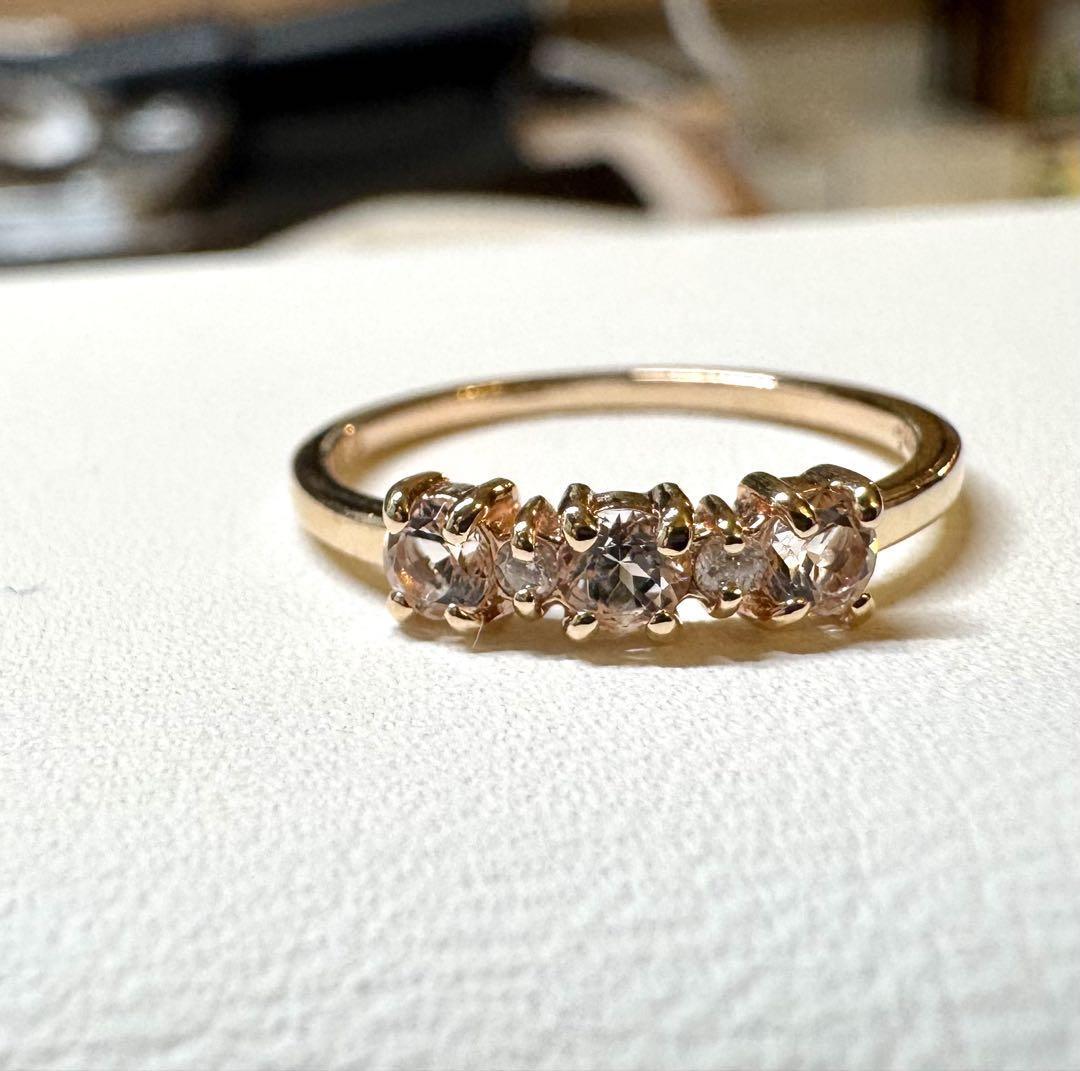 アガットのほんのりピンクカラーのストーンとダイヤモンドが可愛いらしいピンキーリング。