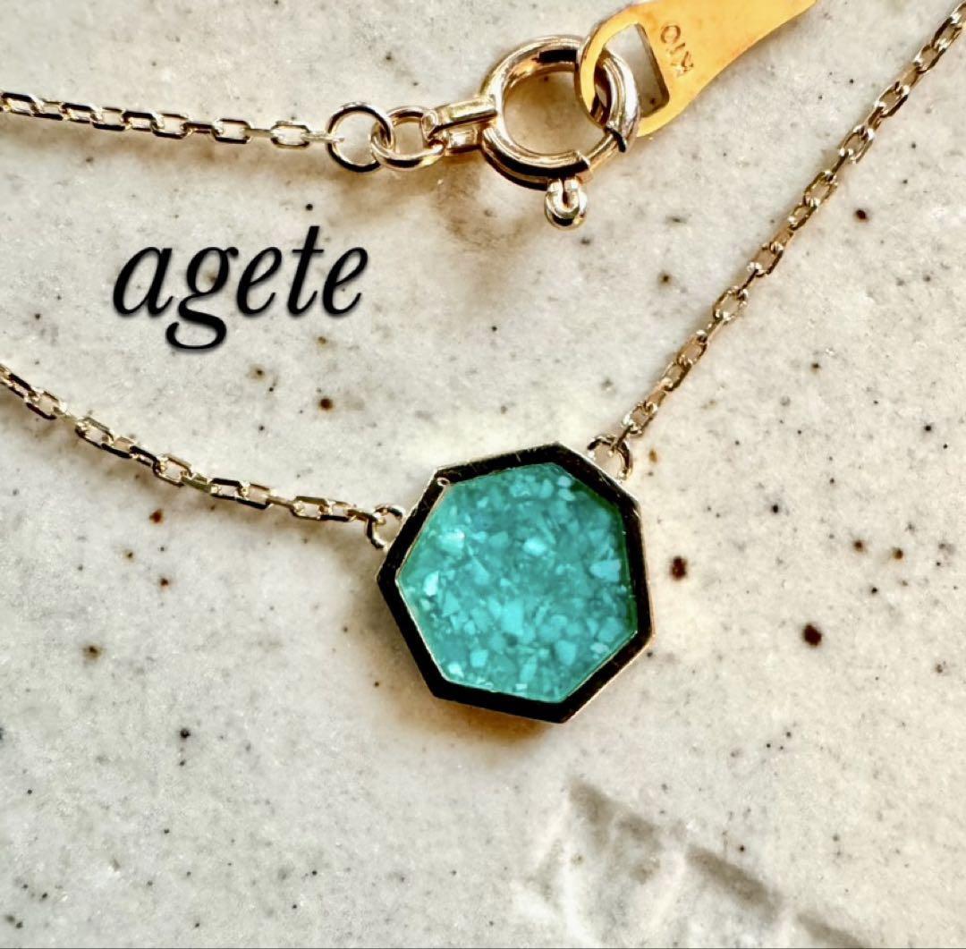agete◆K10YG*ローマンガラスネックレス*アガット*水色