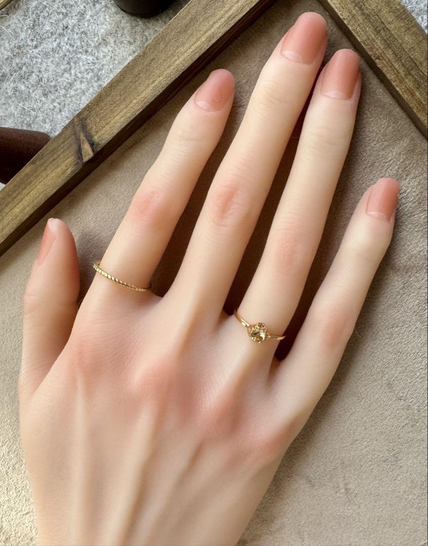 特徴的なトップには透明度の美しいライトグリーンの色石がセット。