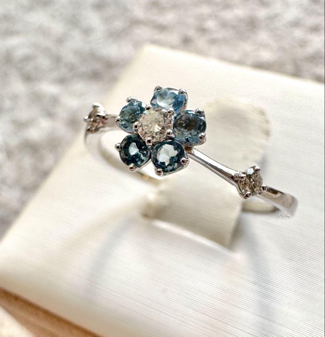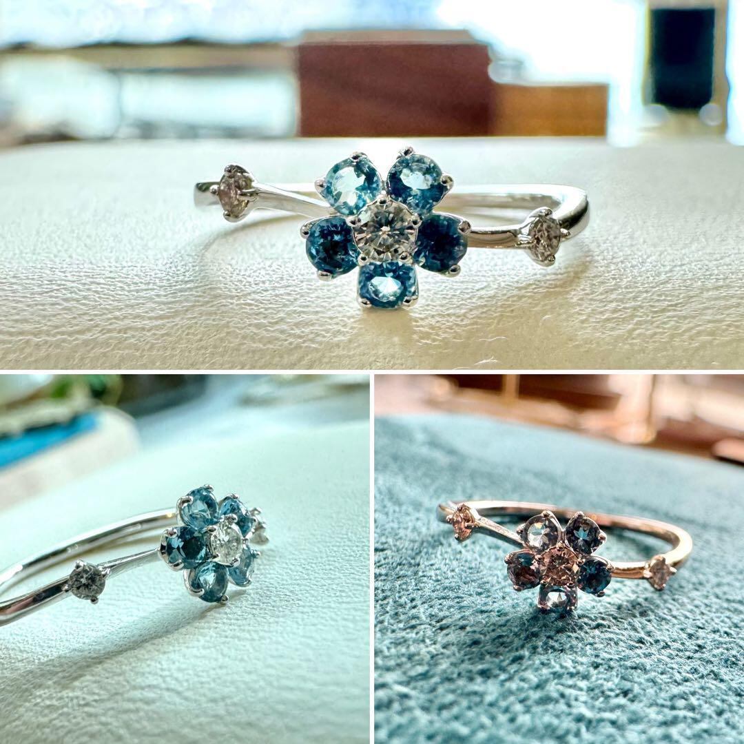 サマンサティアラのフラワーモチーフ・ライトブルーカラーストーン×ダイヤモンドリング♪