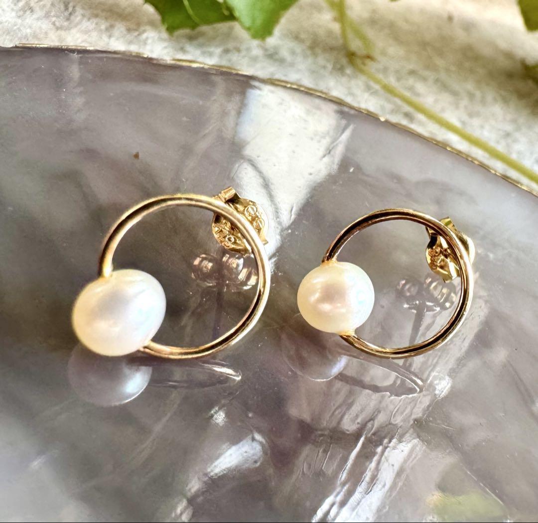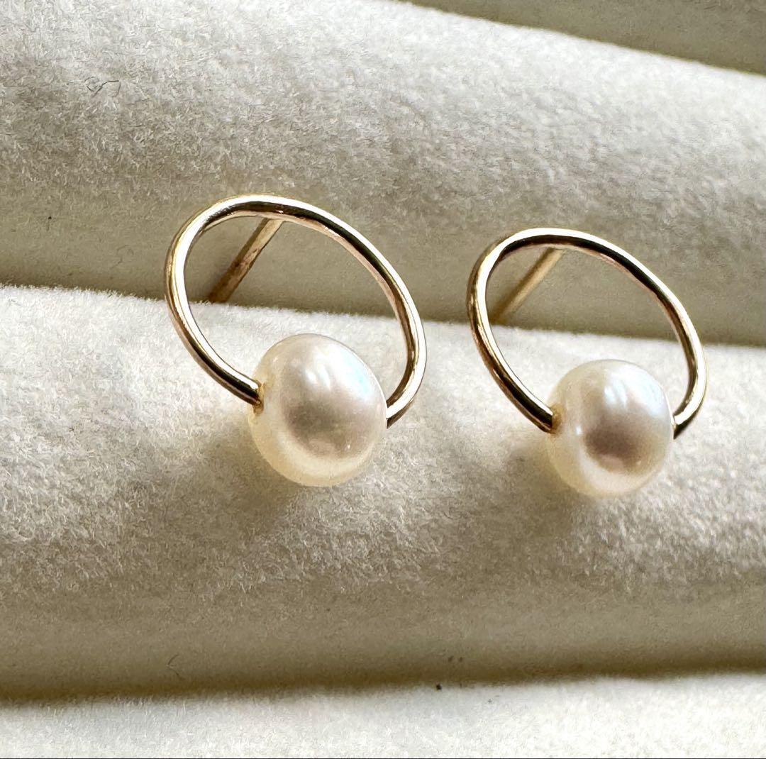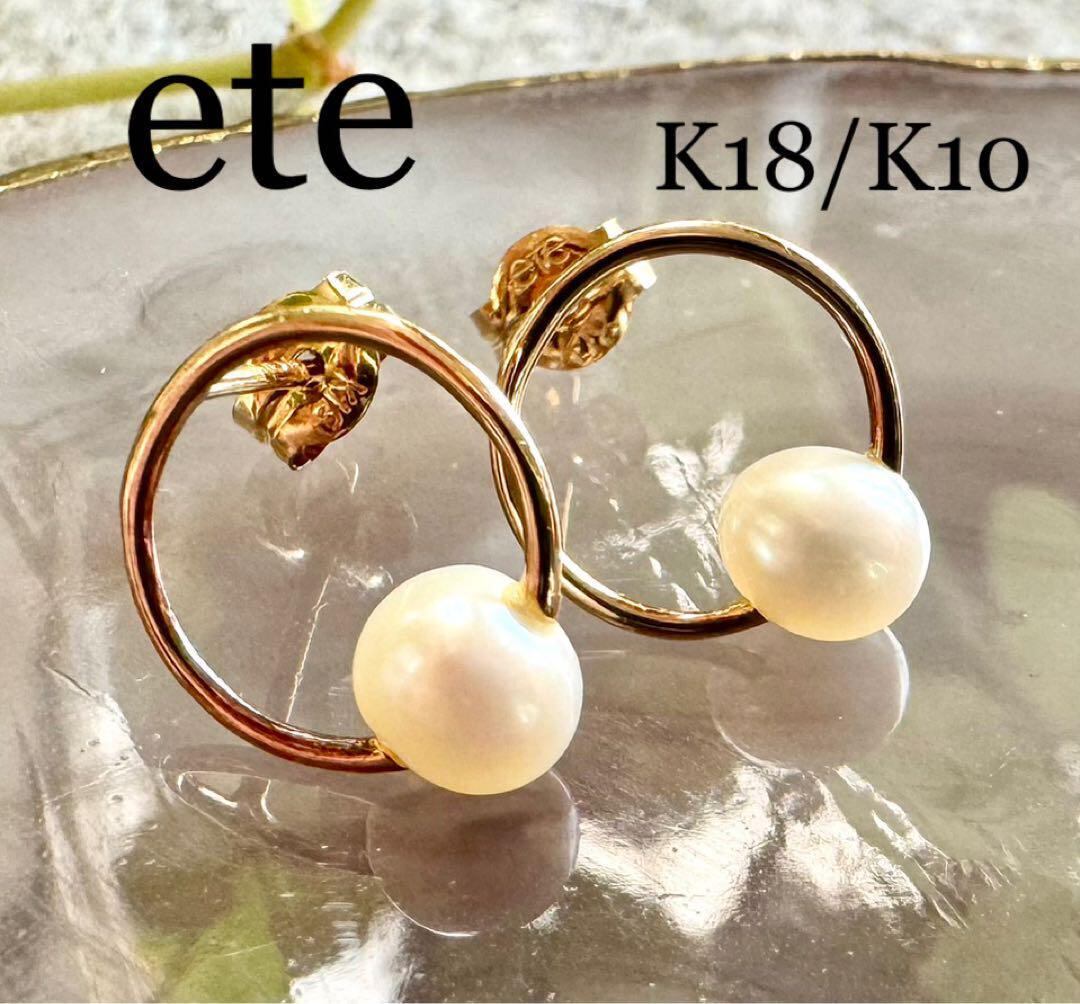 エテのK18/K10YGのバロックパール付きサークルスタッドピアスです✦