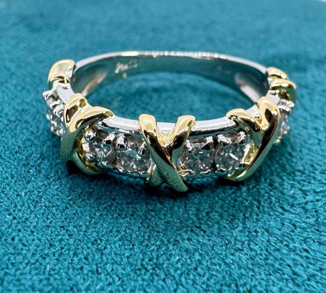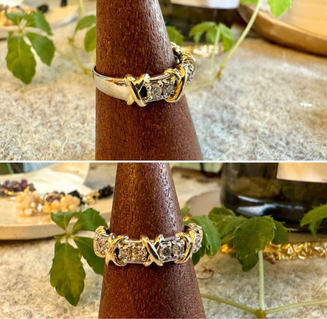 Pt900をメインに、イエローゴールド地金でXモチーフがデザインされています。