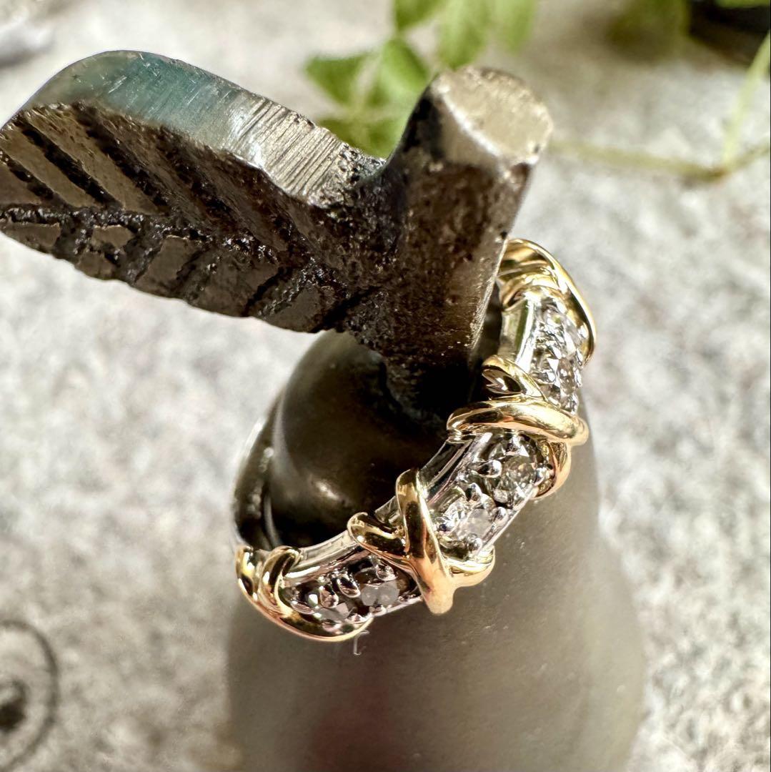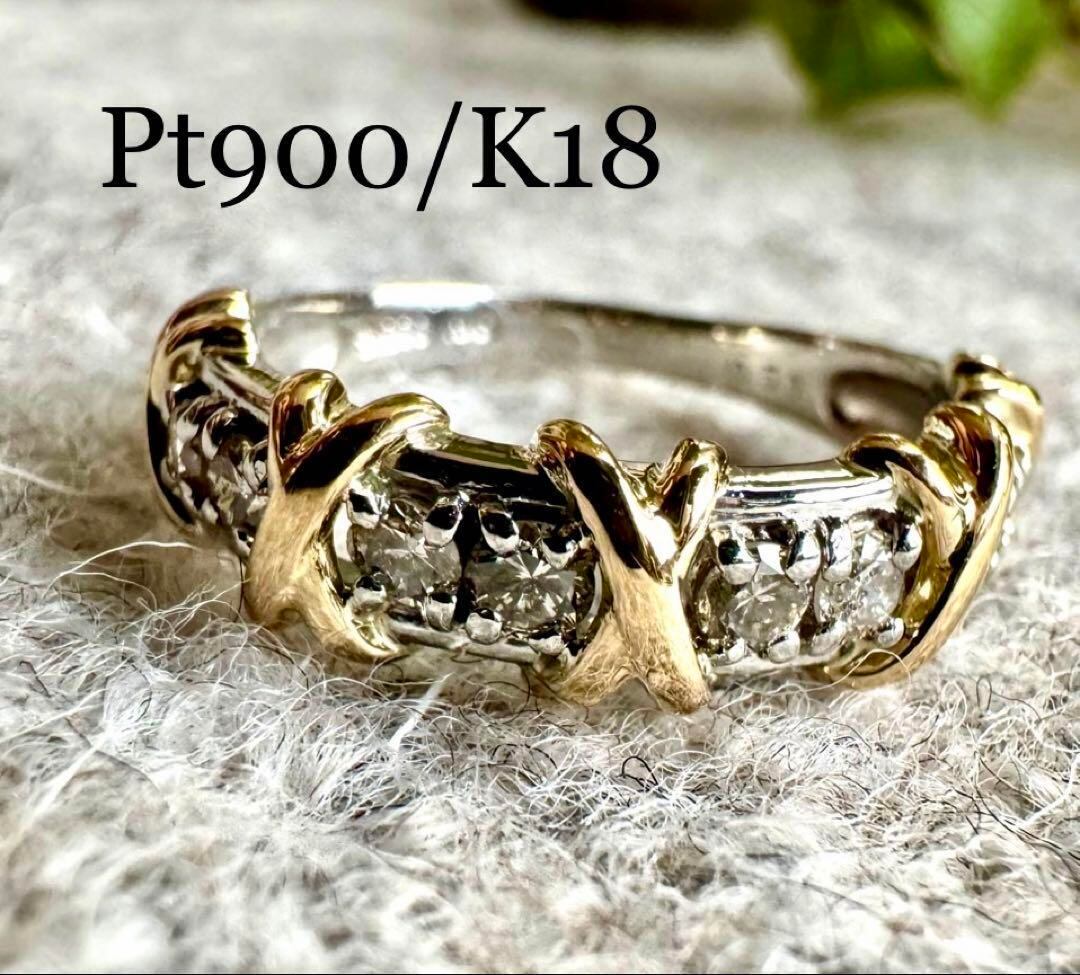 新品磨き済◆Pt900/K18*4.72g*15号*ダイヤモンドコンビリング*指輪