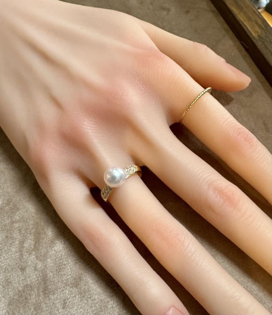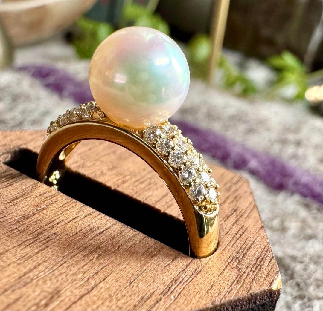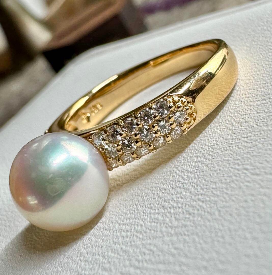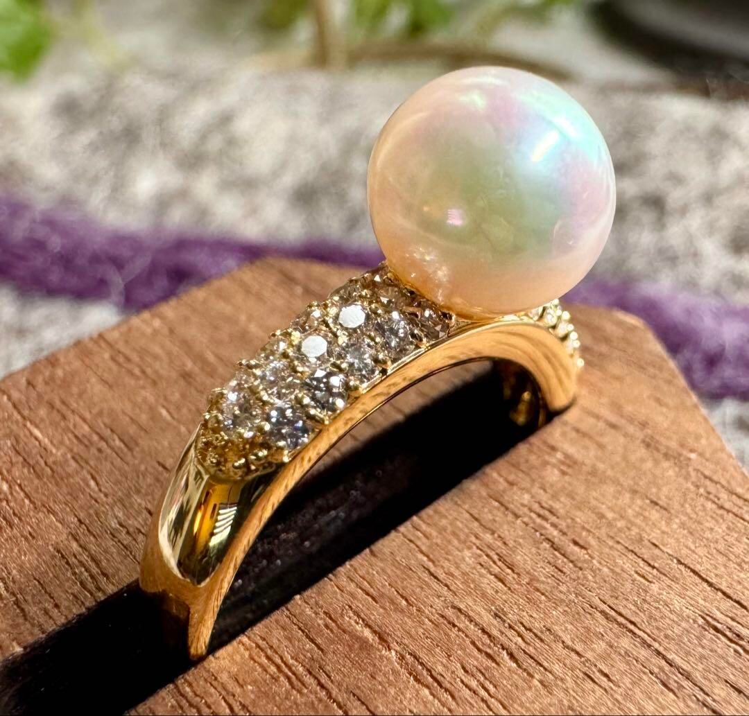 センターのパールはもちろん、それを引き立てるようにセットされたパヴェダイヤモンドがとても美しく、抜群の存在感を放っています◡̈*