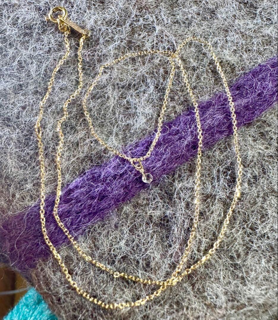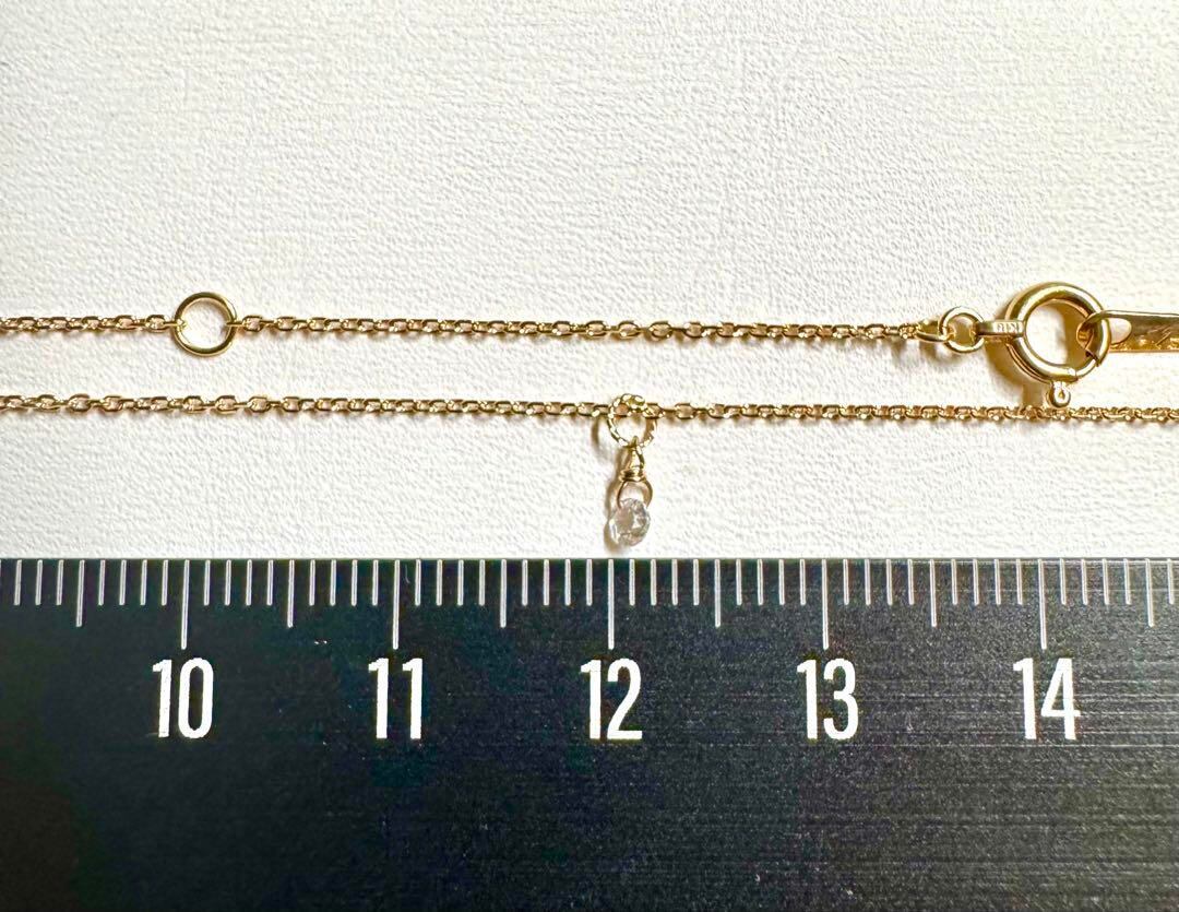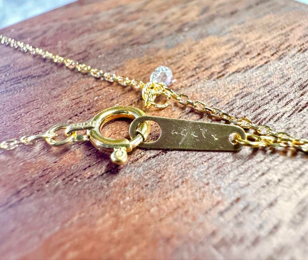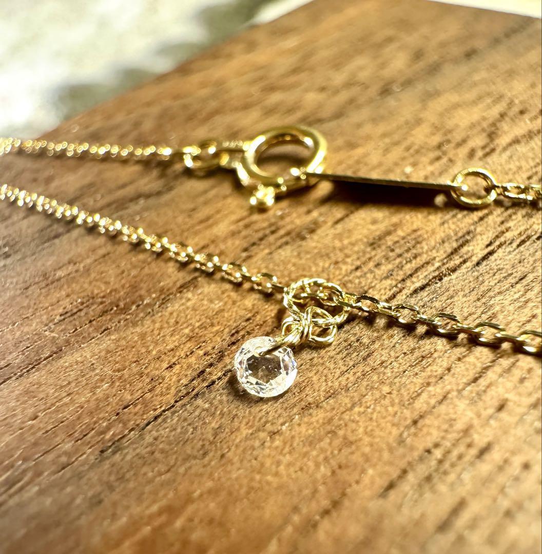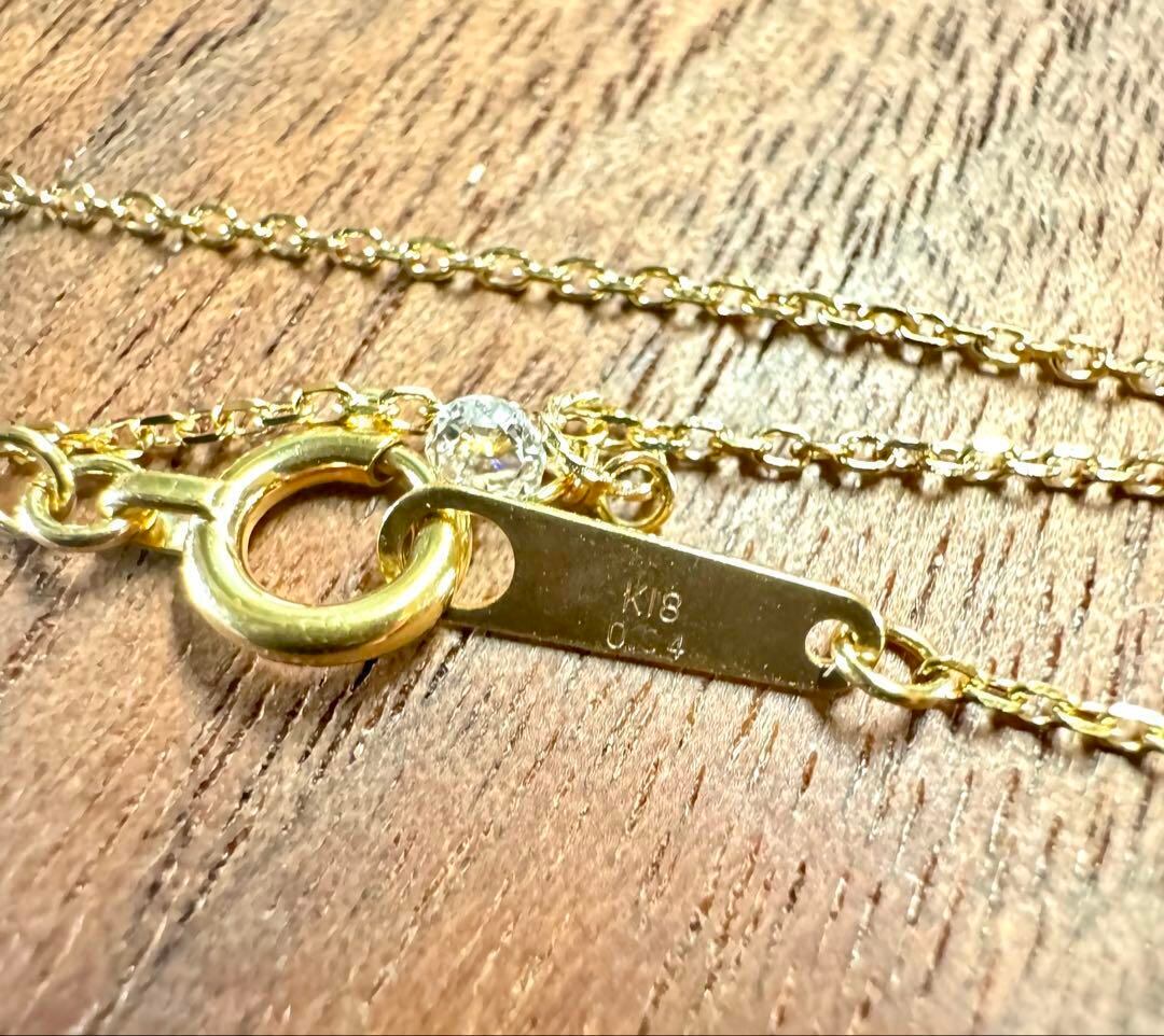 0.04ctととても控えめサイズですが、輝くダイヤモンドとチェーンがデコルテラインをとても美しく魅せてくれます。