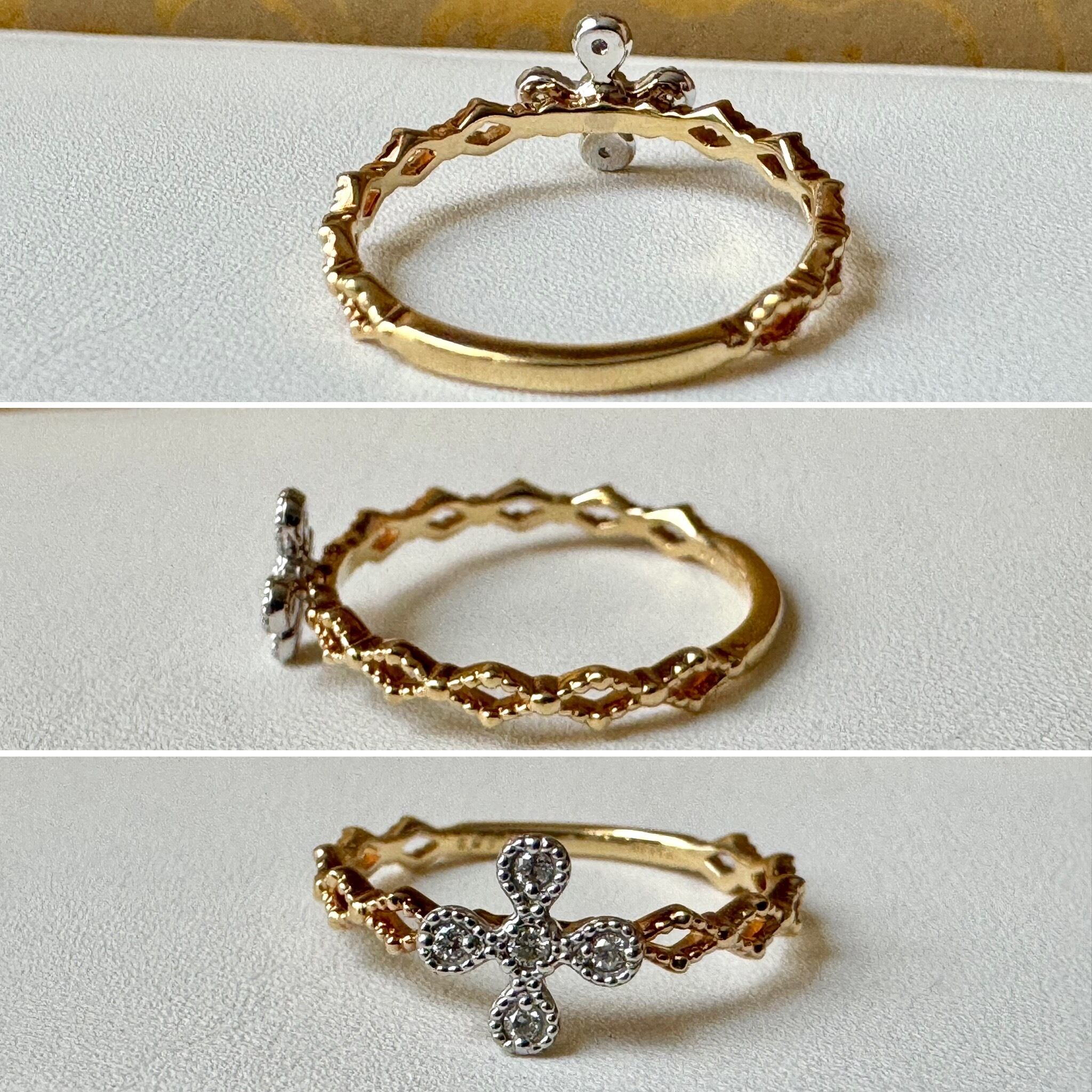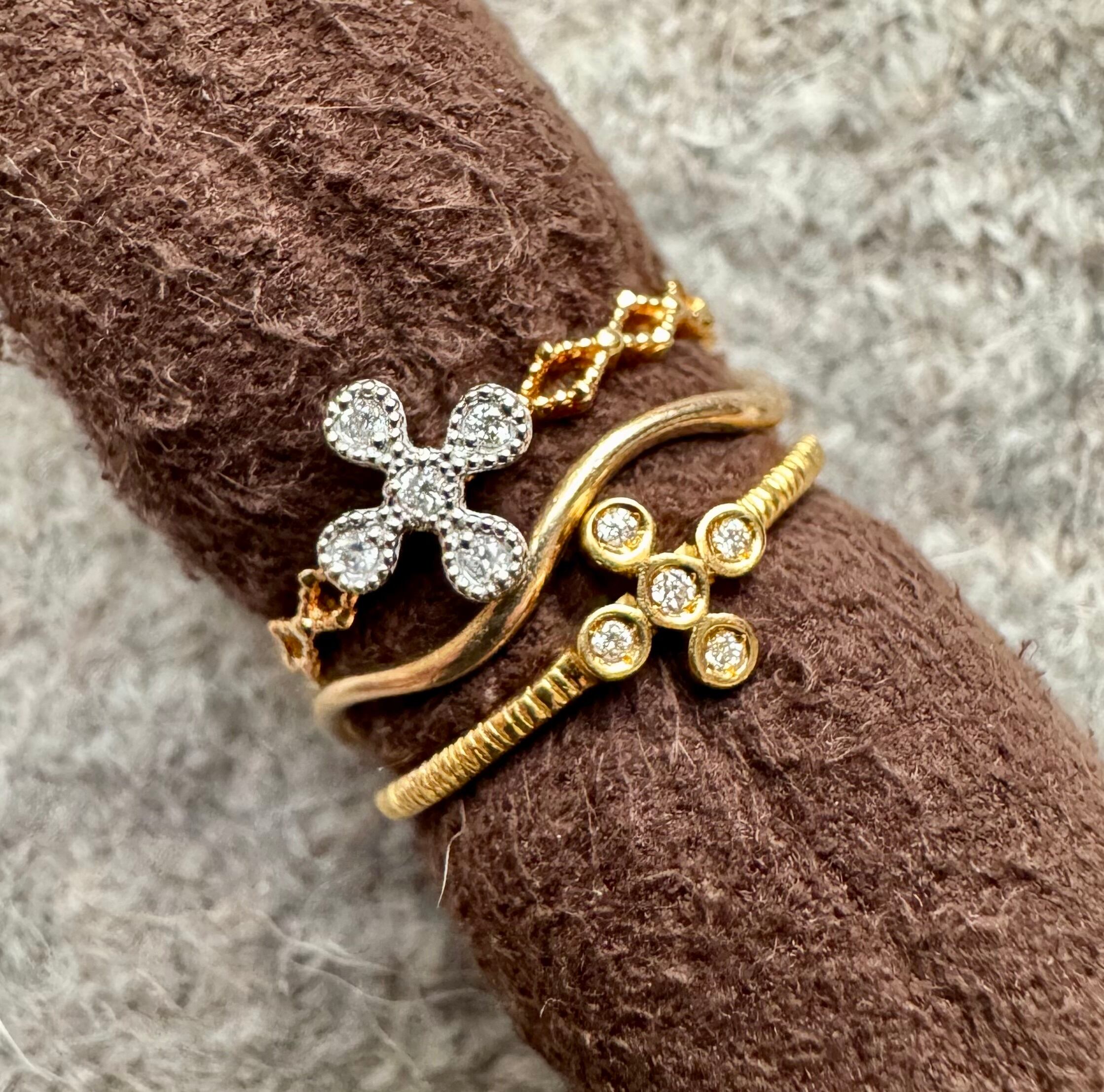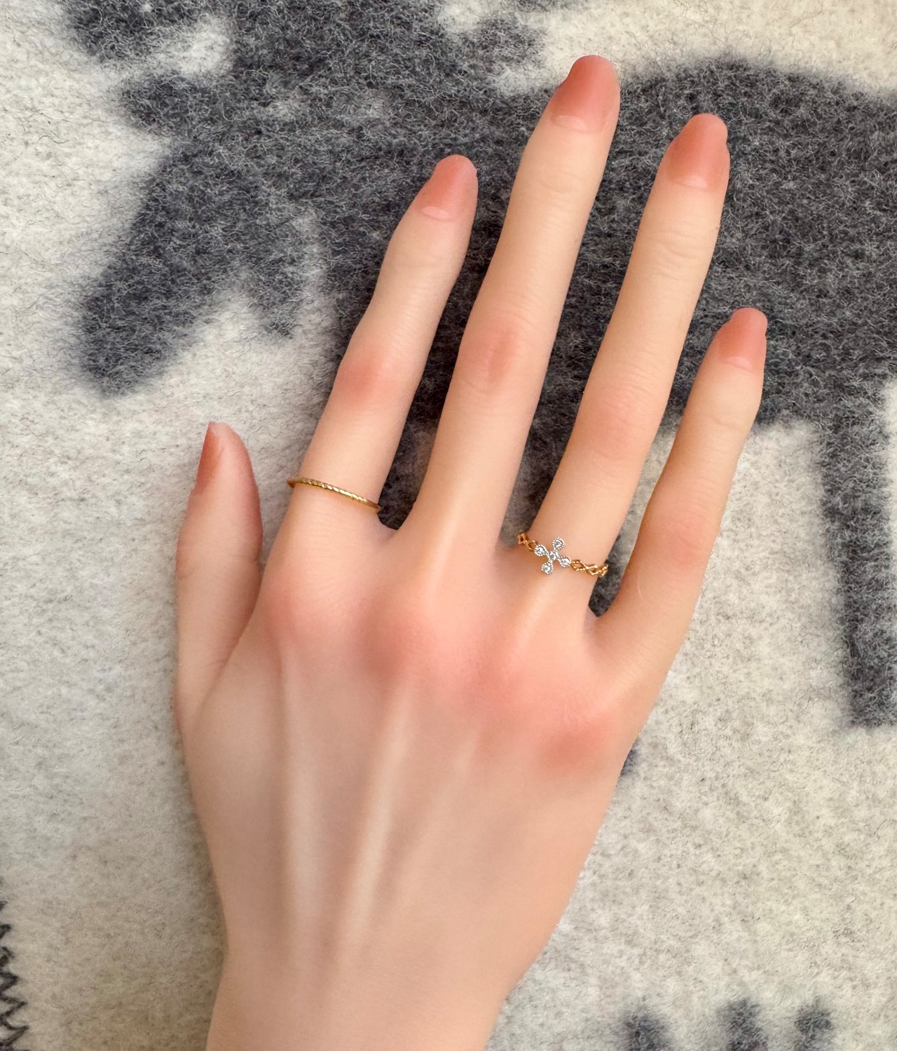 トップはK14WG、アームはK14YGのコンビリング。凹凸ありの重ね付けも楽しめそうなデザインです◡̈*