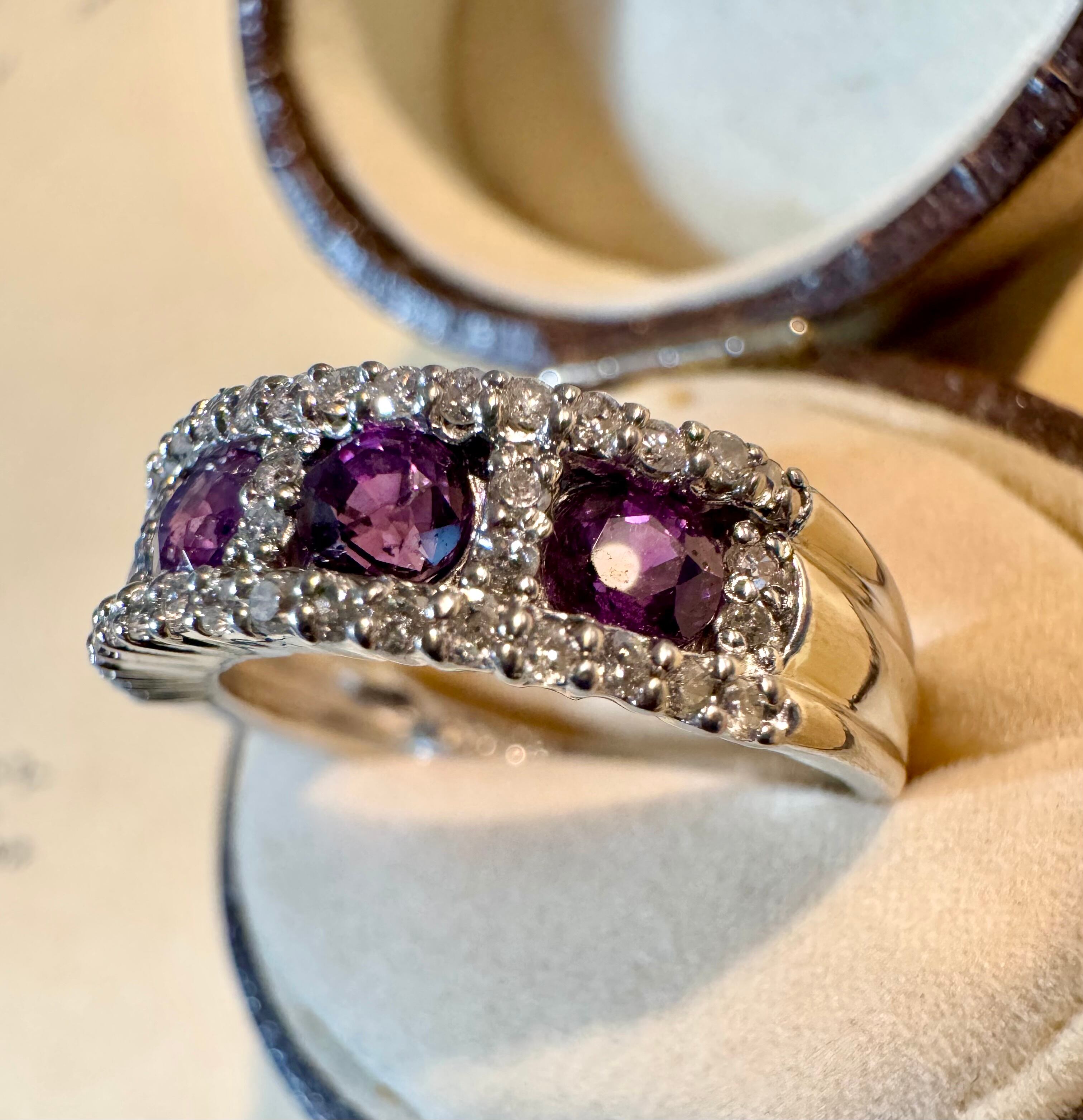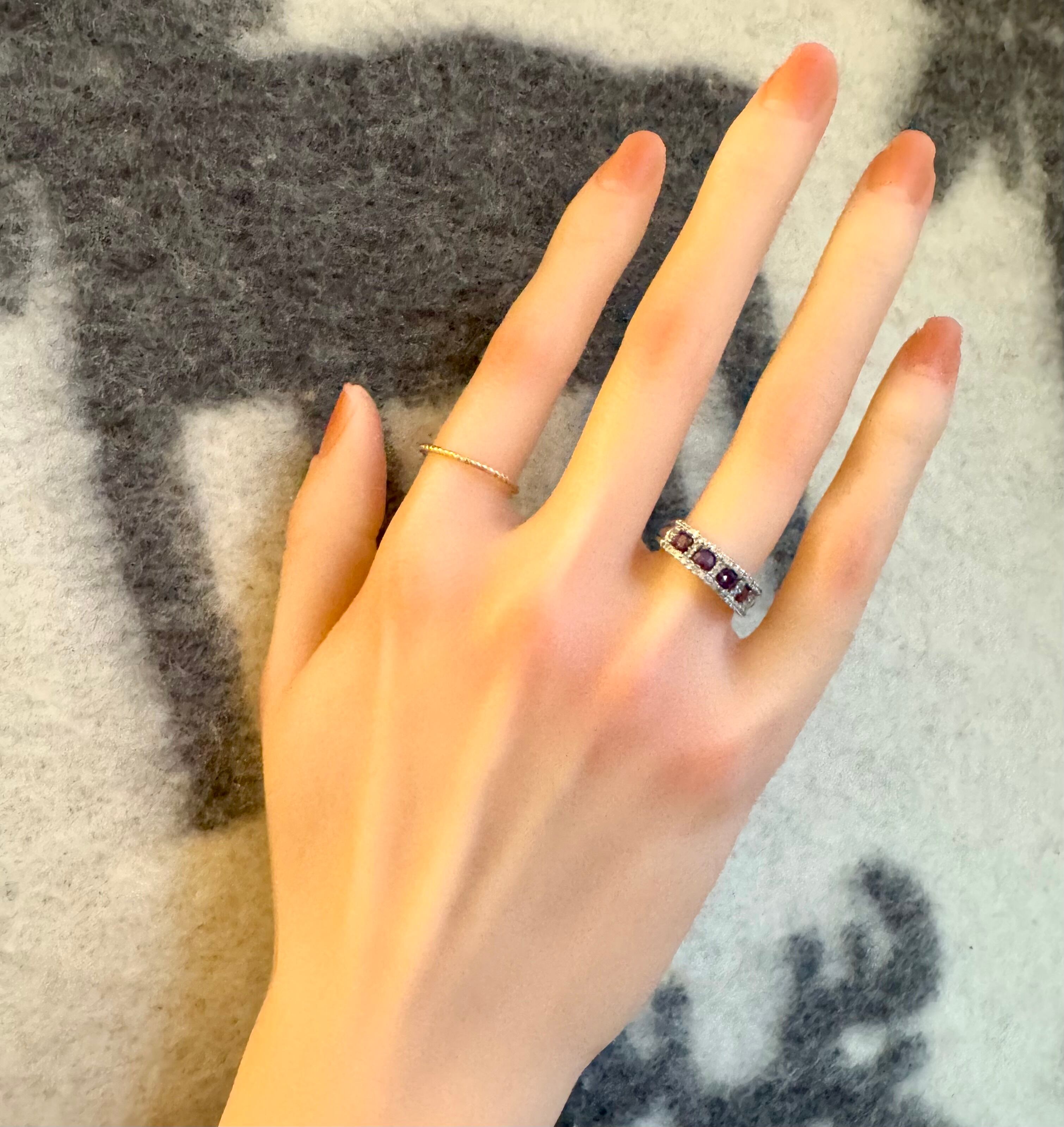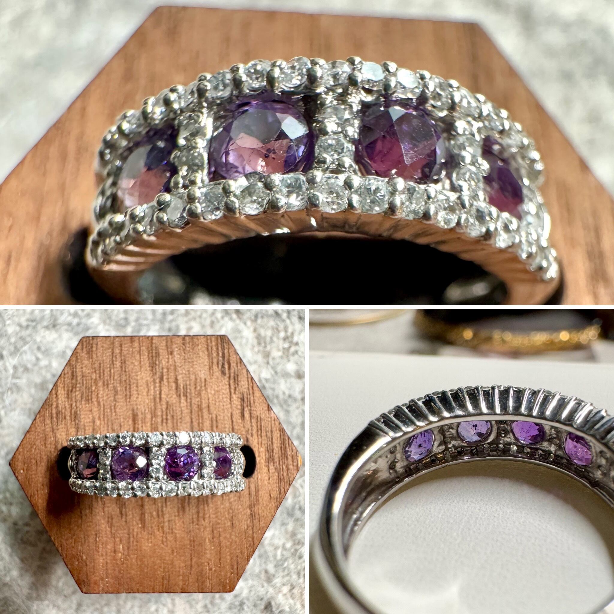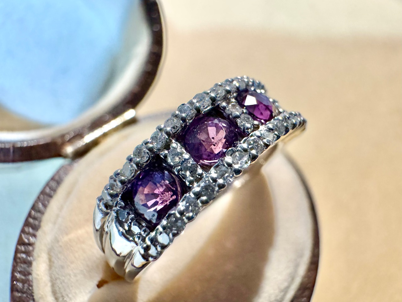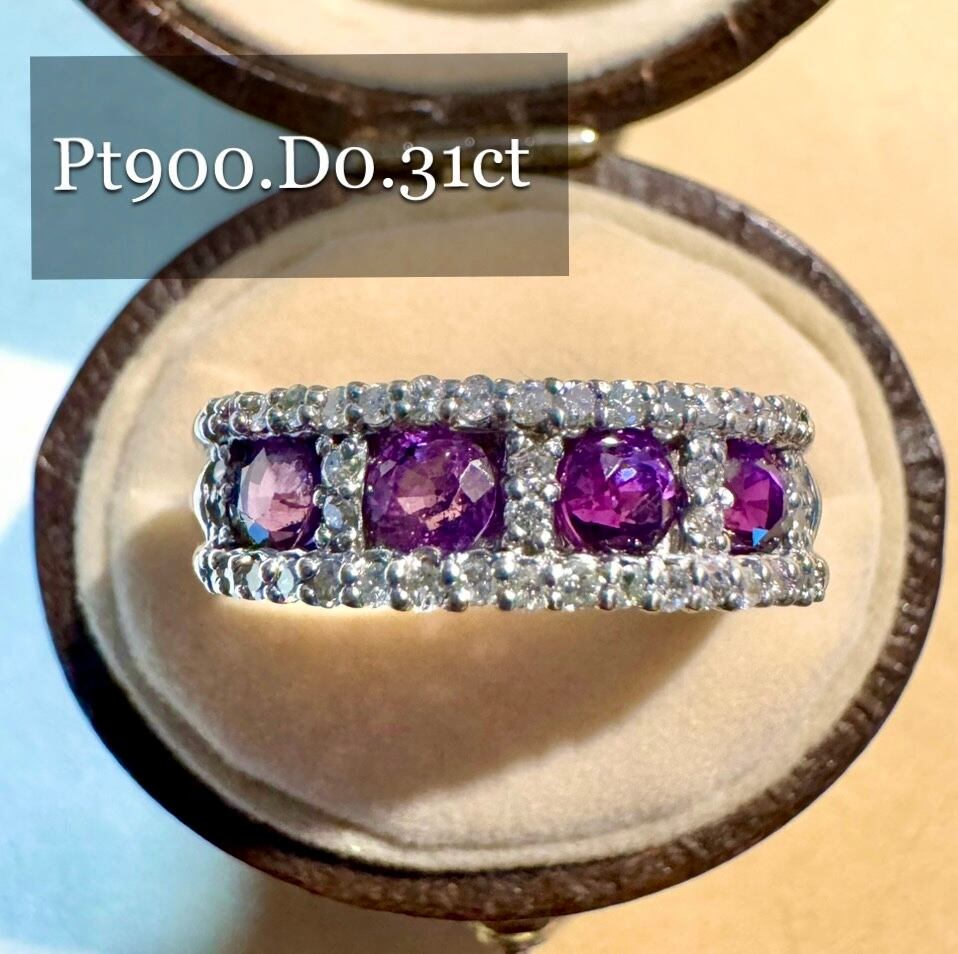 エレガントなPt900製のリング、紫色の石とダイヤモンドがとても煌びやかなプラチナリングです✦