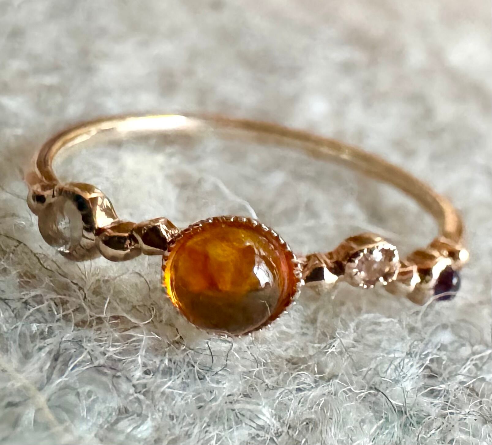 agete◆K10YG*11号*アンバーリング*琥珀*ムーンストーン*アガット
