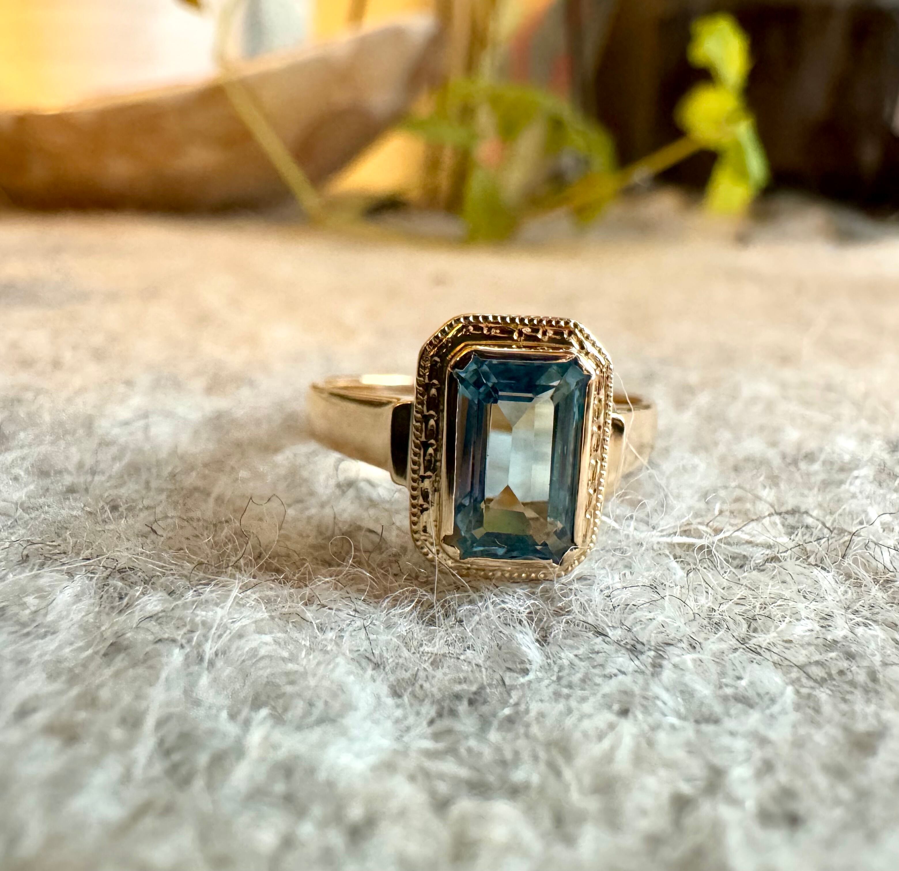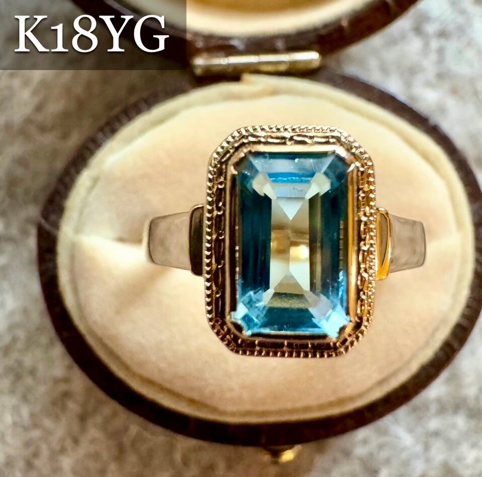K18YG*アンティーク調*色石エメラルドカットリング*指輪